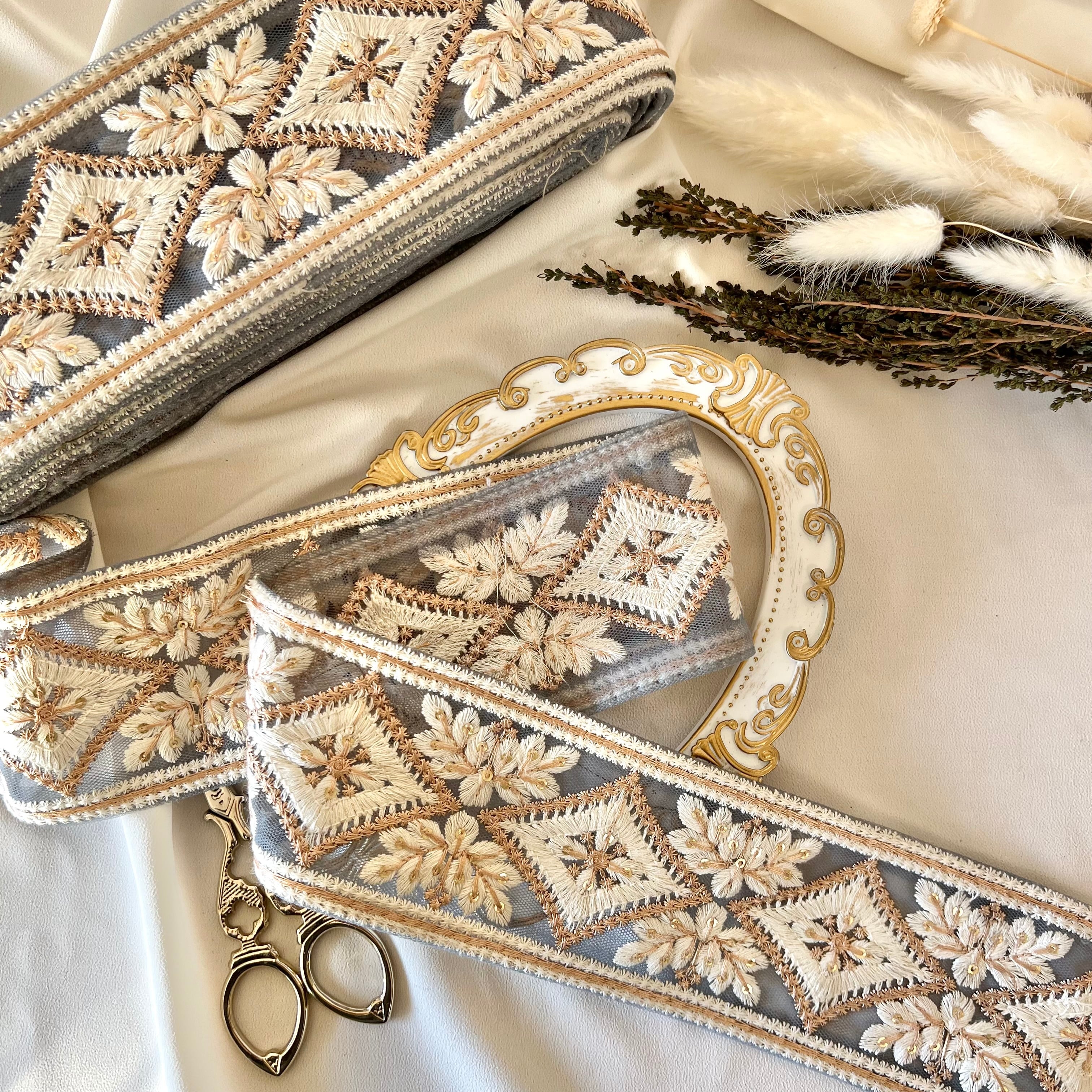 30cm インド刺繍リボン チュール ひし形柄 #sr5