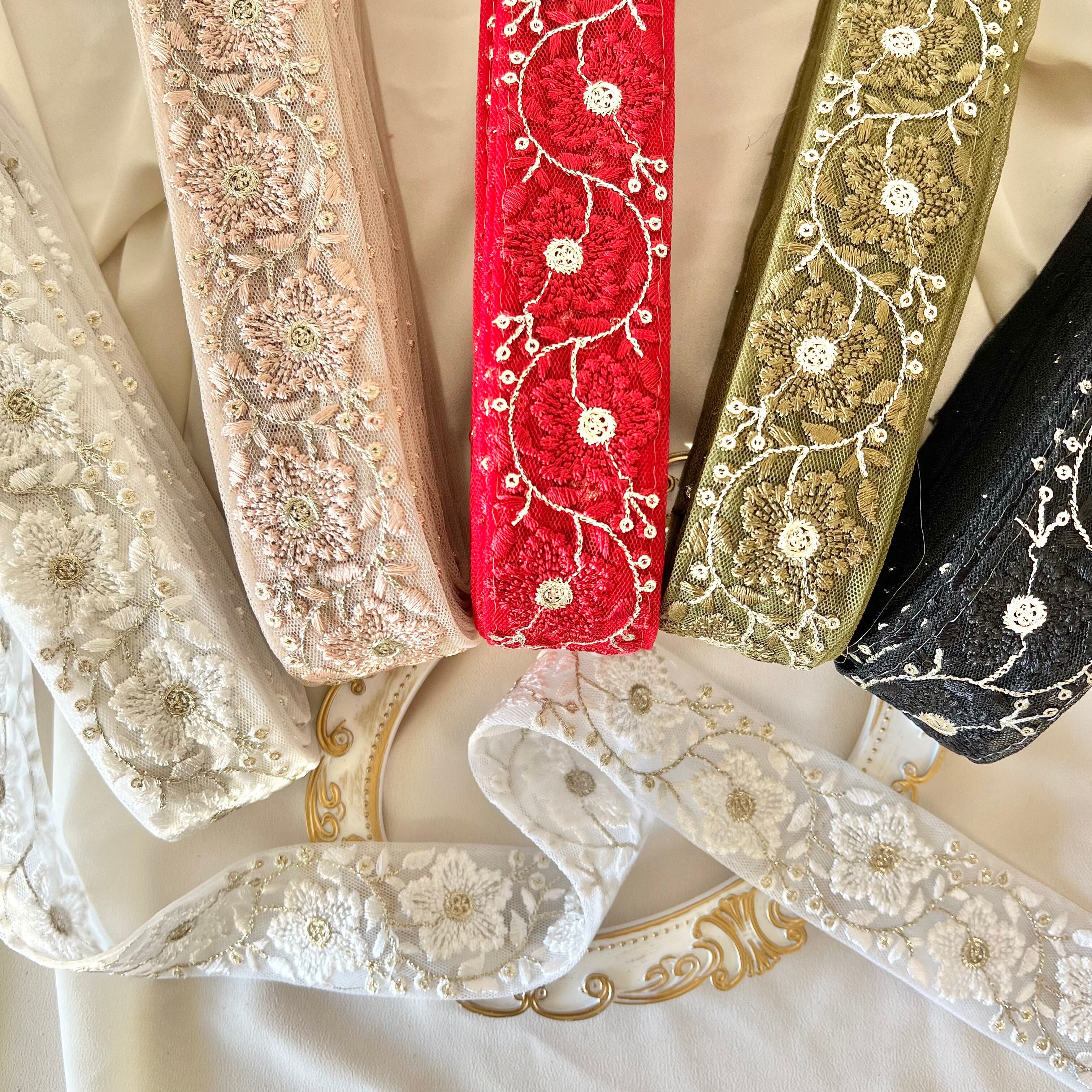 50cm インド刺繍リボン チュール 花柄 #n2t14