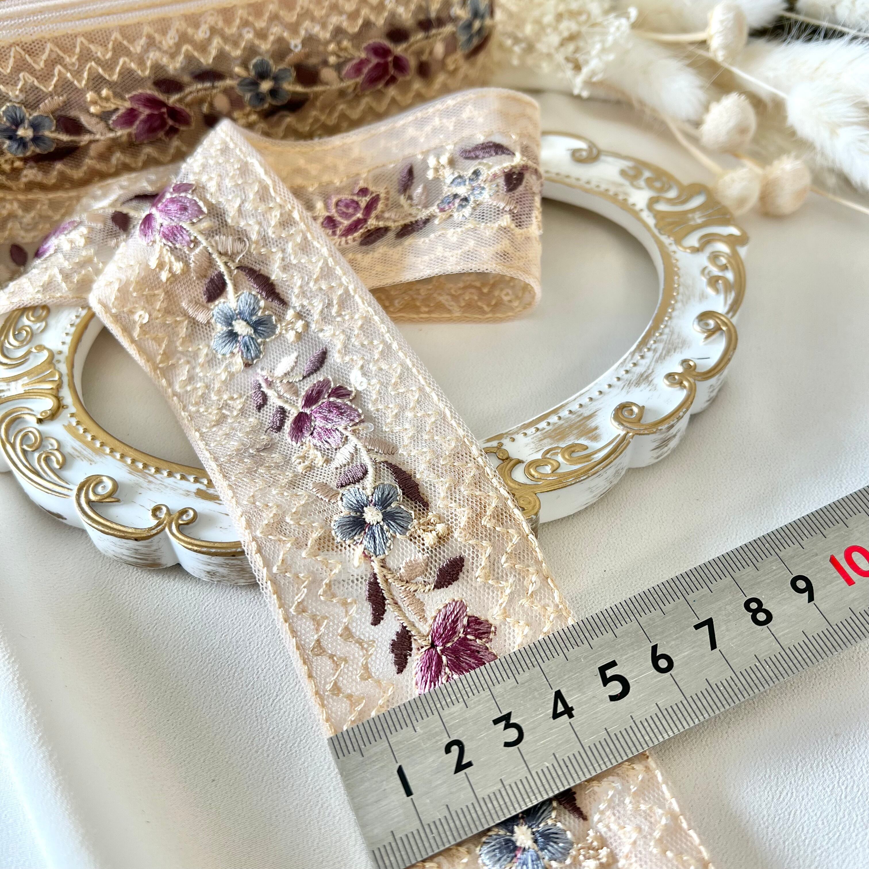 50cm インド刺繍リボン チュール 花柄 #ct3