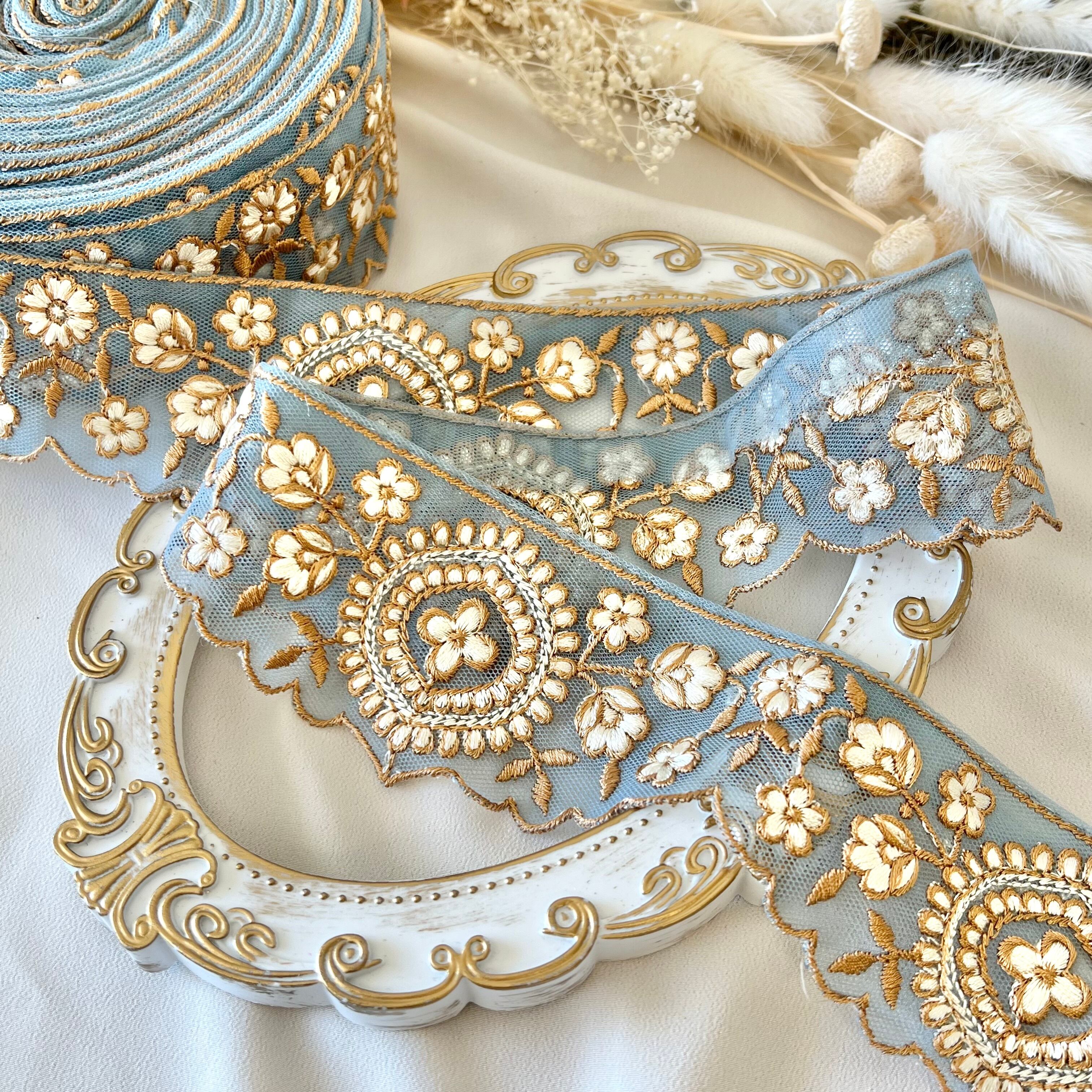 50cm インド刺繍リボン チュール 花柄 #sm8