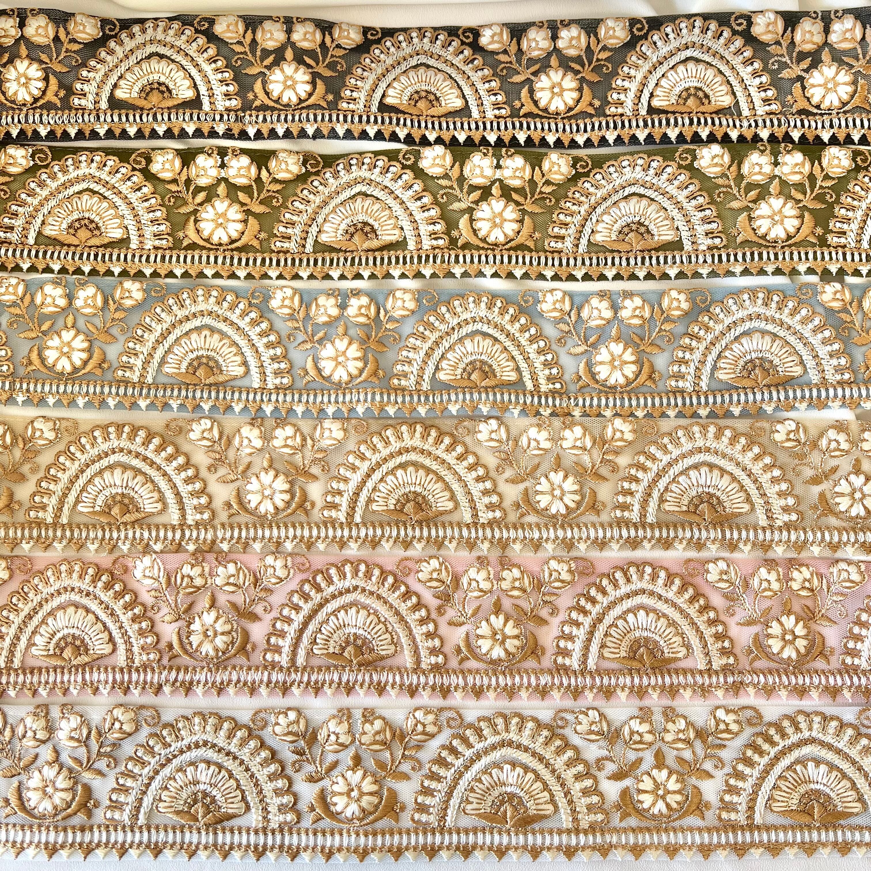 30cm インド刺繍リボン チュール 花柄 #sr34