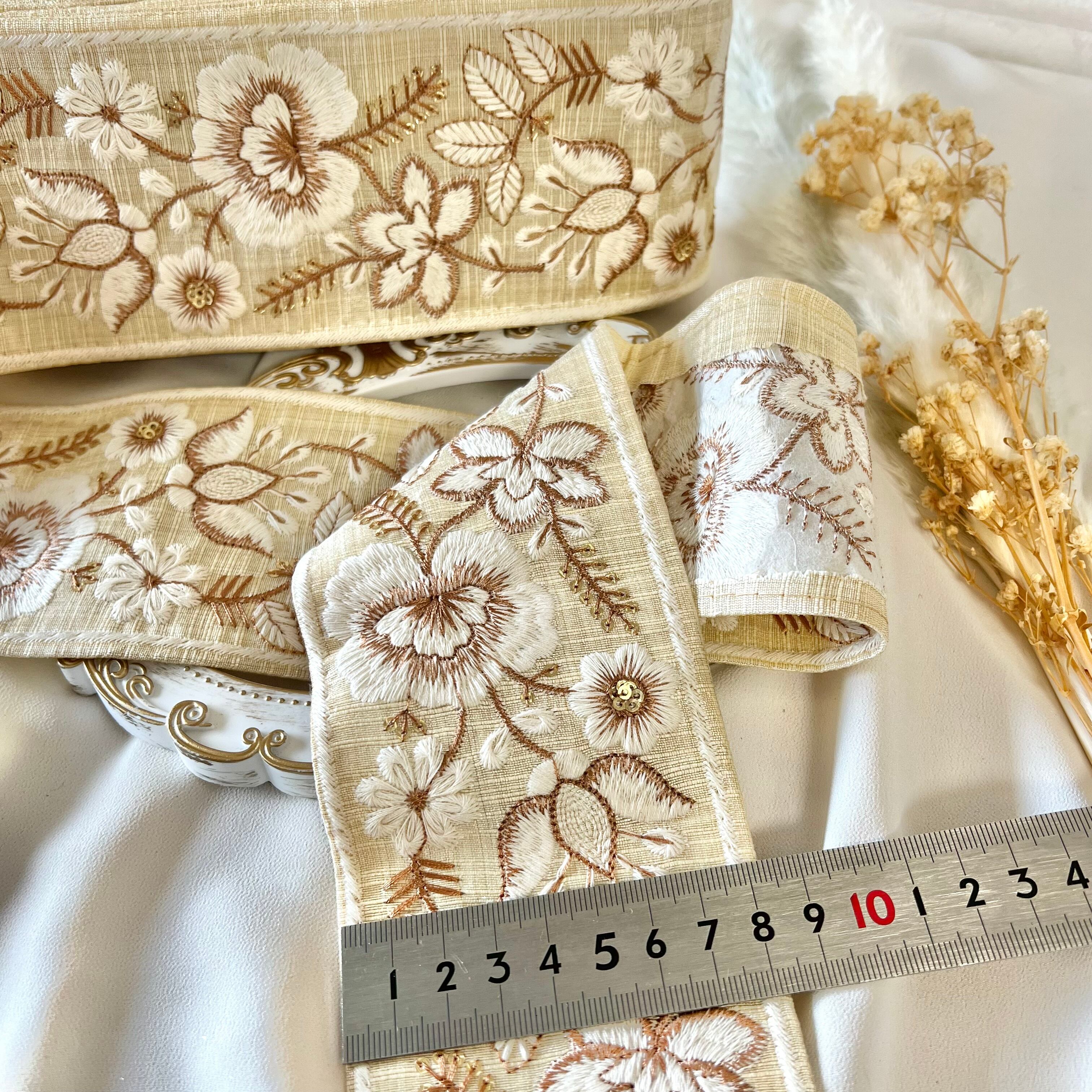 50cm インド刺繍リボン シルク 花柄 #ws14