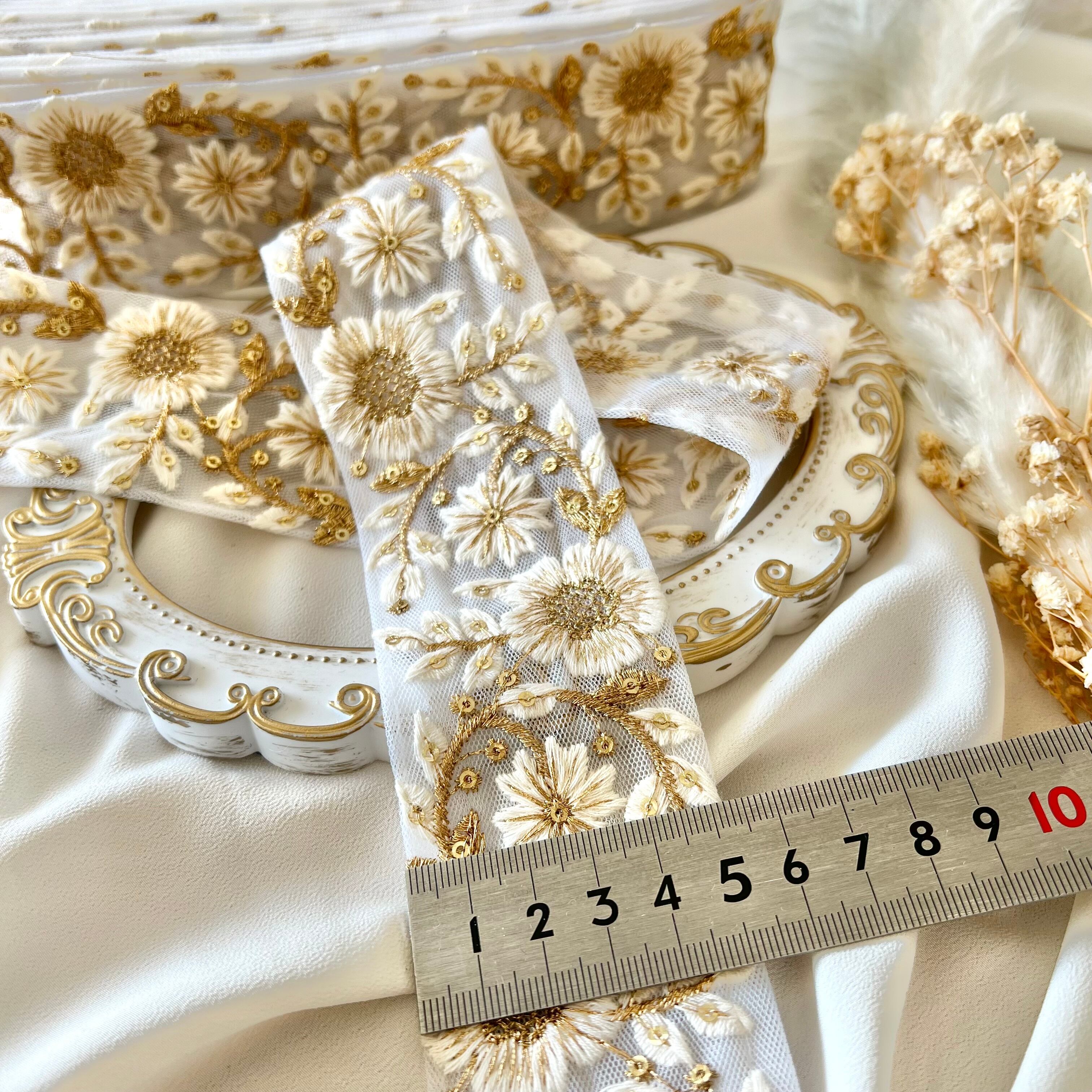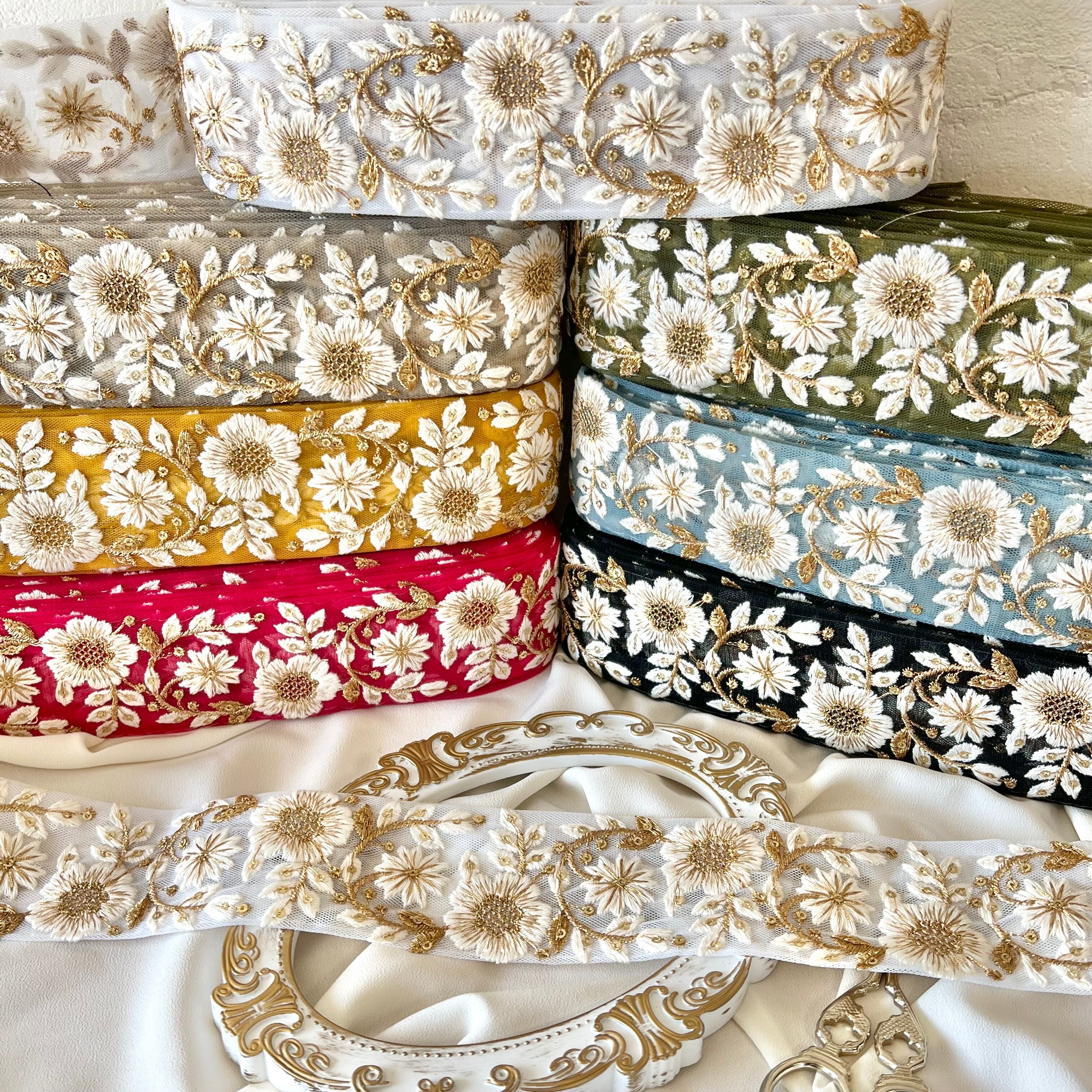 30cm インド刺繍リボン チュール 花柄 #mt24