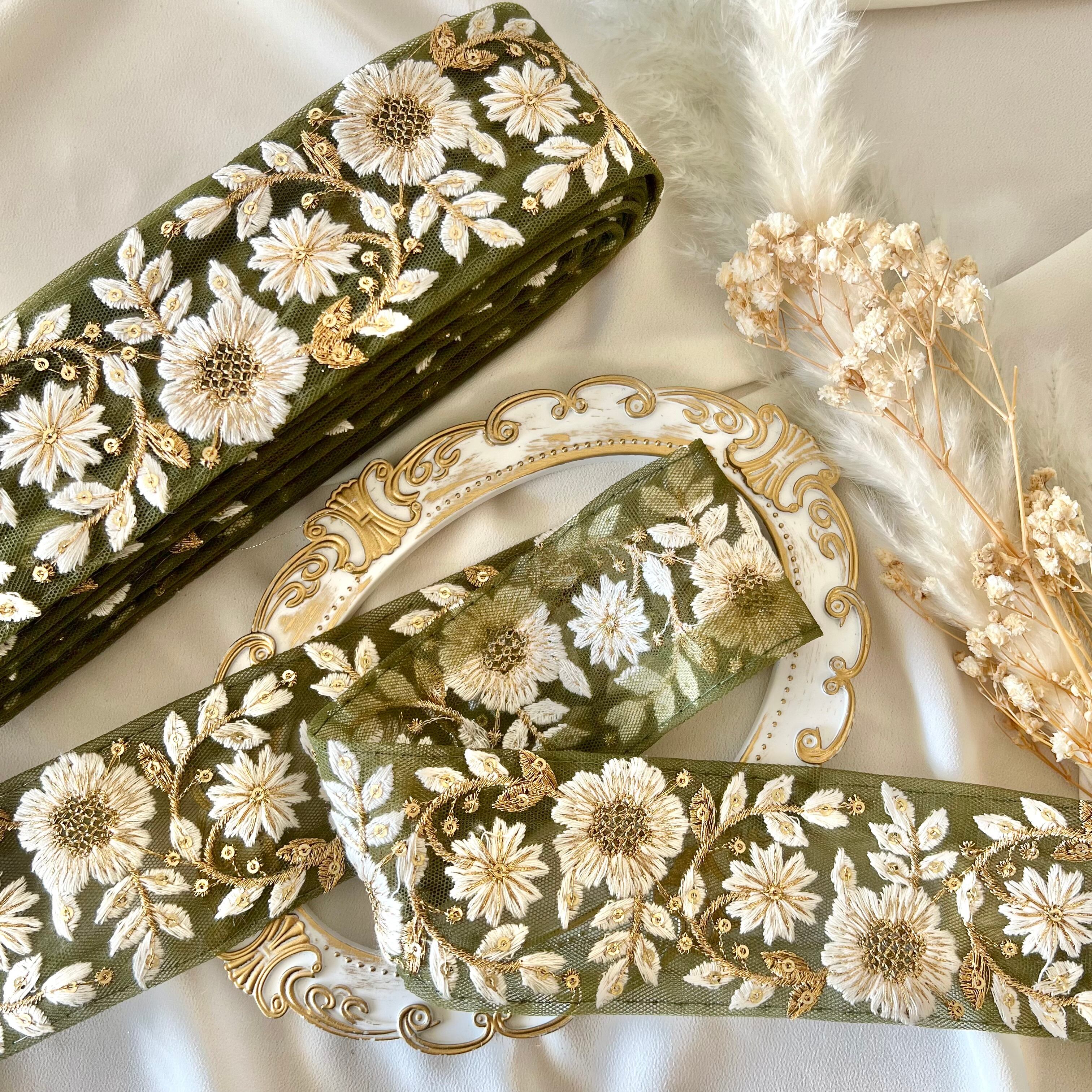 50cm インド刺繍リボン チュール 花柄 #mt24