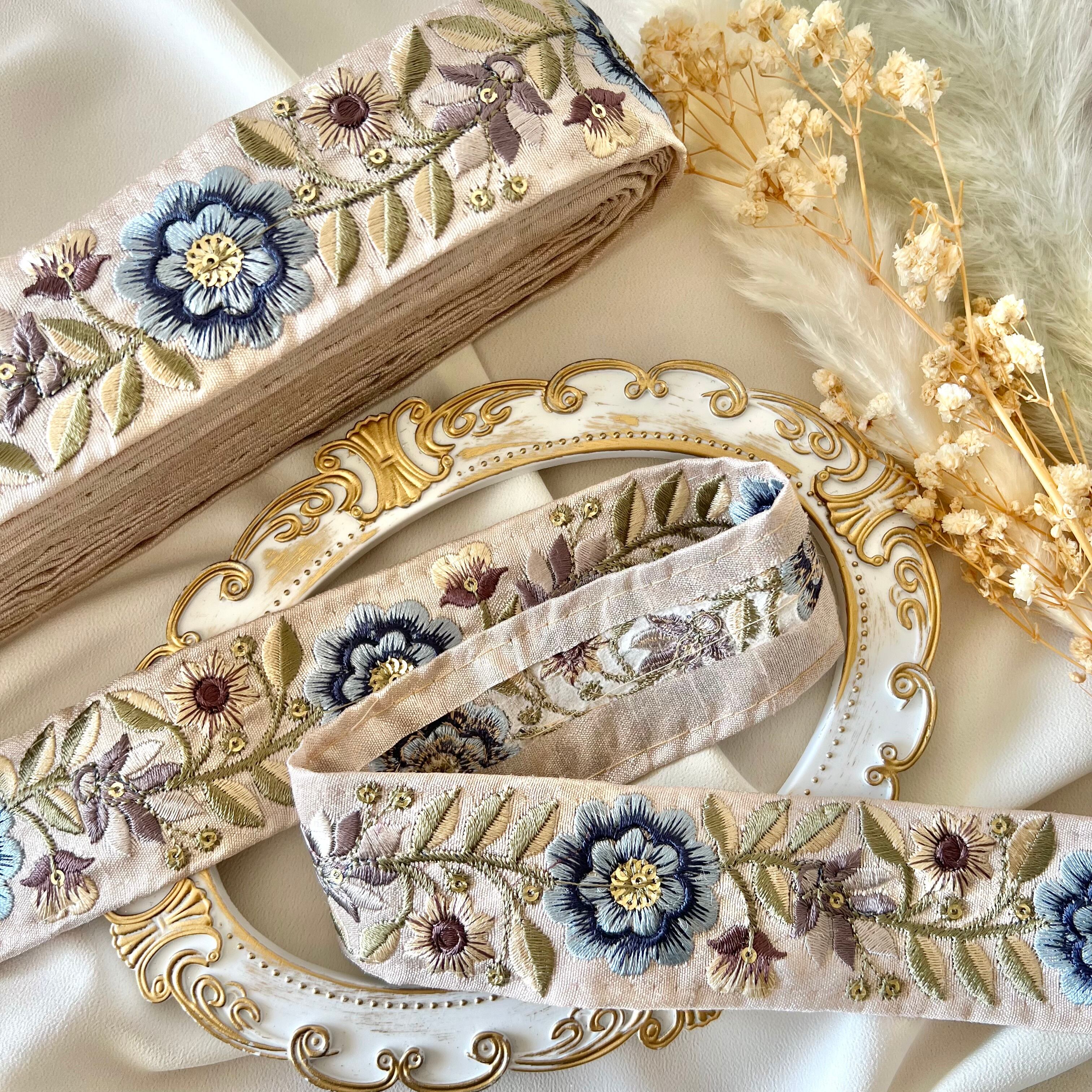 50cm インド刺繍リボン シルク 花柄 #n2s6