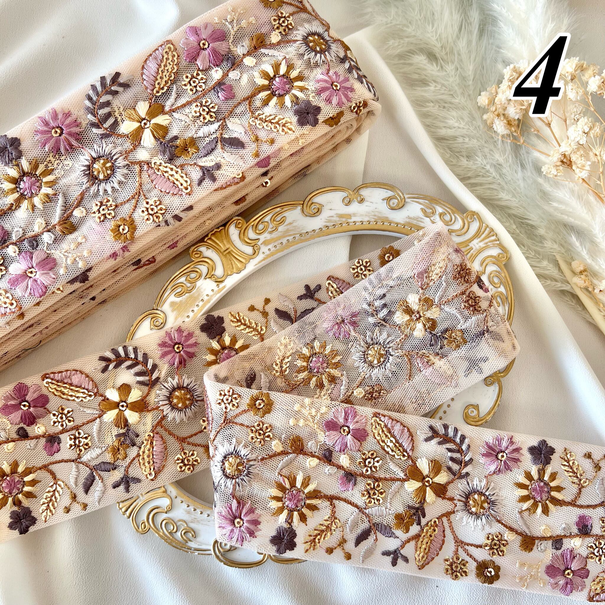 30cm インド刺繍リボン チュール 花柄 #ct6