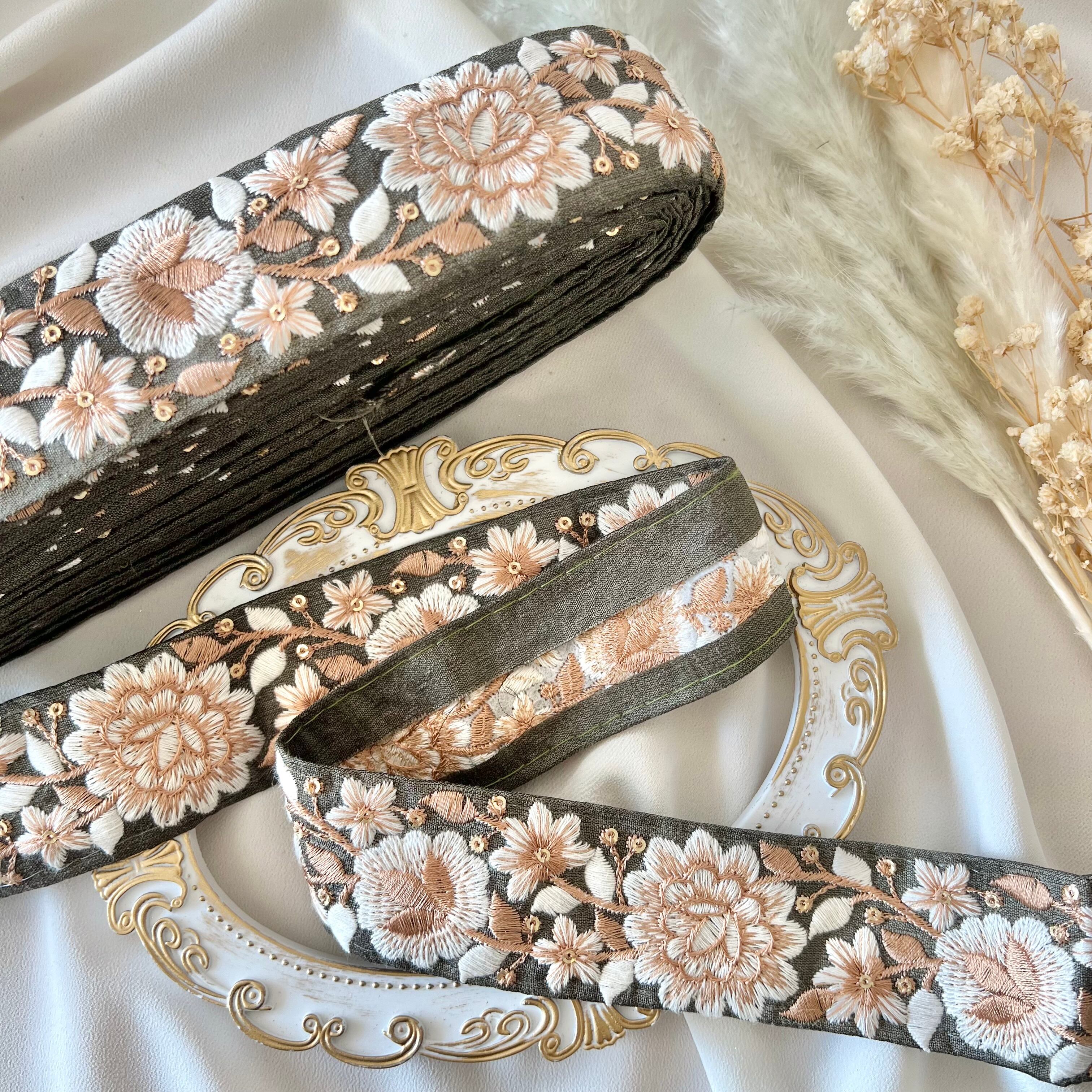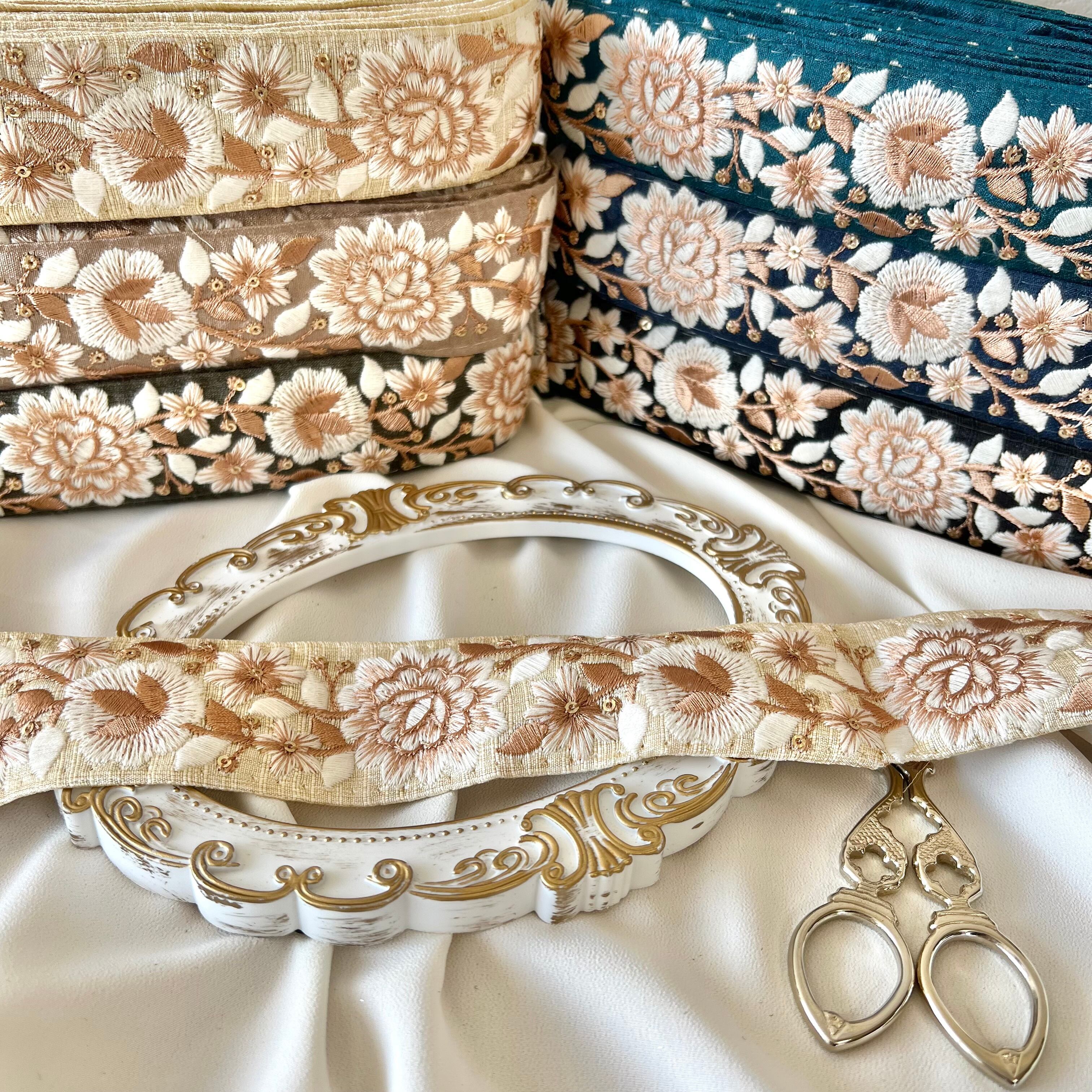 50cm インド刺繍リボン シルク 花柄 #n2s7