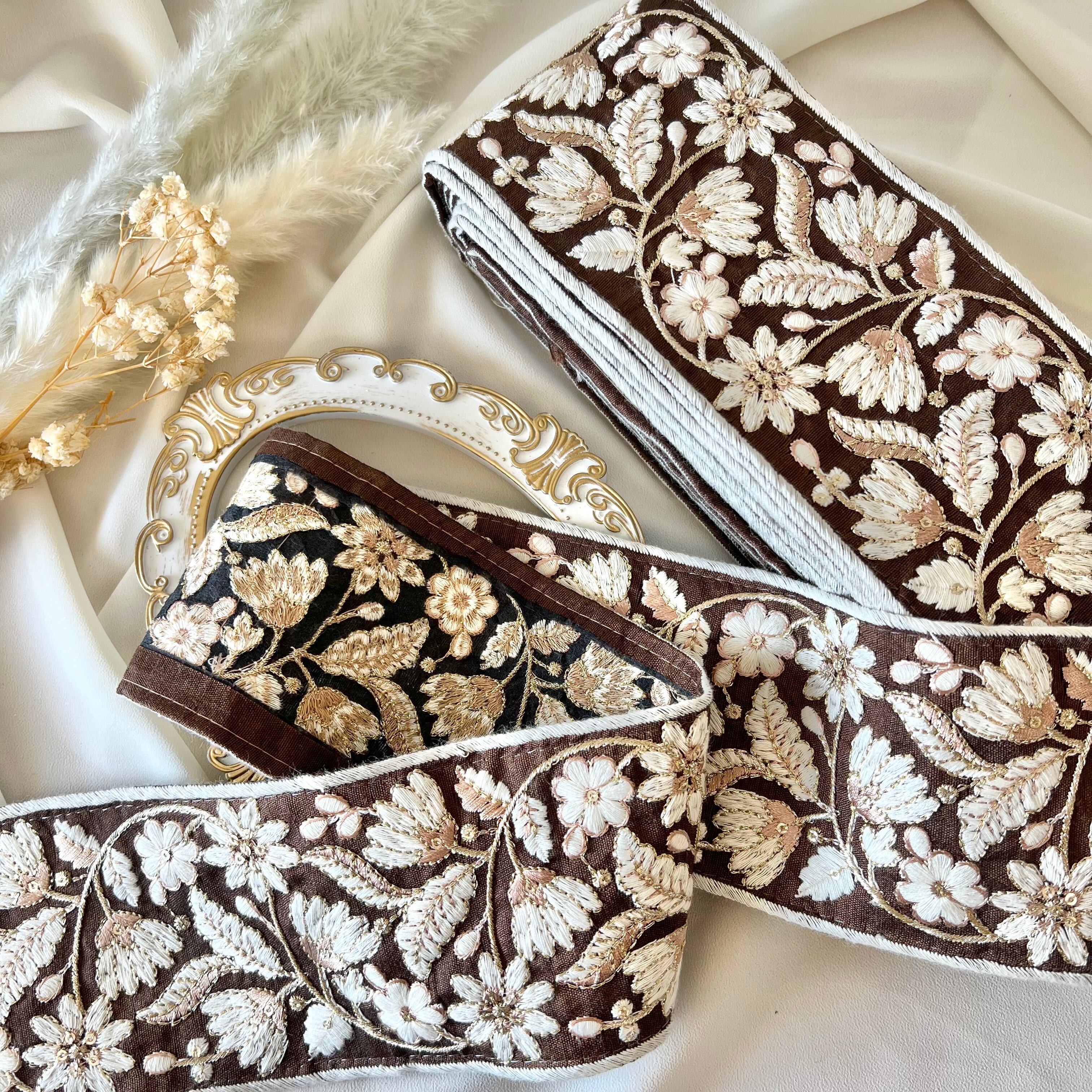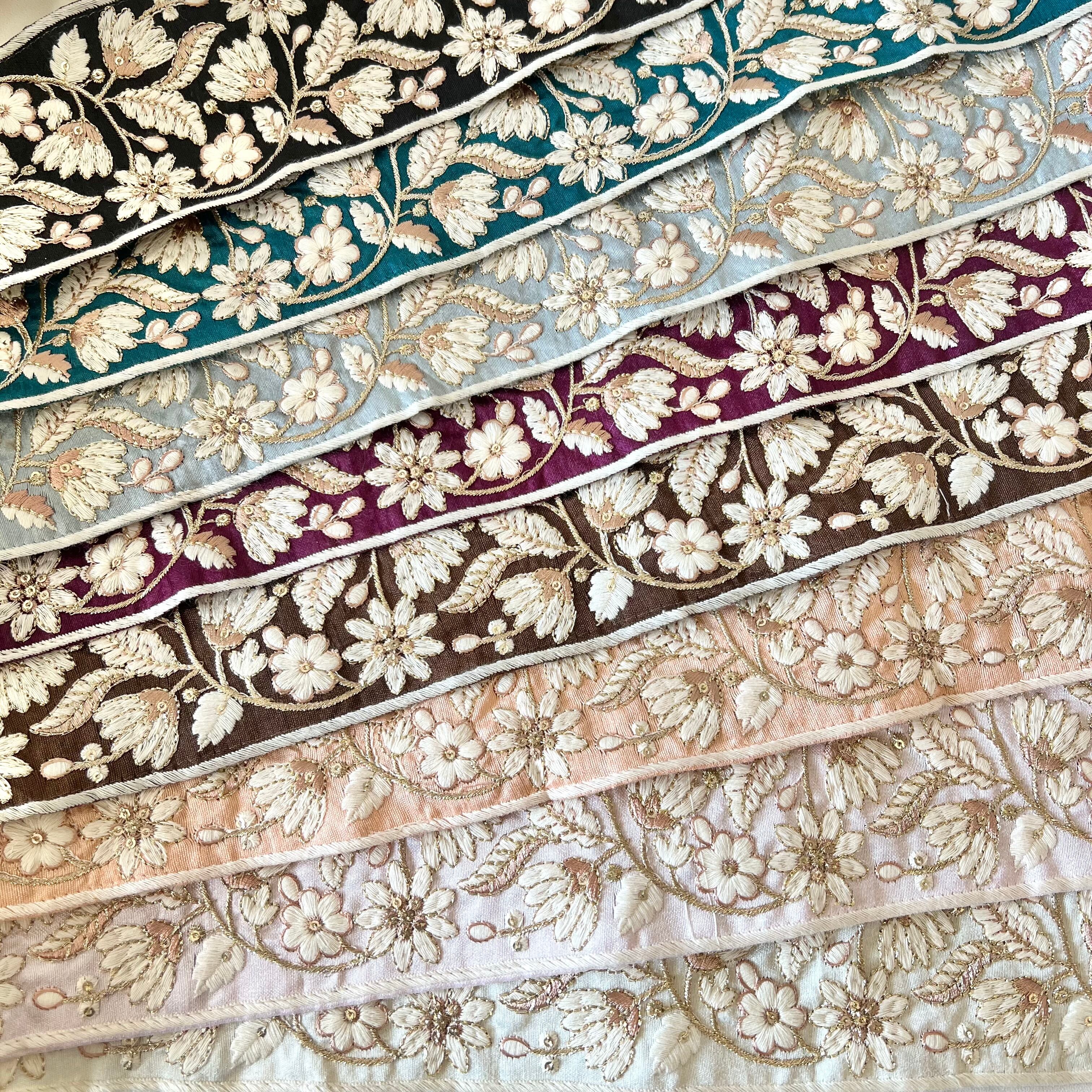 30cm インド刺繍リボン シルク 花柄 #ws15