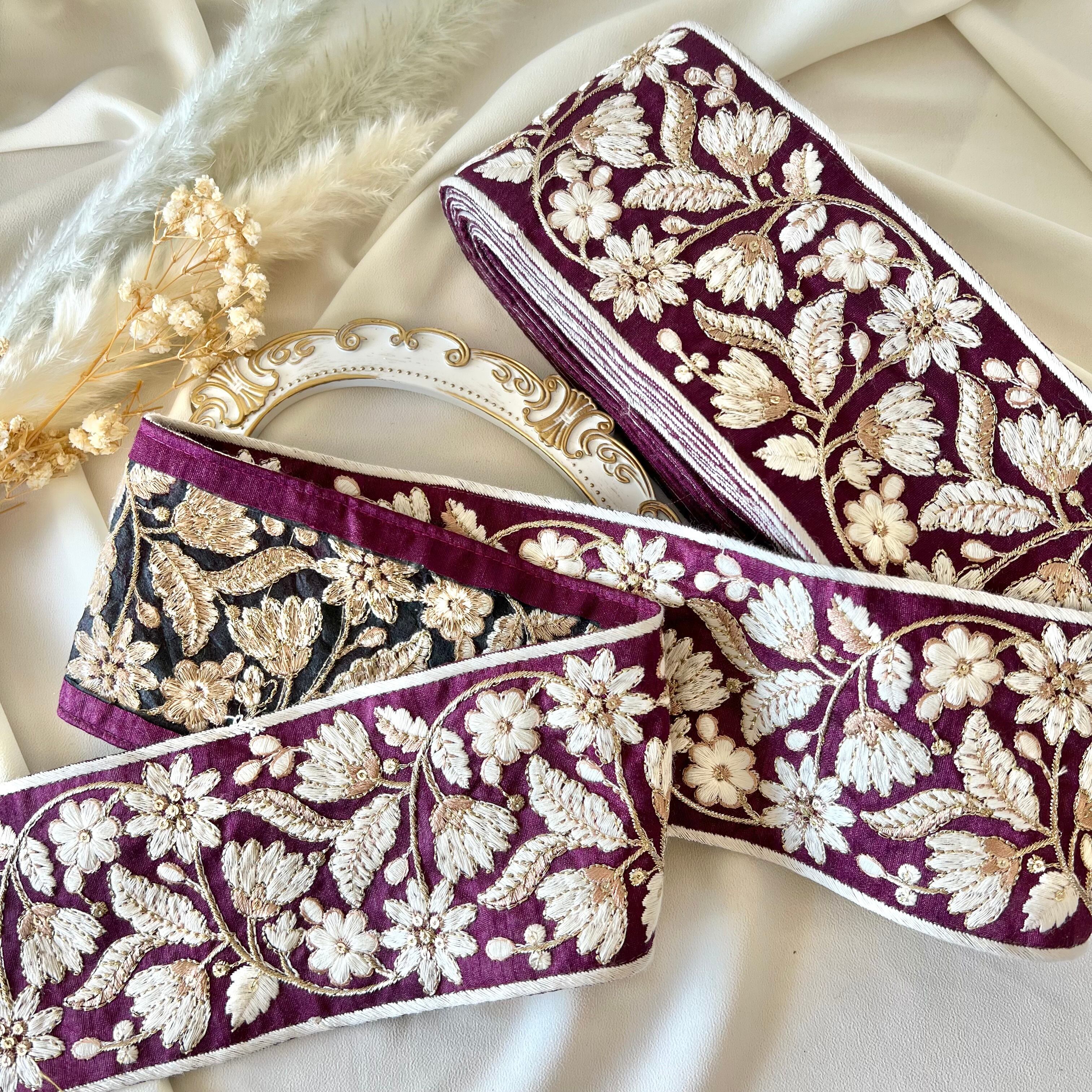 50cm インド刺繍リボン シルク 花柄 #ws15