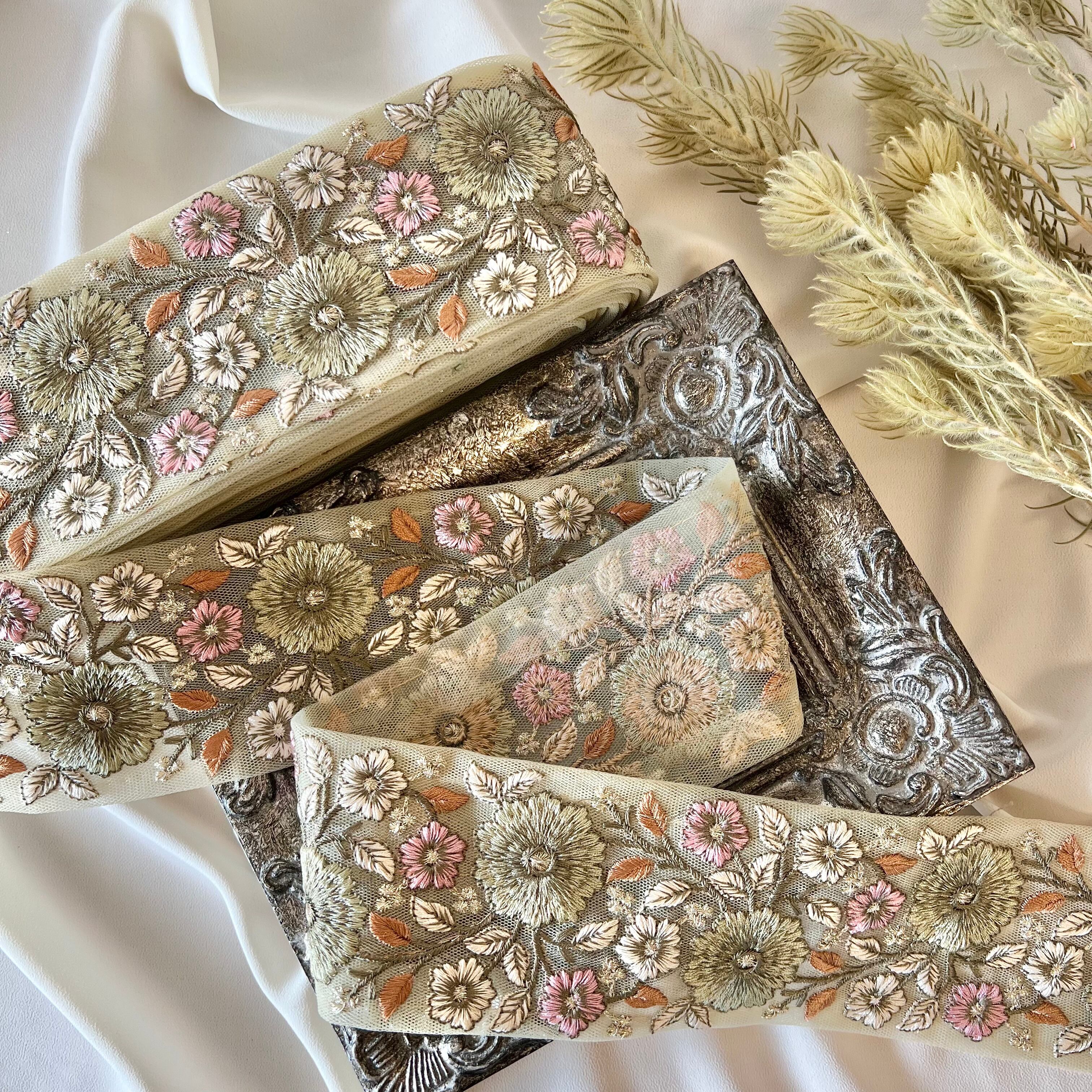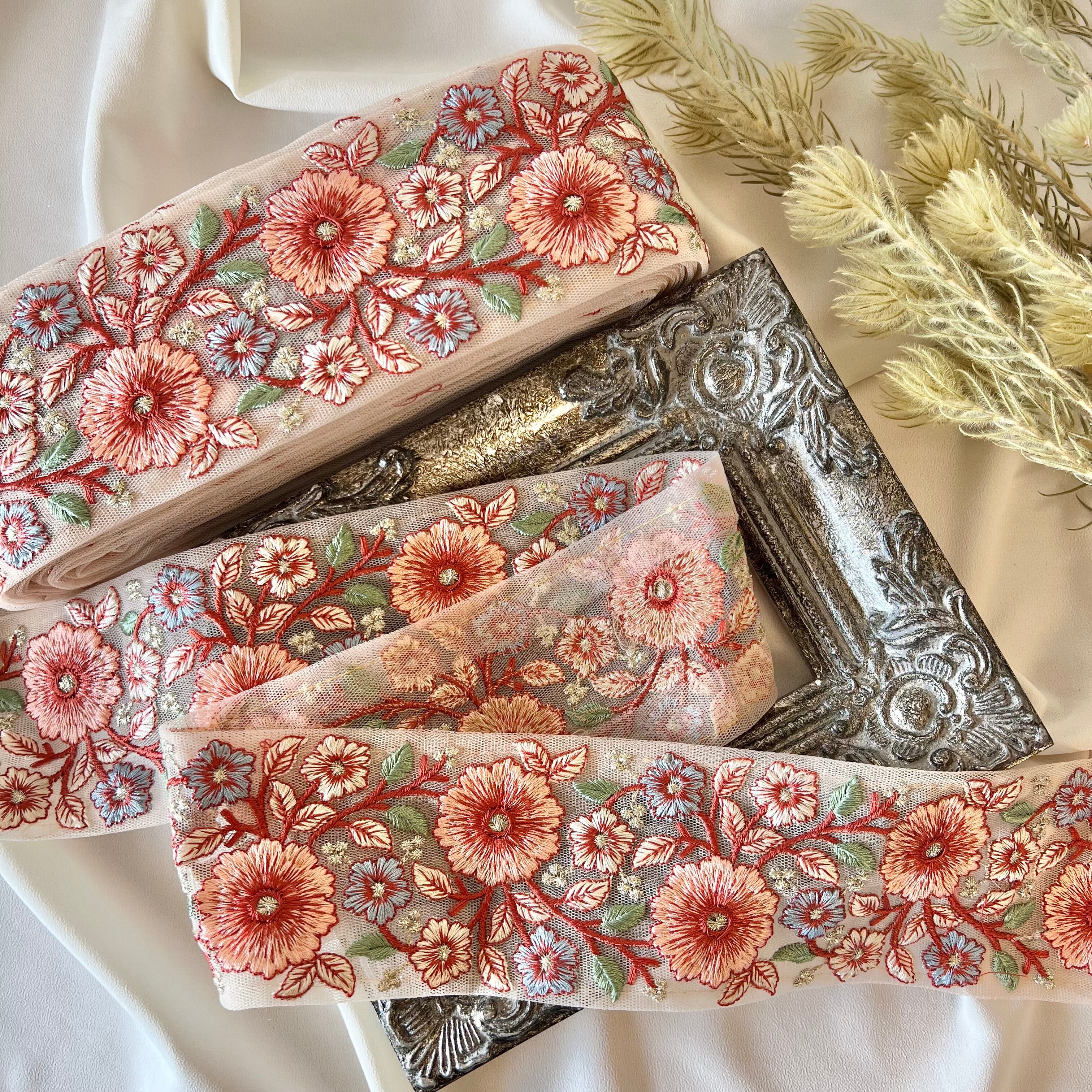 30cm インド刺繍リボン チュール 花柄 #wt15