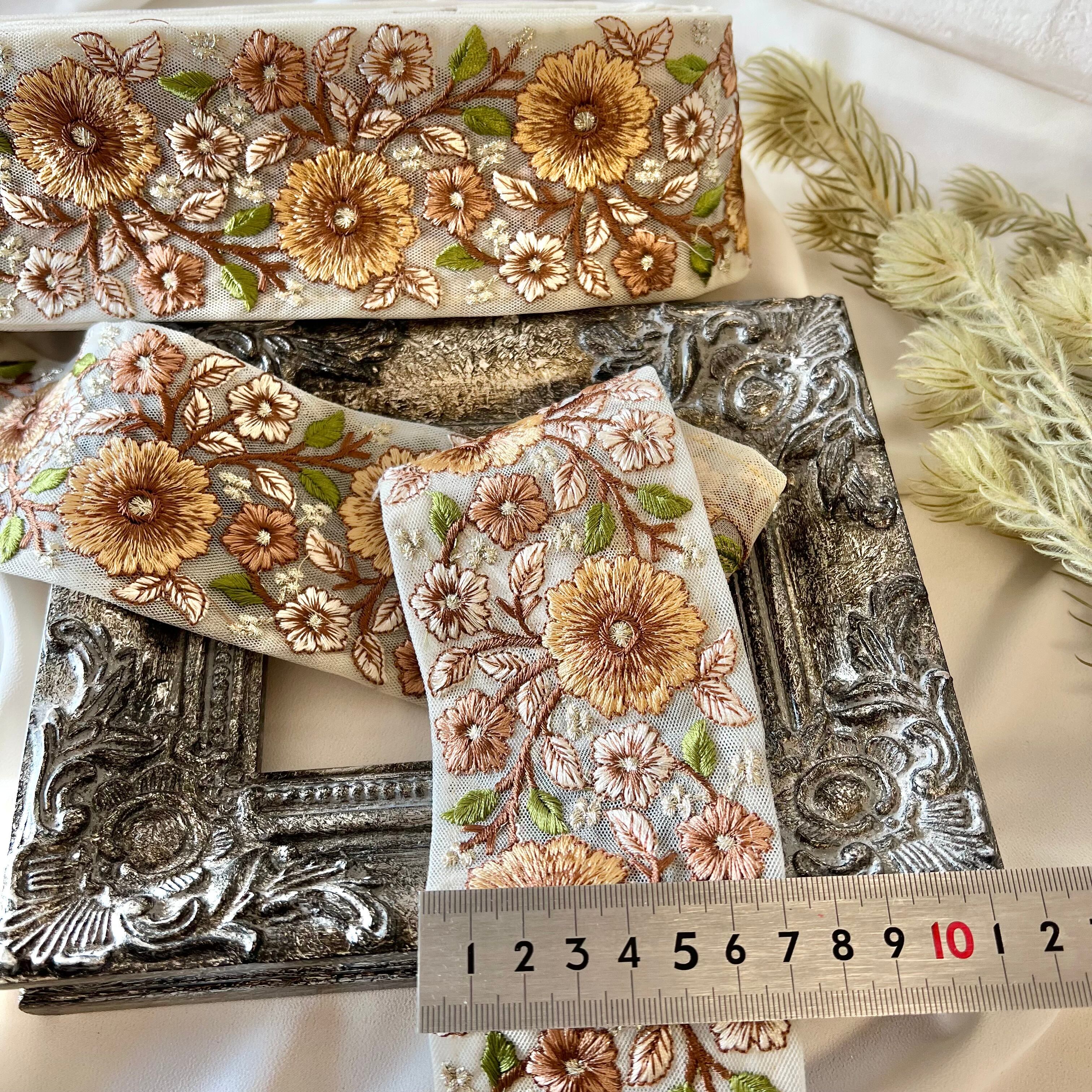50cm インド刺繍リボン チュール 花柄 #wt15