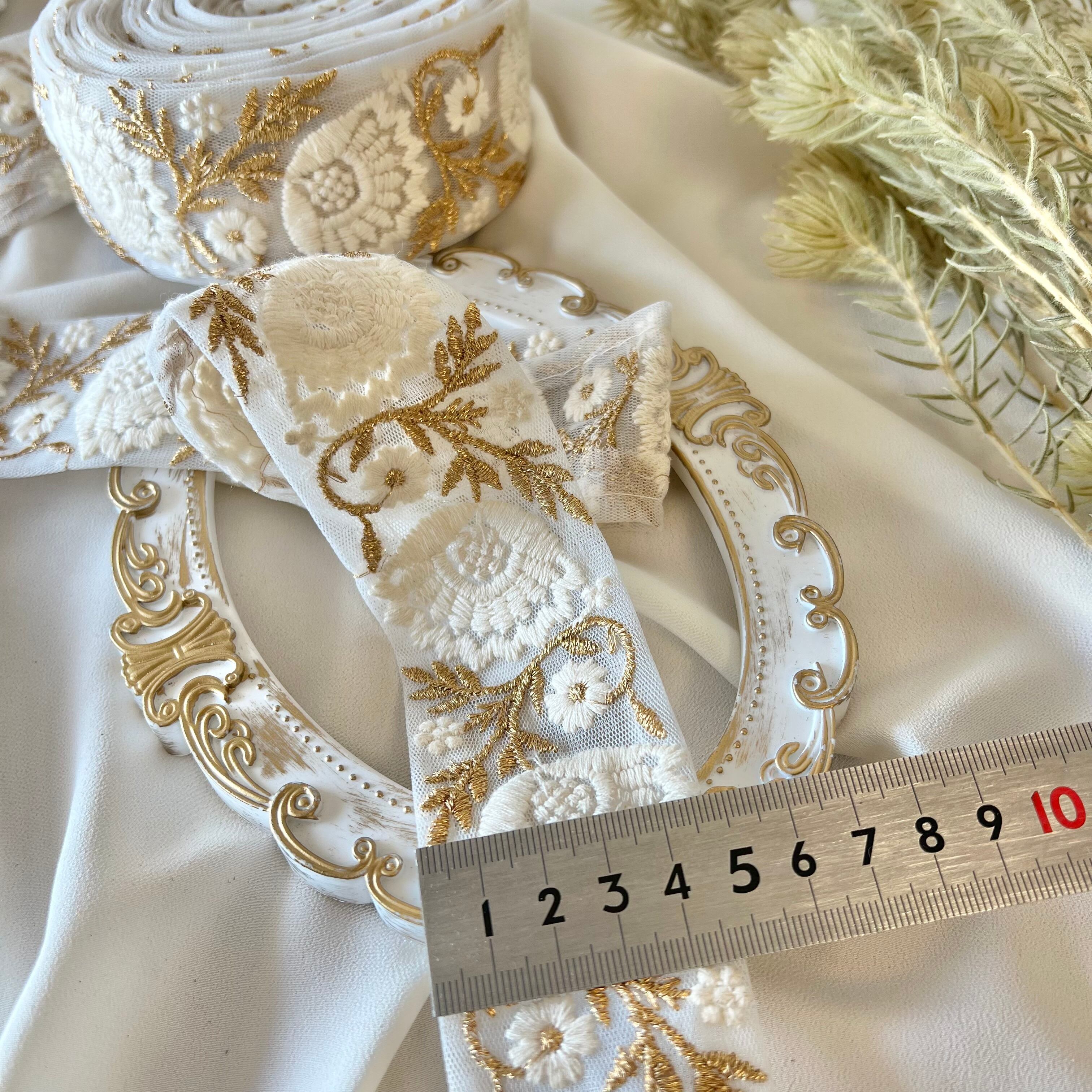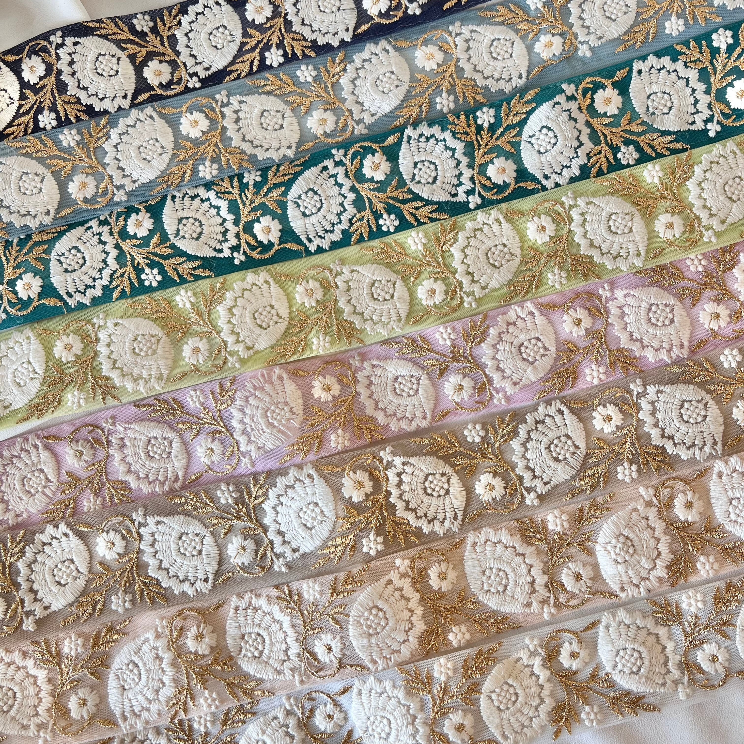 50cm インド刺繍リボン チュール 花柄 #mt29