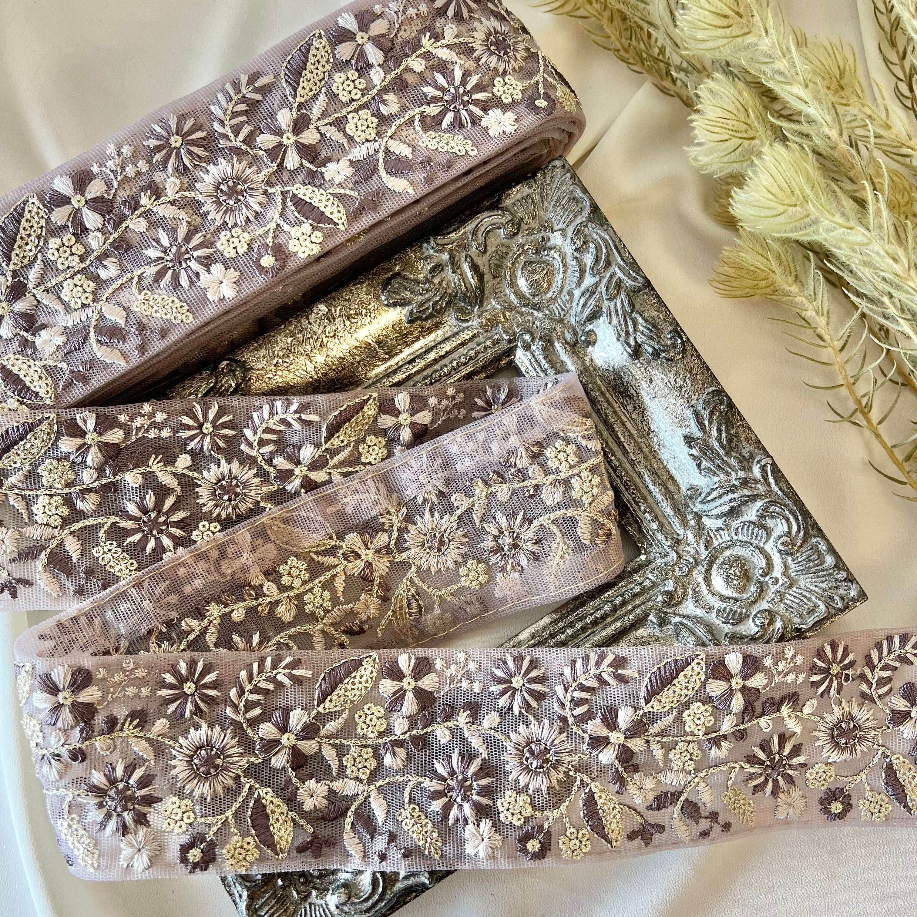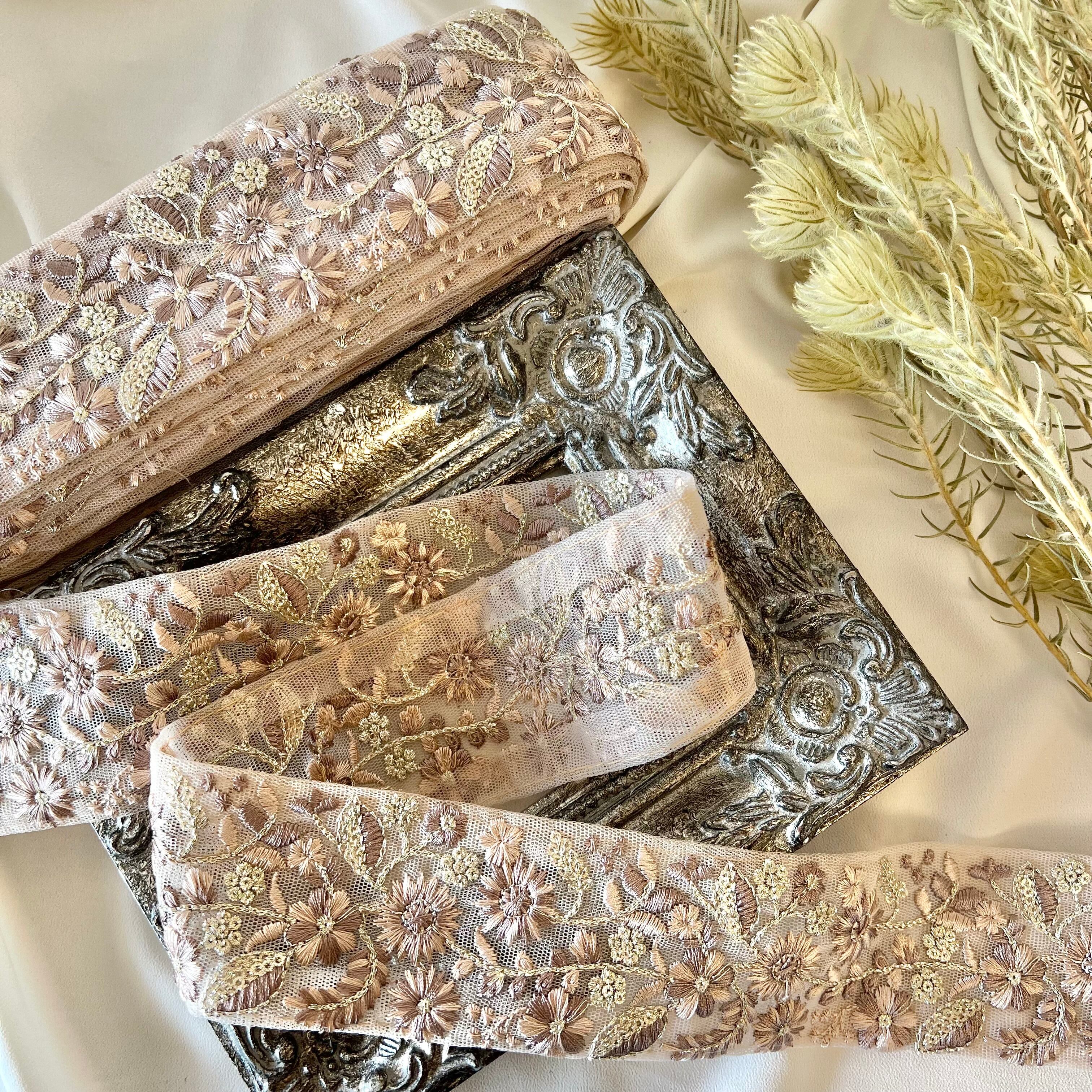 50cm インド刺繍リボン チュール 花柄 #mt35