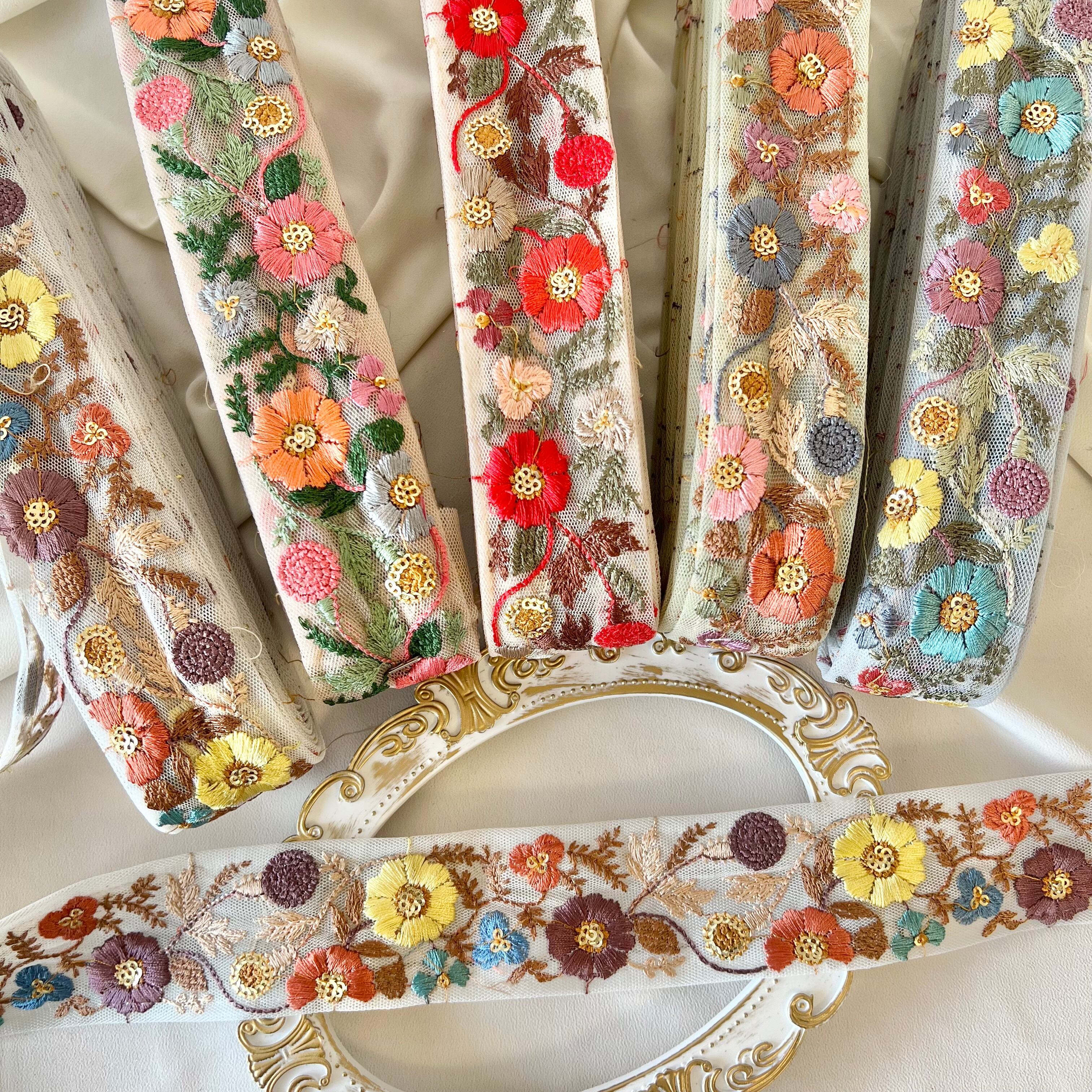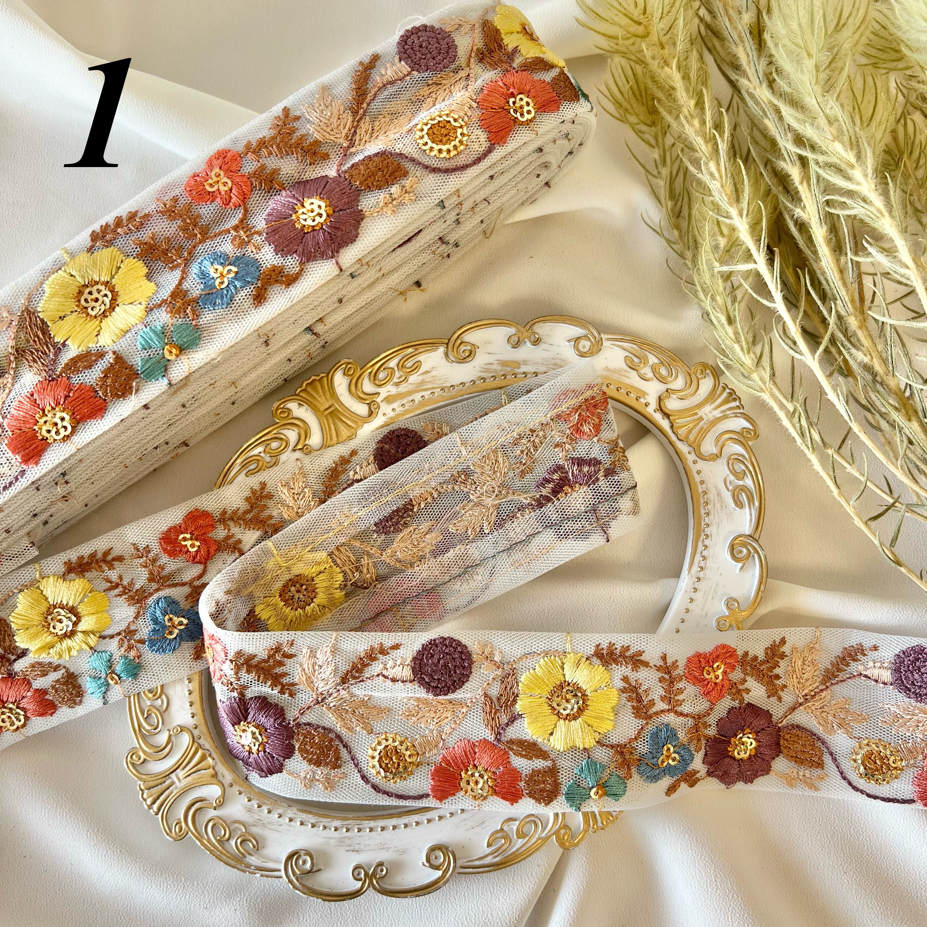 30cm インド刺繍リボン チュール 花柄 #ct22