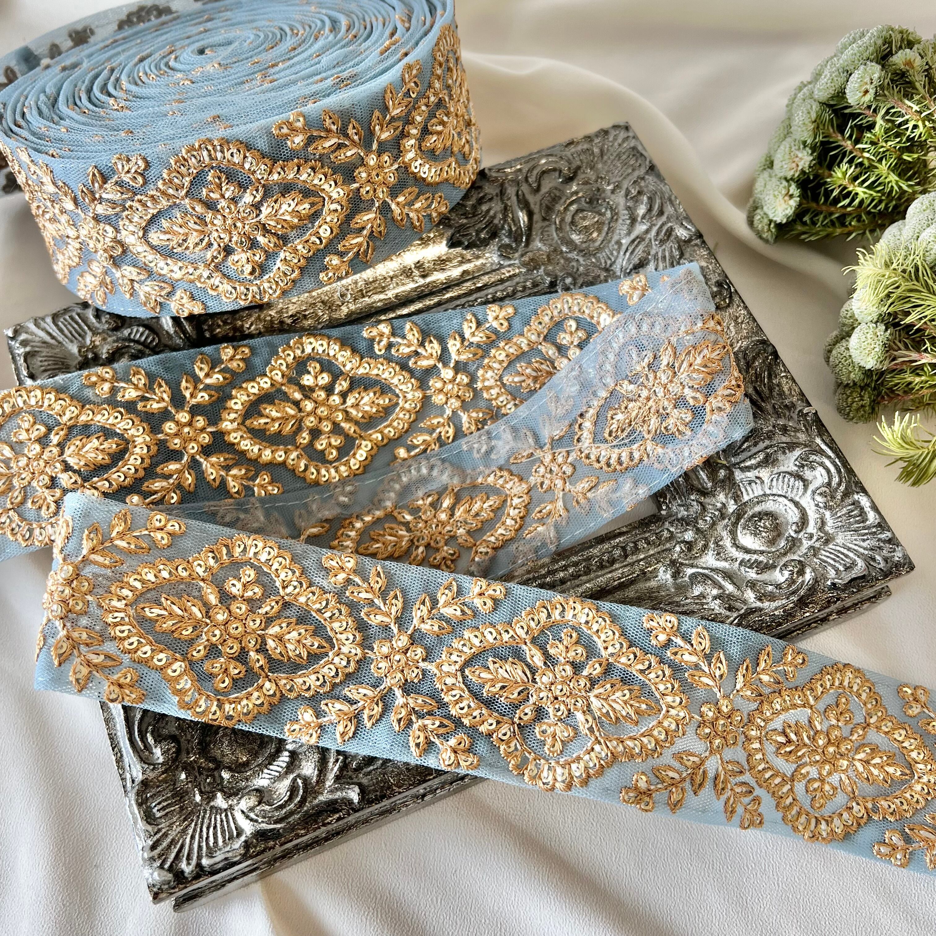 50cm インド刺繍リボン チュール 花柄 #sr15