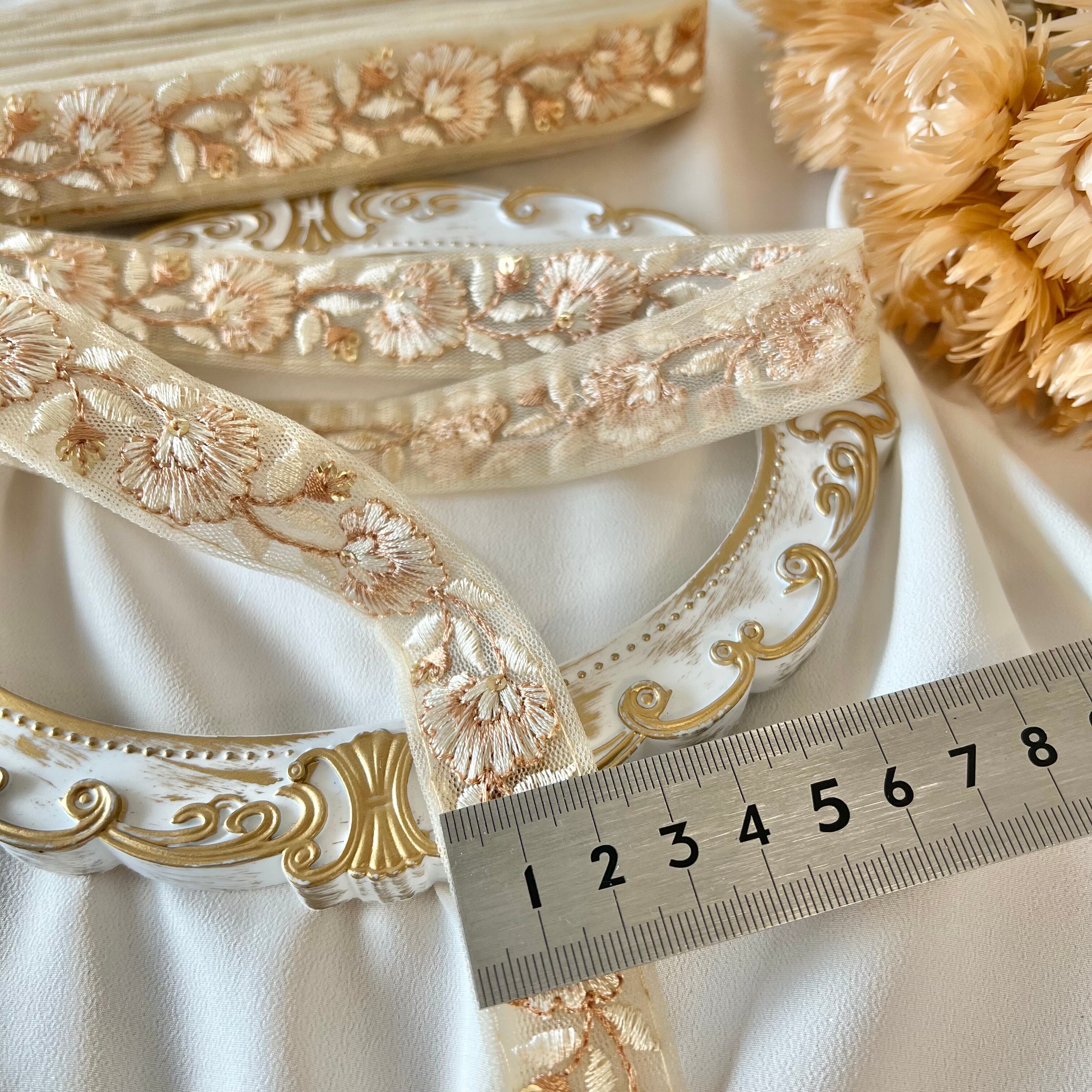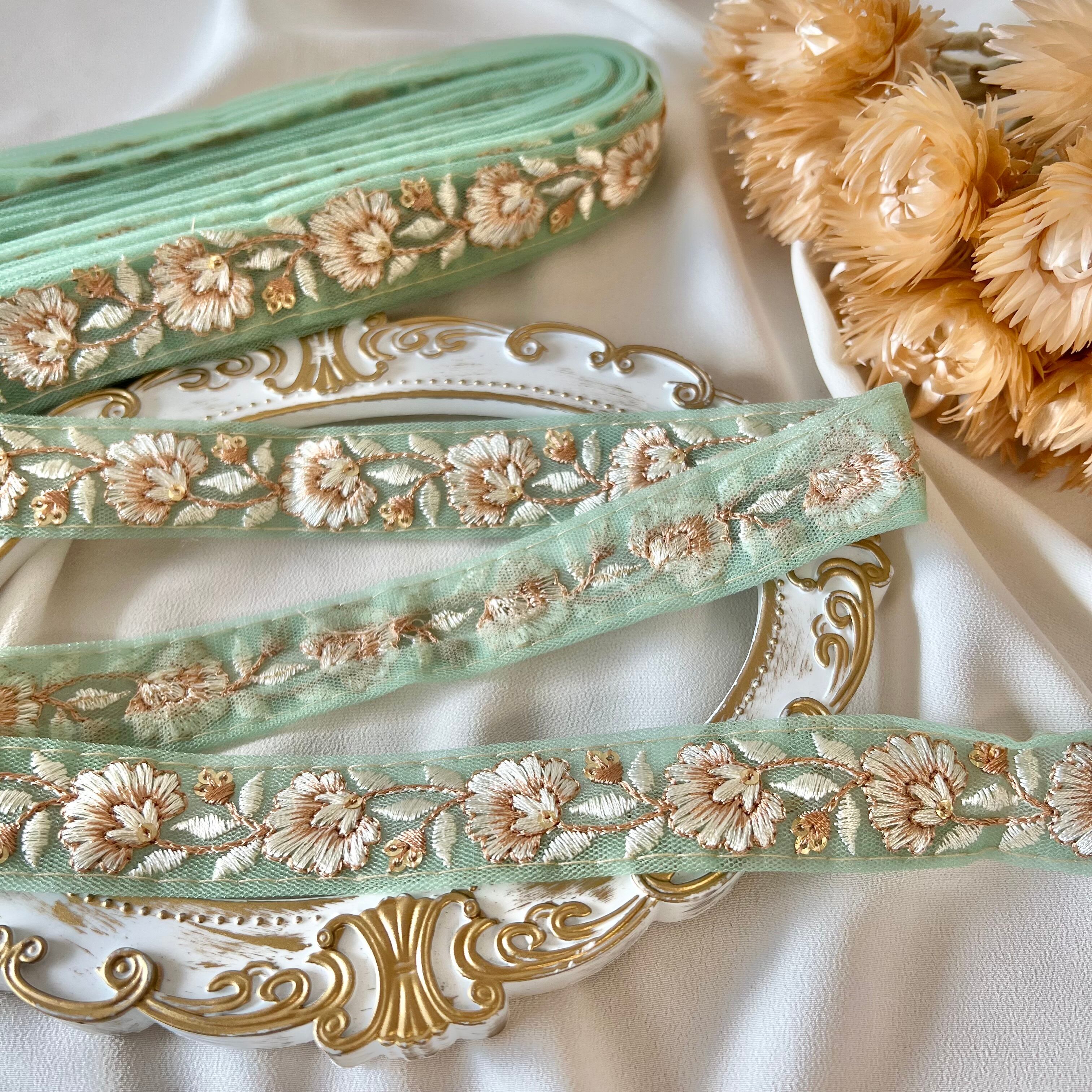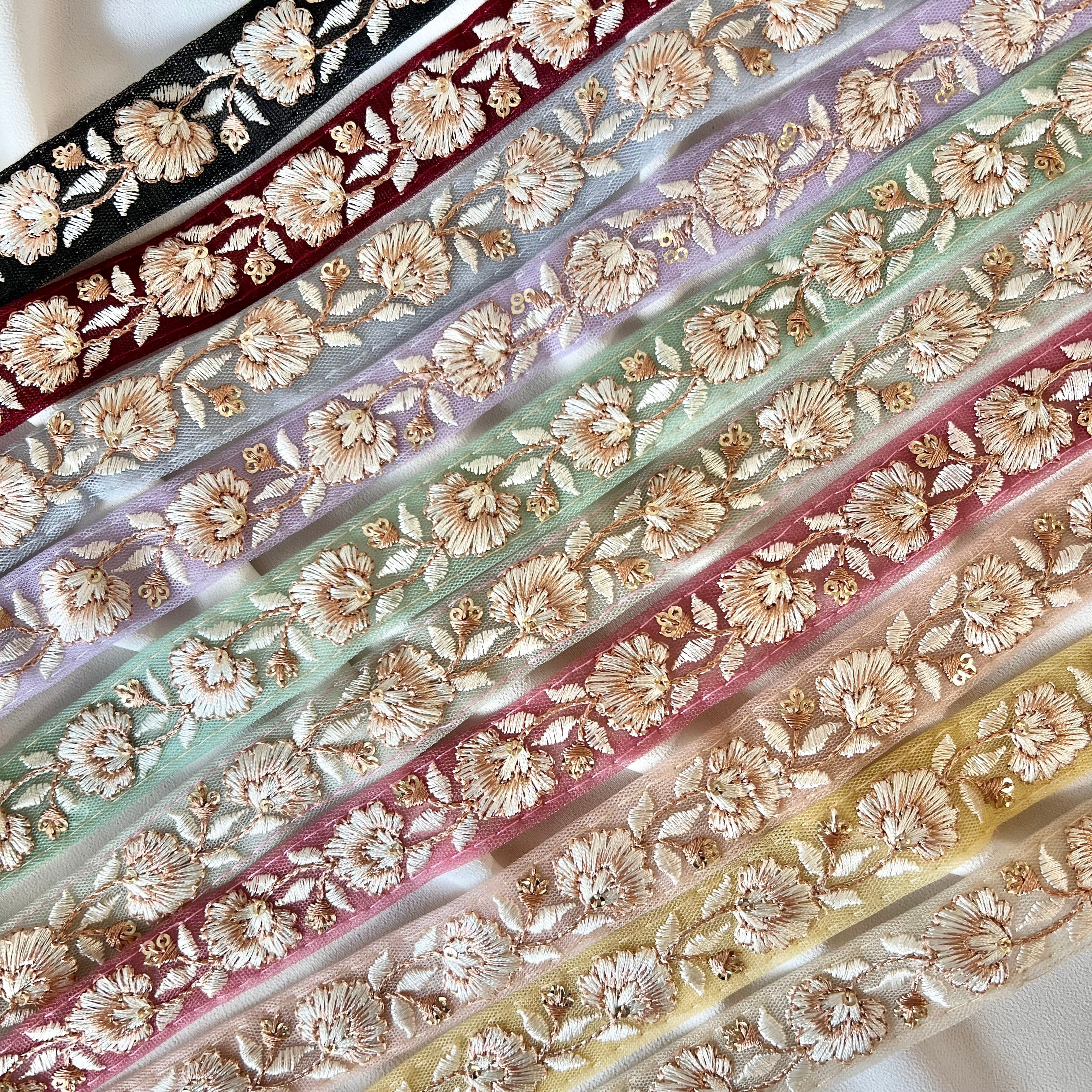 50cm インド刺繍リボン チュール 花柄 #nt19