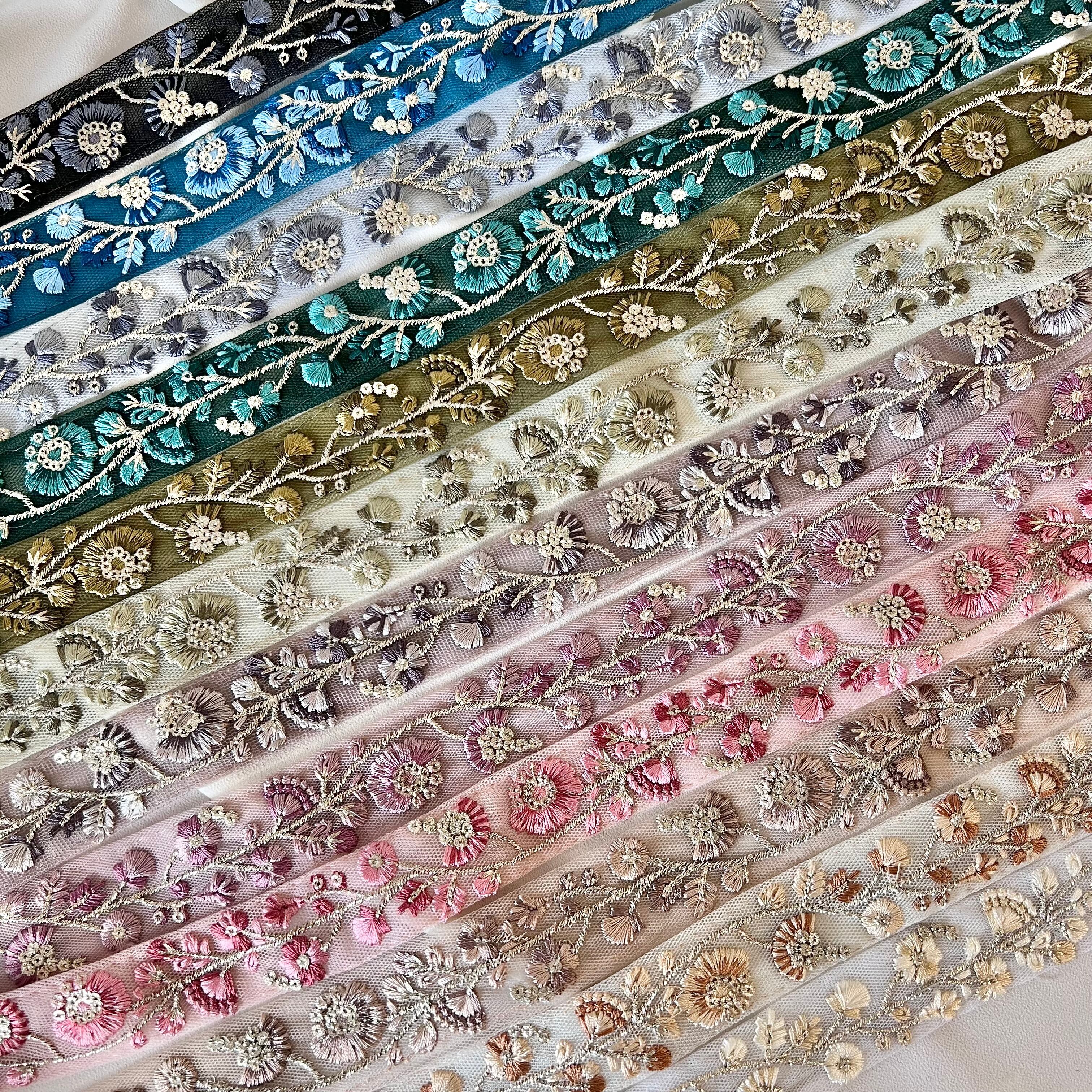 50cm インド刺繍リボン チュール 花柄 #nt20