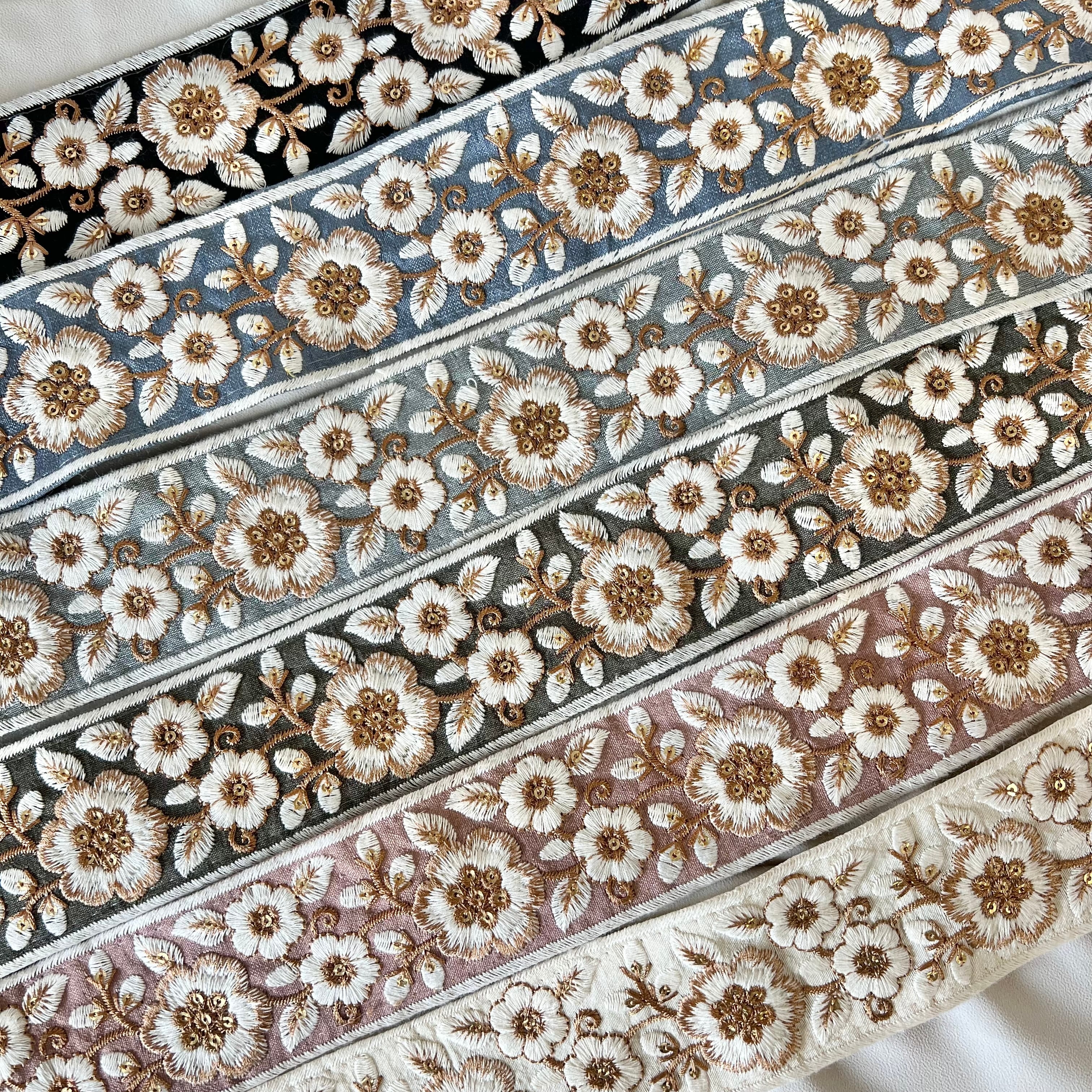 50cm インド刺繍リボン シルク 花柄 #ms22