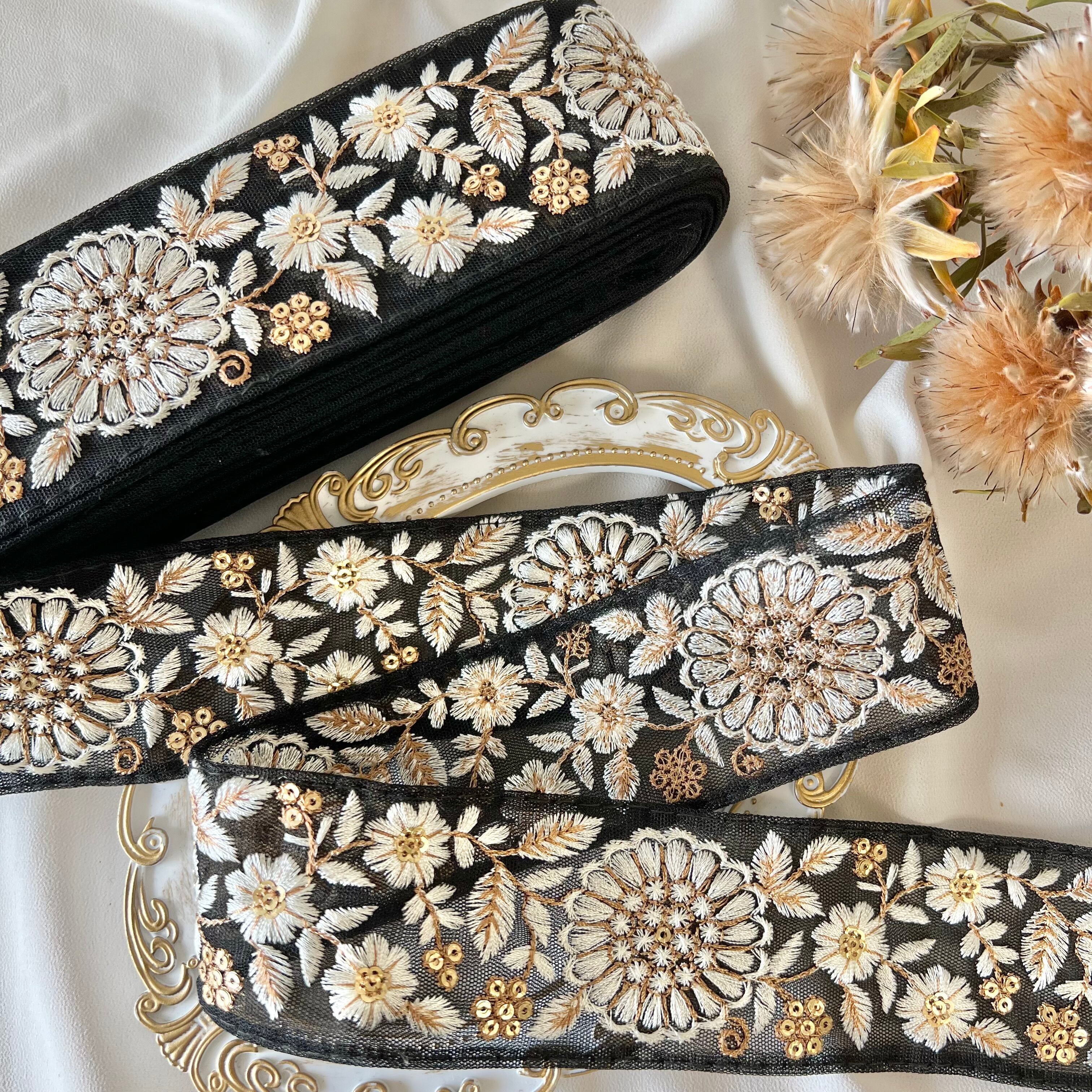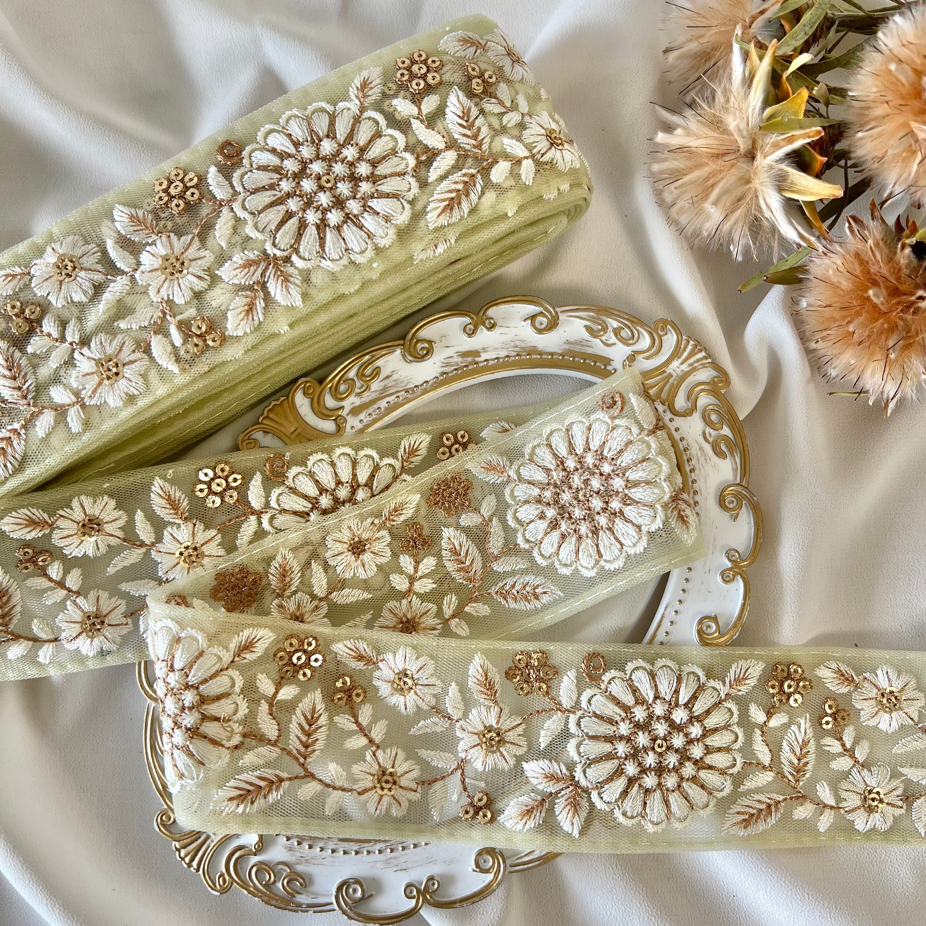 50cm インド刺繍リボン チュール 花柄 #mt32