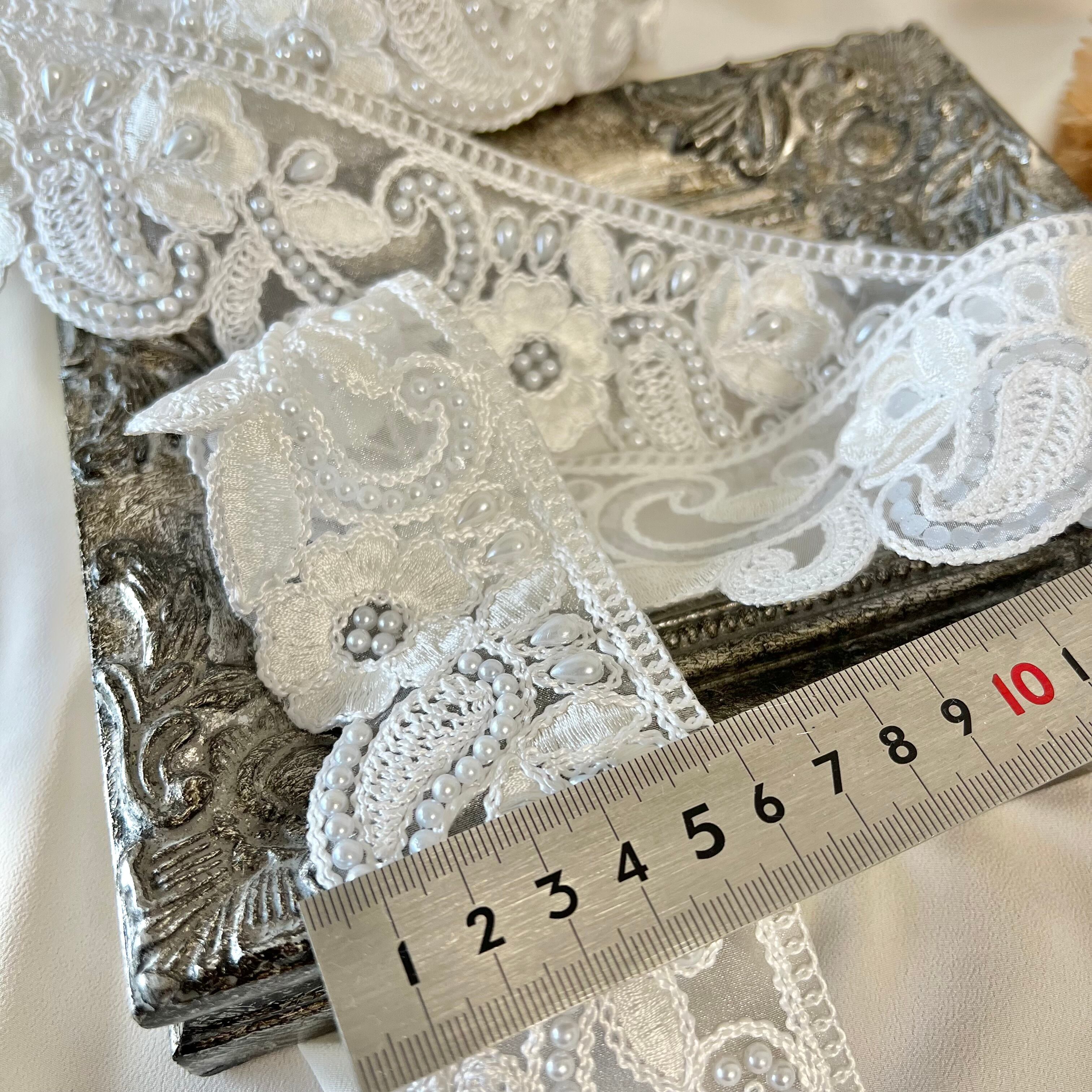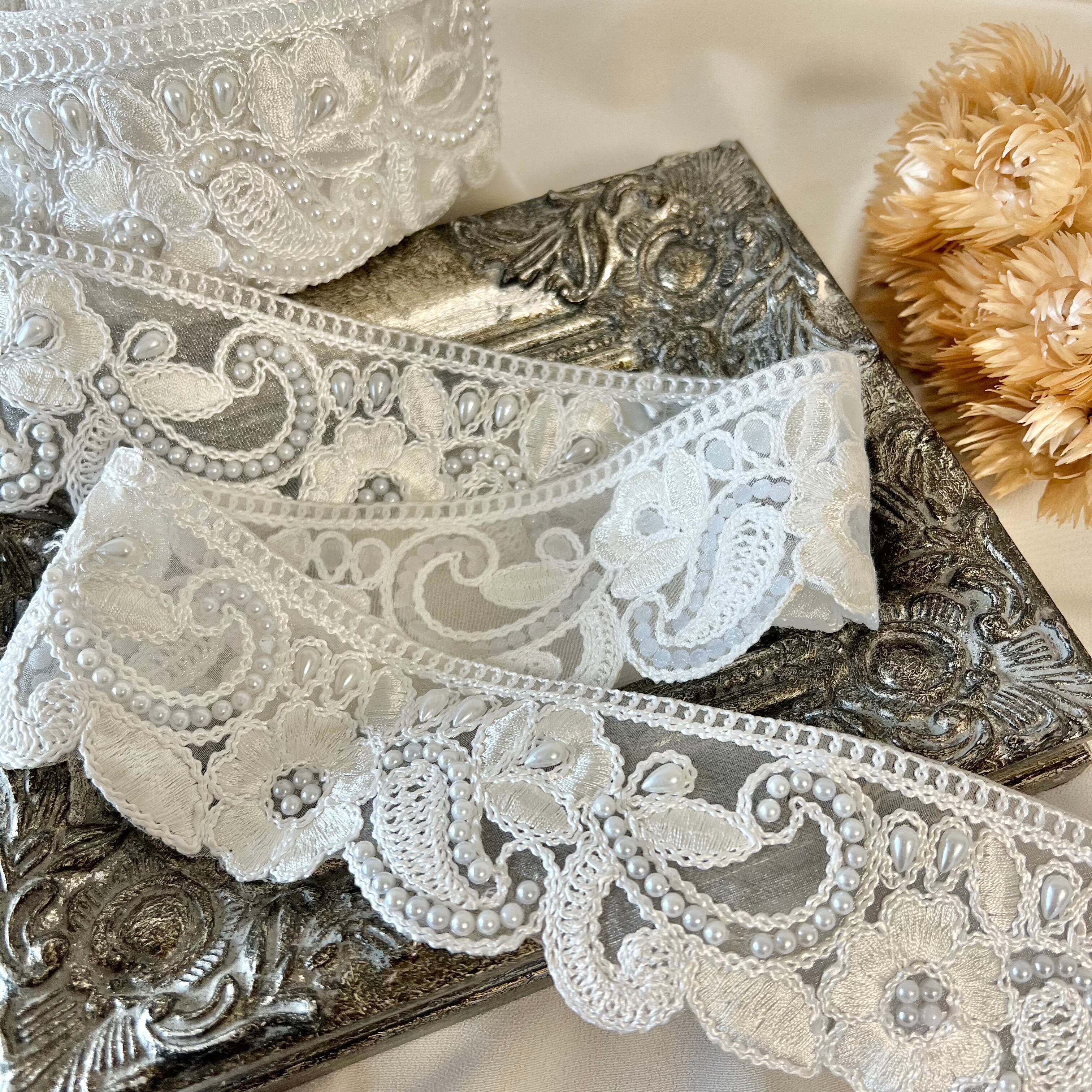 30cm インド刺繍リボン パール付き 花柄 #pw15