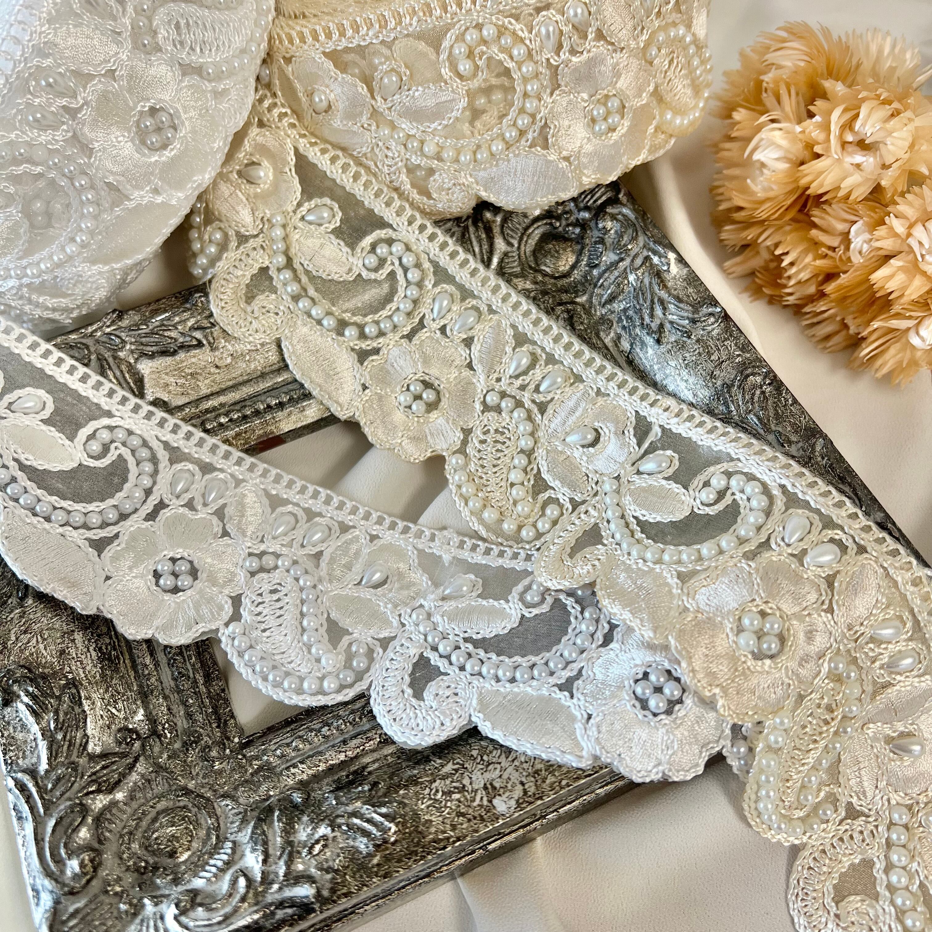 50cm インド刺繍リボン パール付き 花柄 #pw15