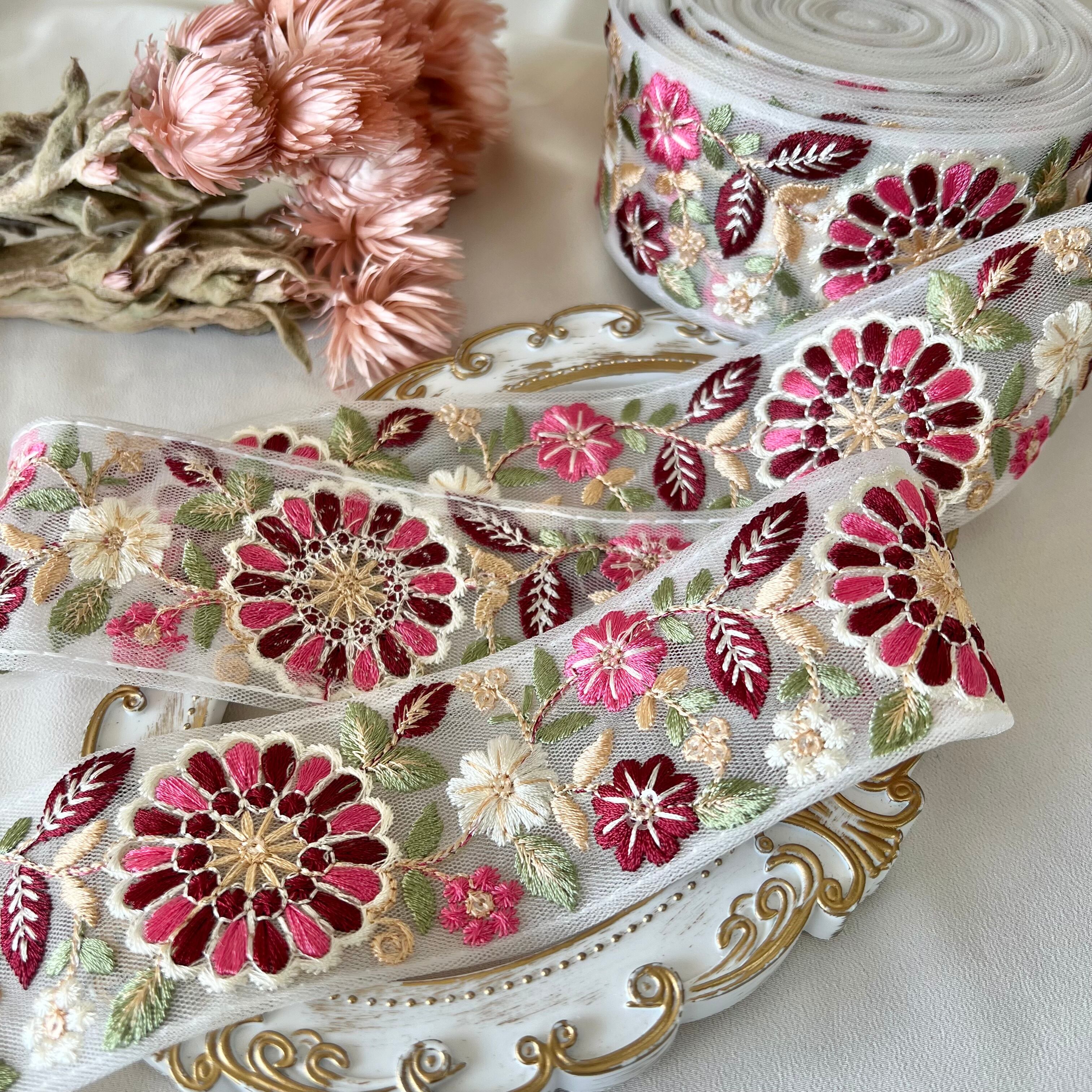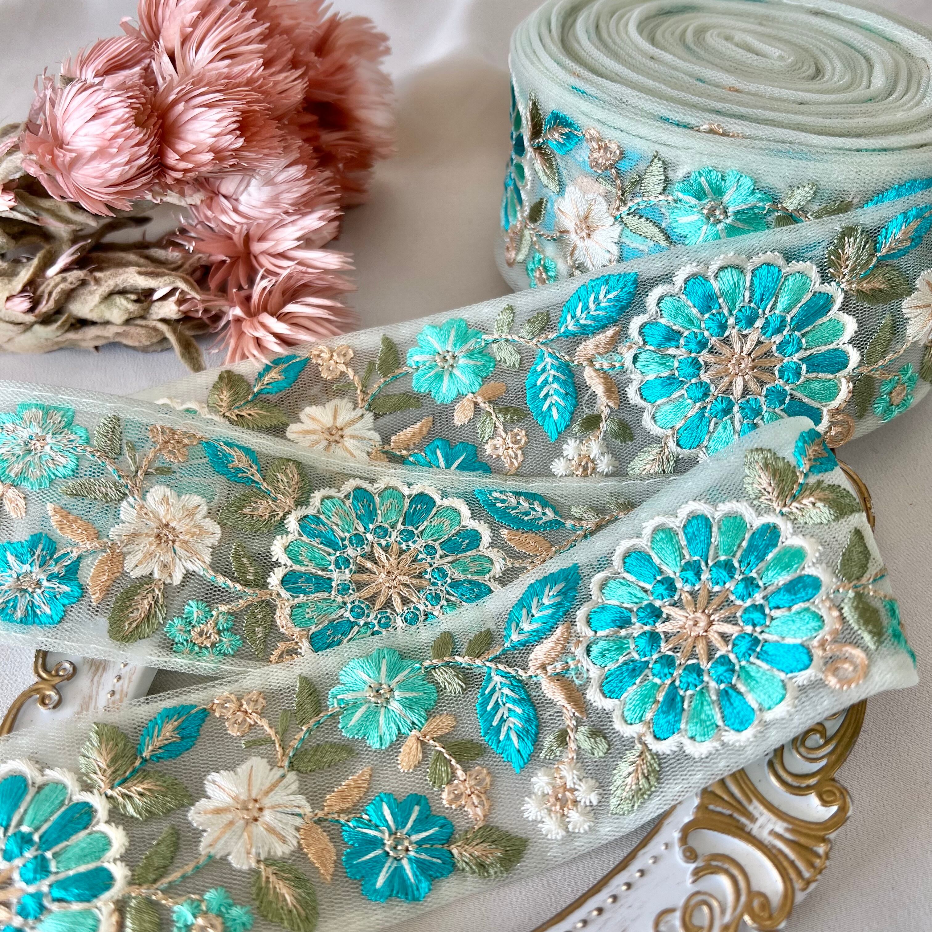 50cm インド刺繍リボン チュール 花柄 #mt7