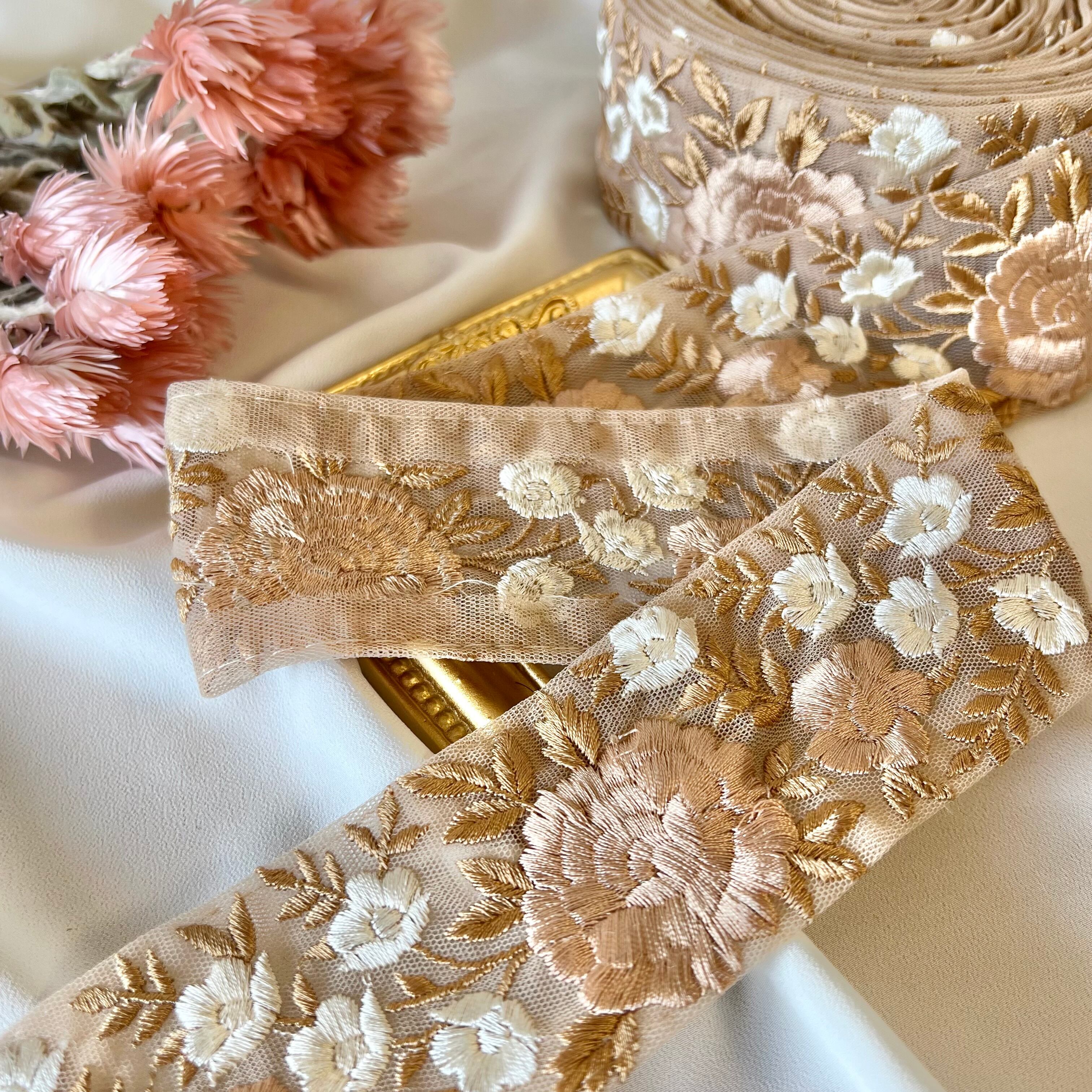 50cm インド刺繍リボン チュール 花柄 #mt36