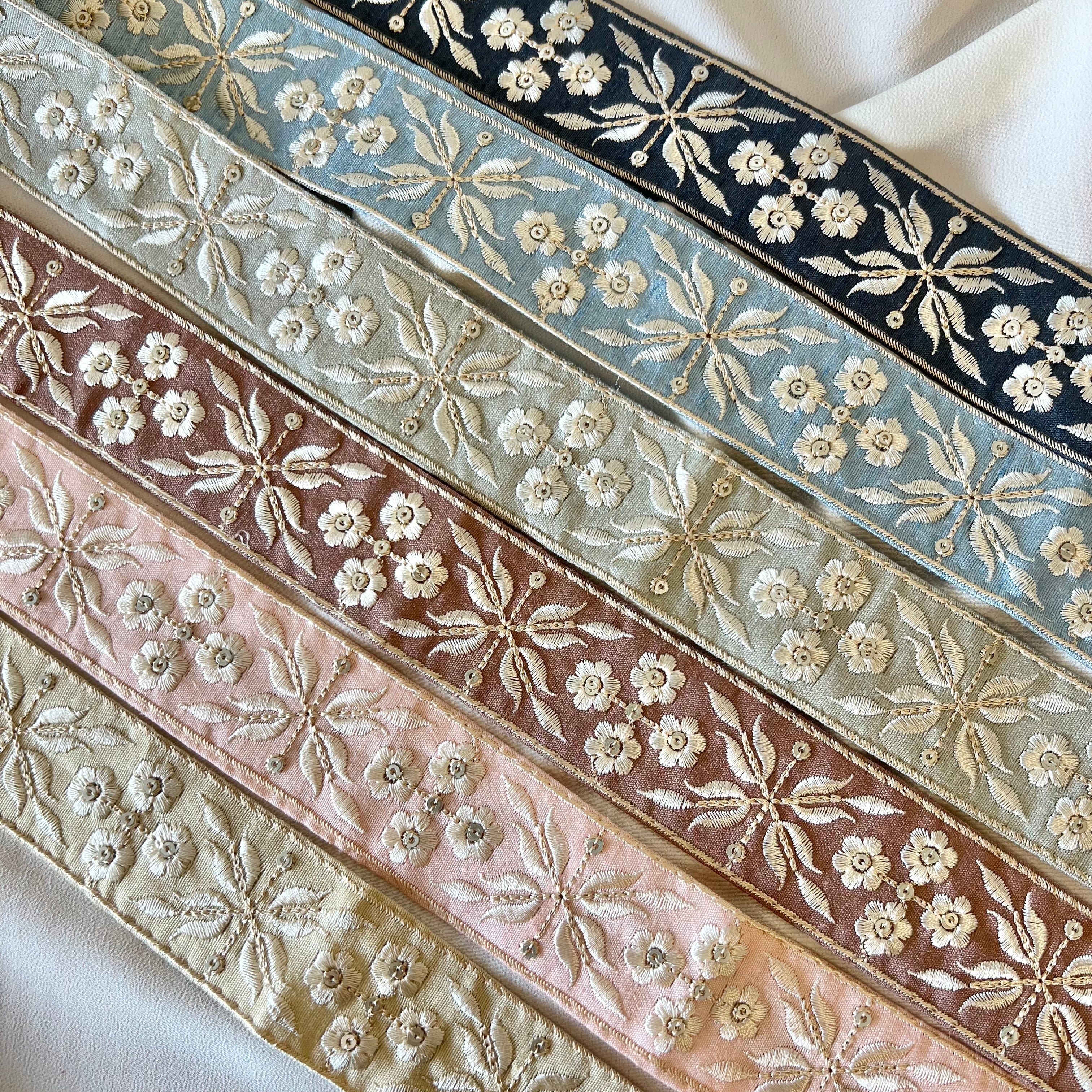 50cm インド刺繍リボン シルク 花柄 #n2s9