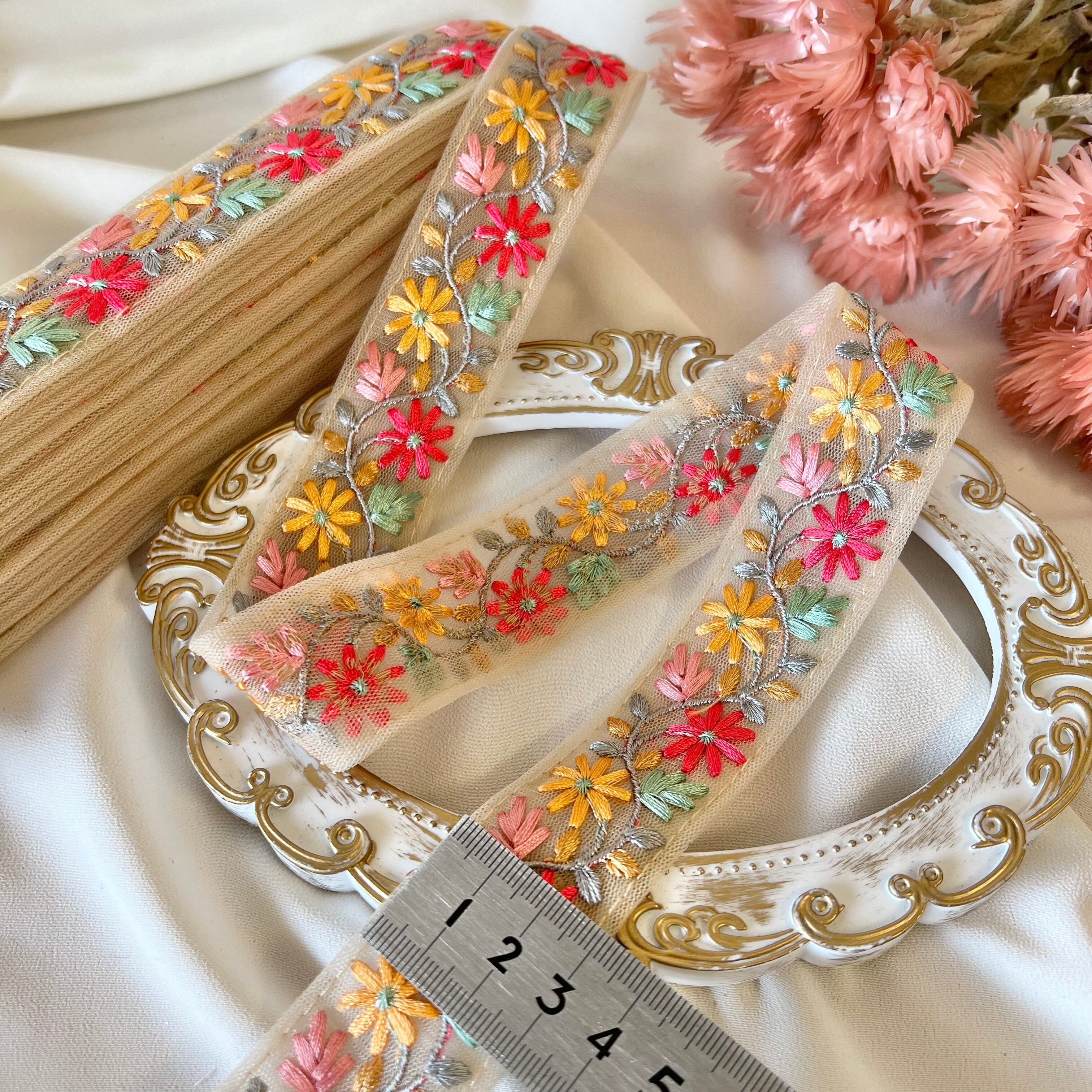 50cm インド刺繍リボン チュール 花柄 #ct30