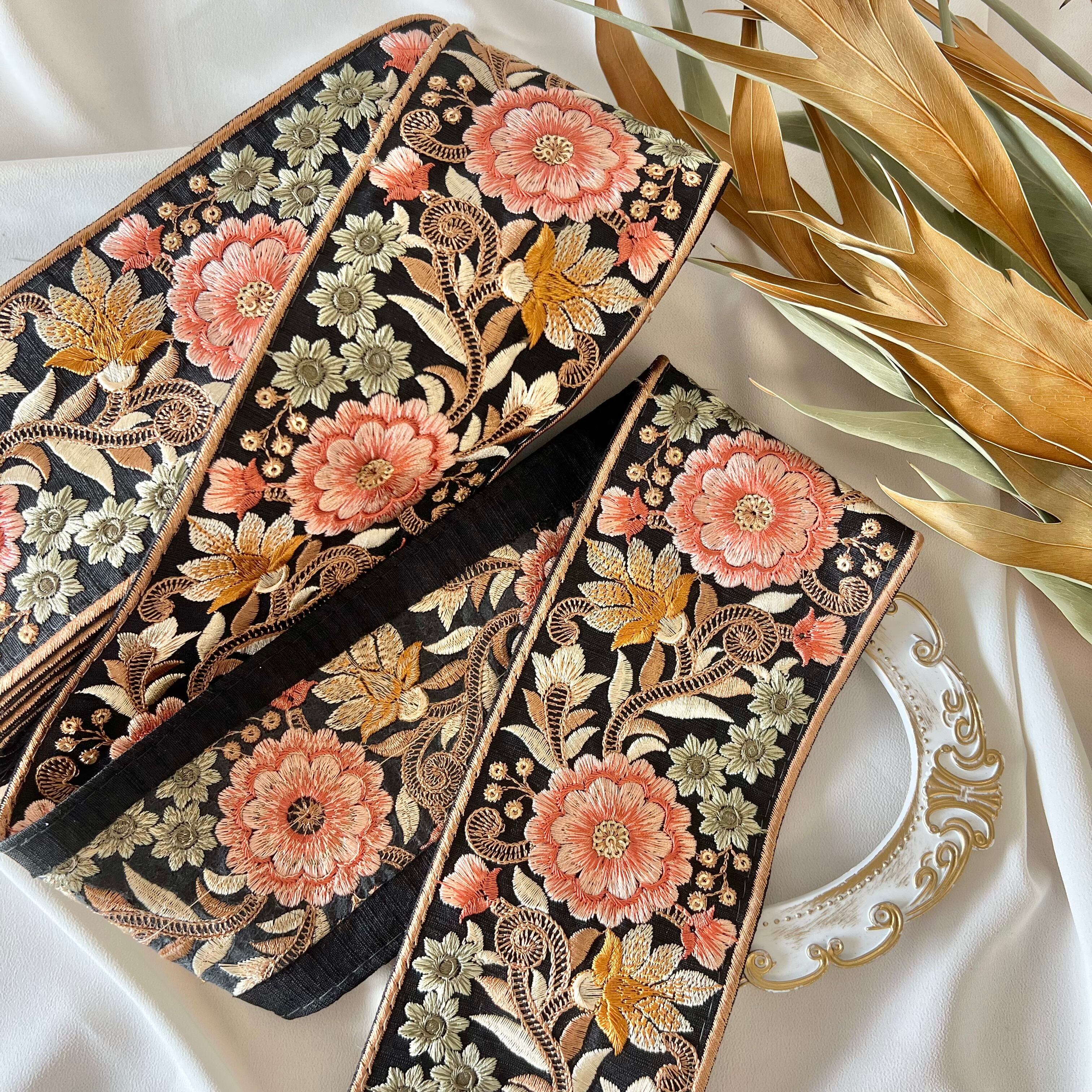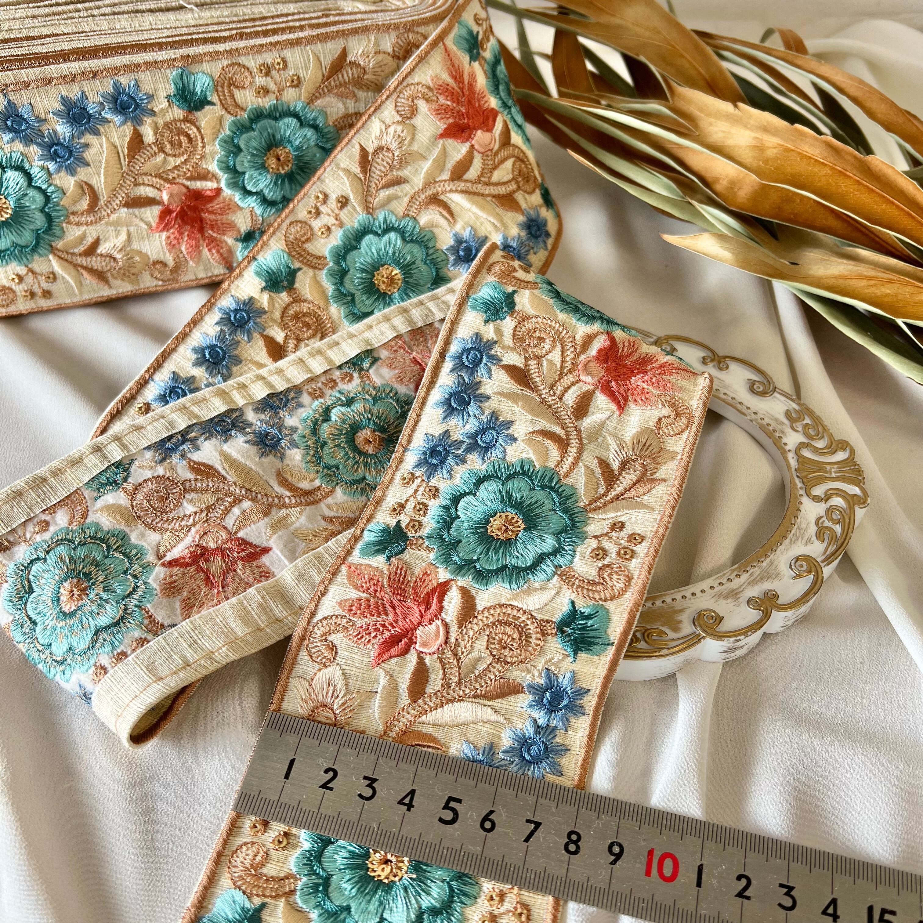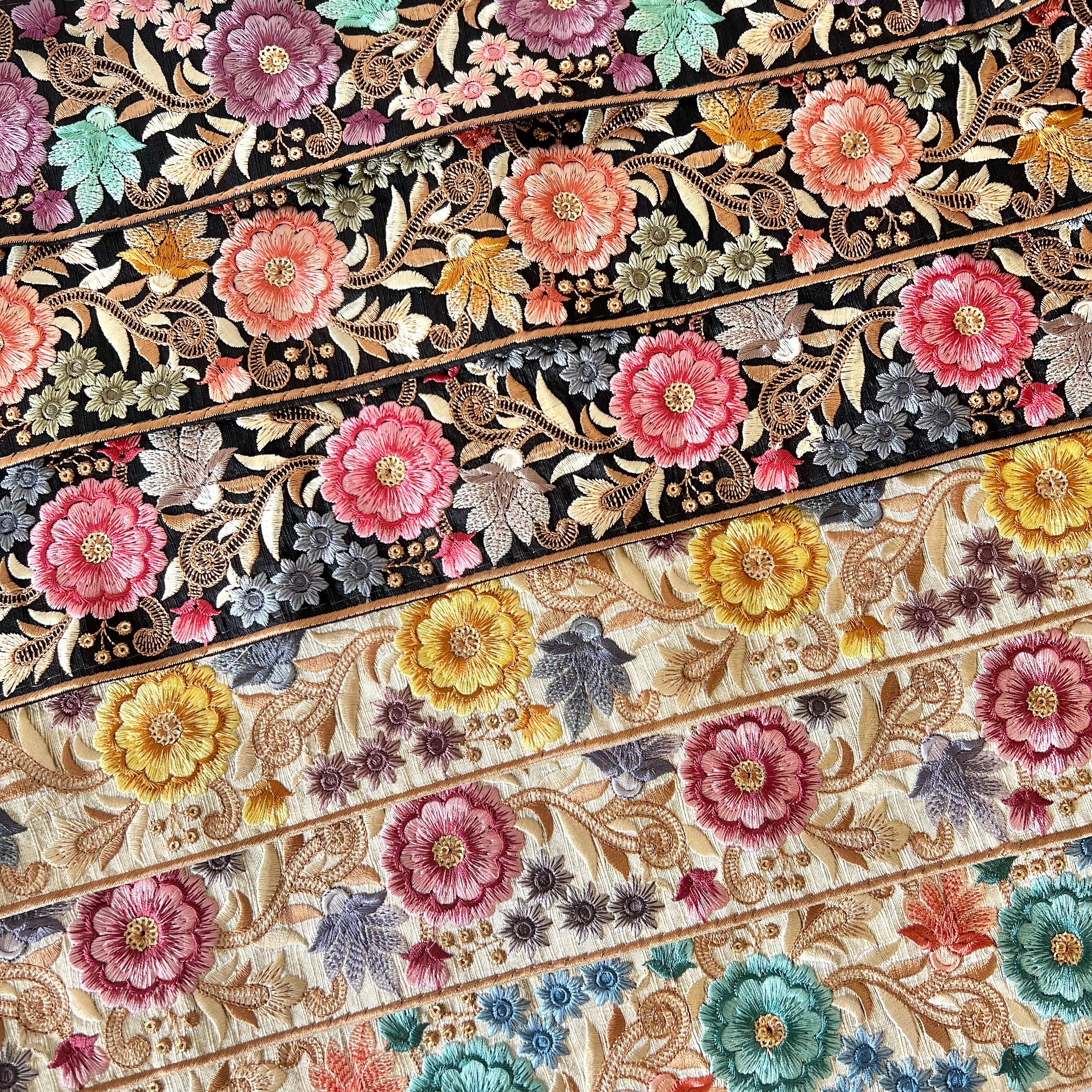 30cm インド刺繍リボン シルク 花柄 #ws18