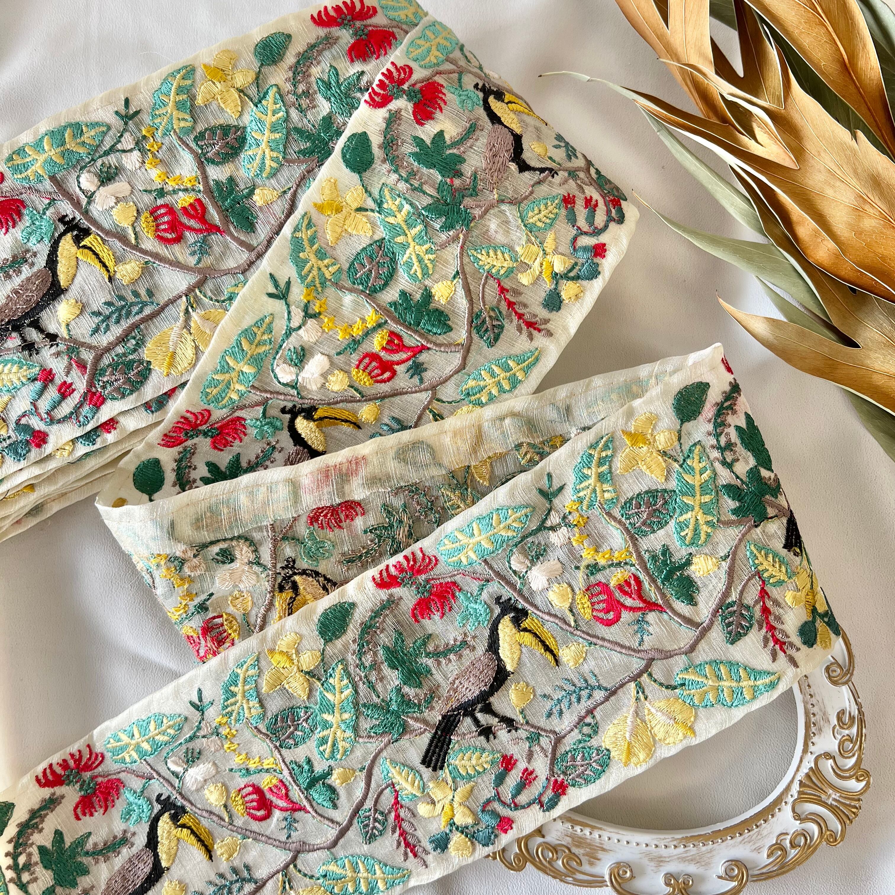 30cm インド刺繍リボン チュール 鳥柄 #wt17