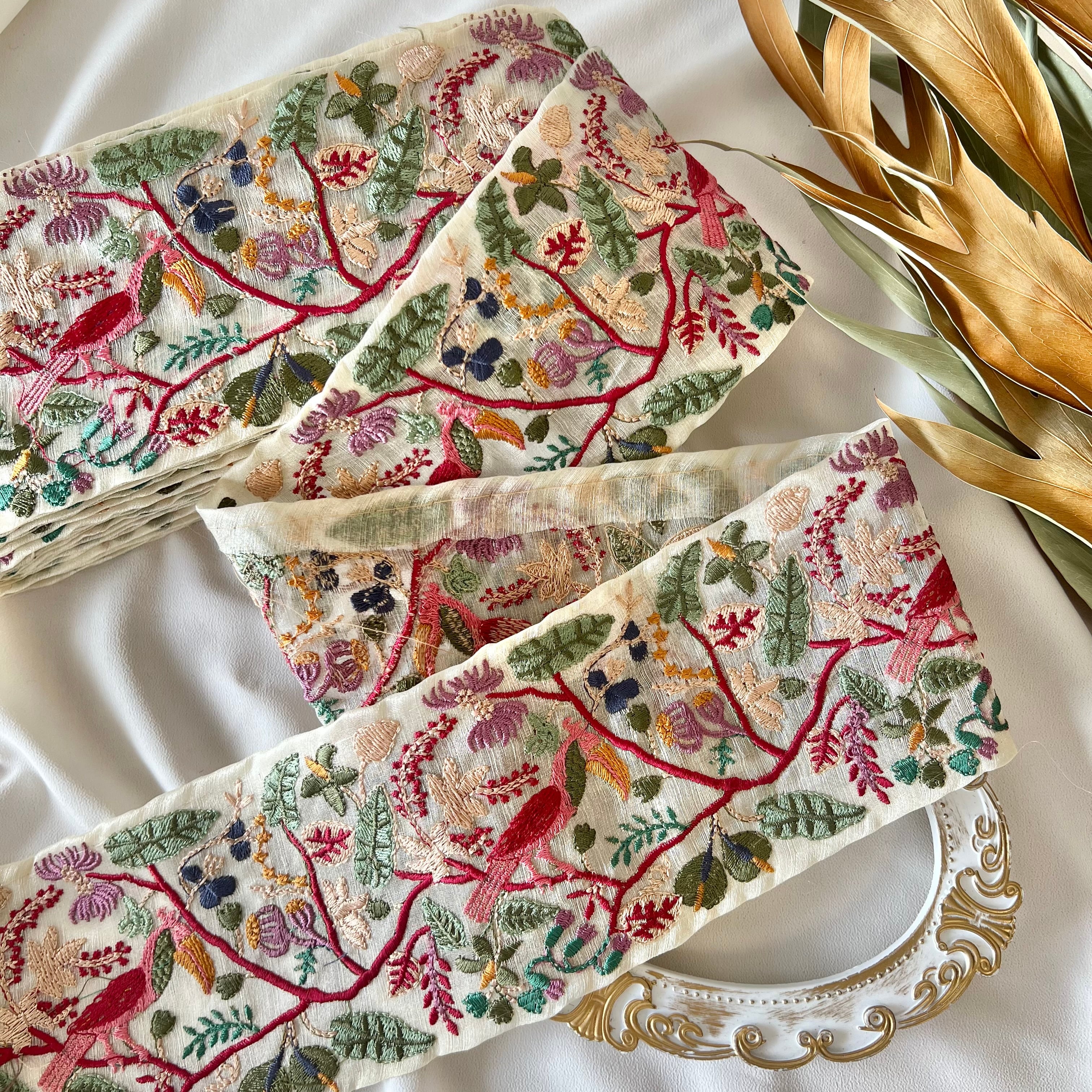 50cm インド刺繍リボン チュール 鳥柄 #wt17