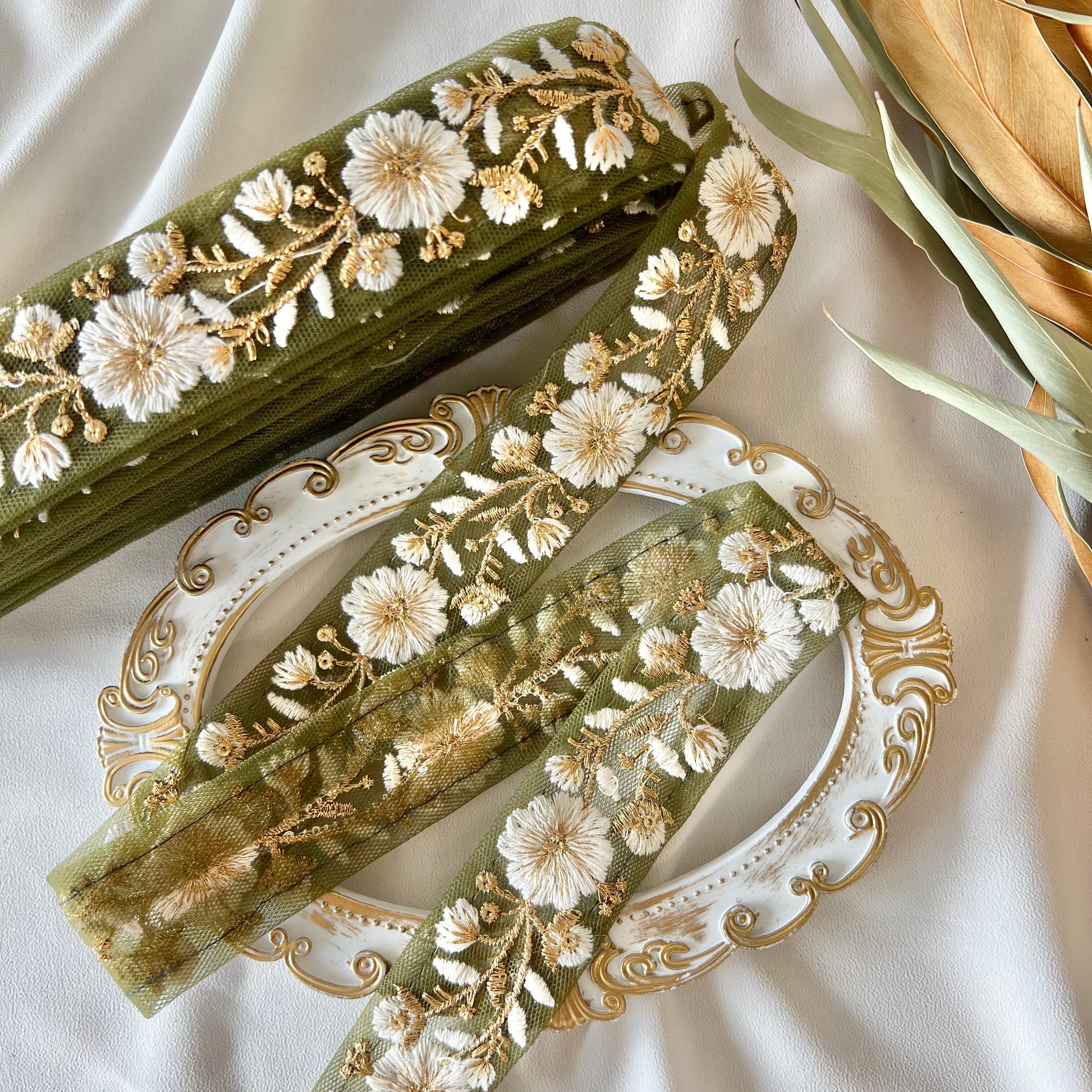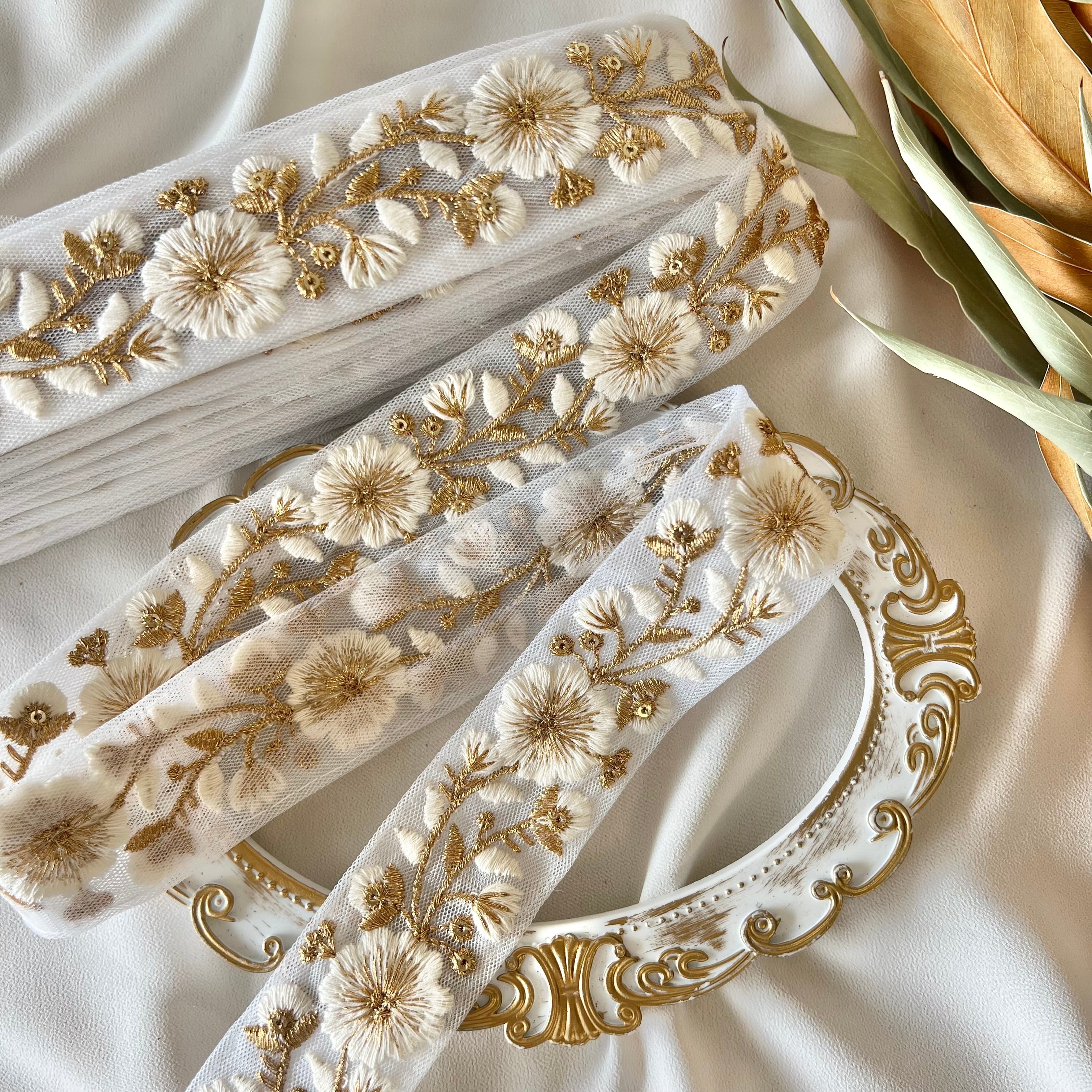 50cm インド刺繍リボン チュール 花柄 #n2t23