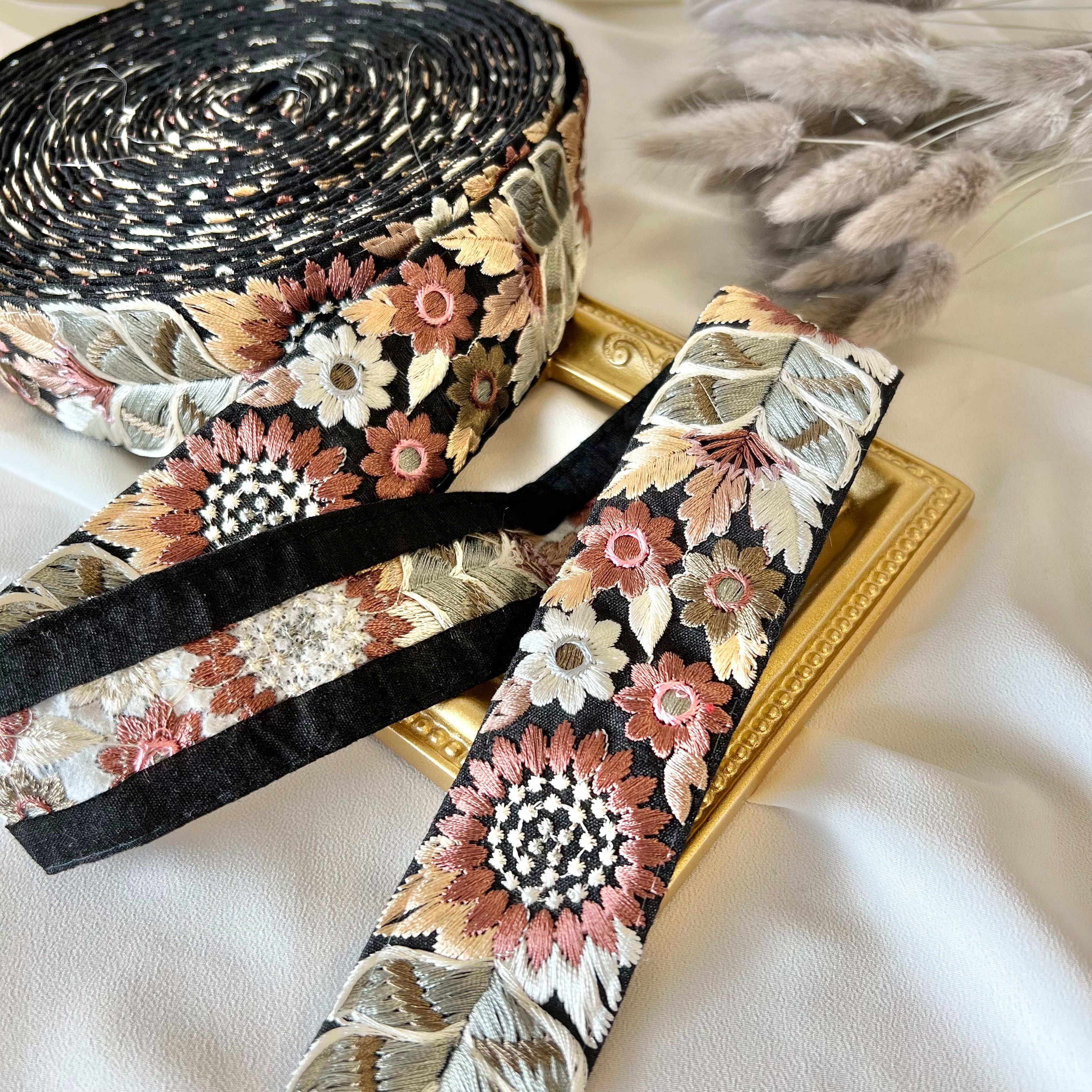 50cm インド刺繍リボン シルク 花柄 #n2s11