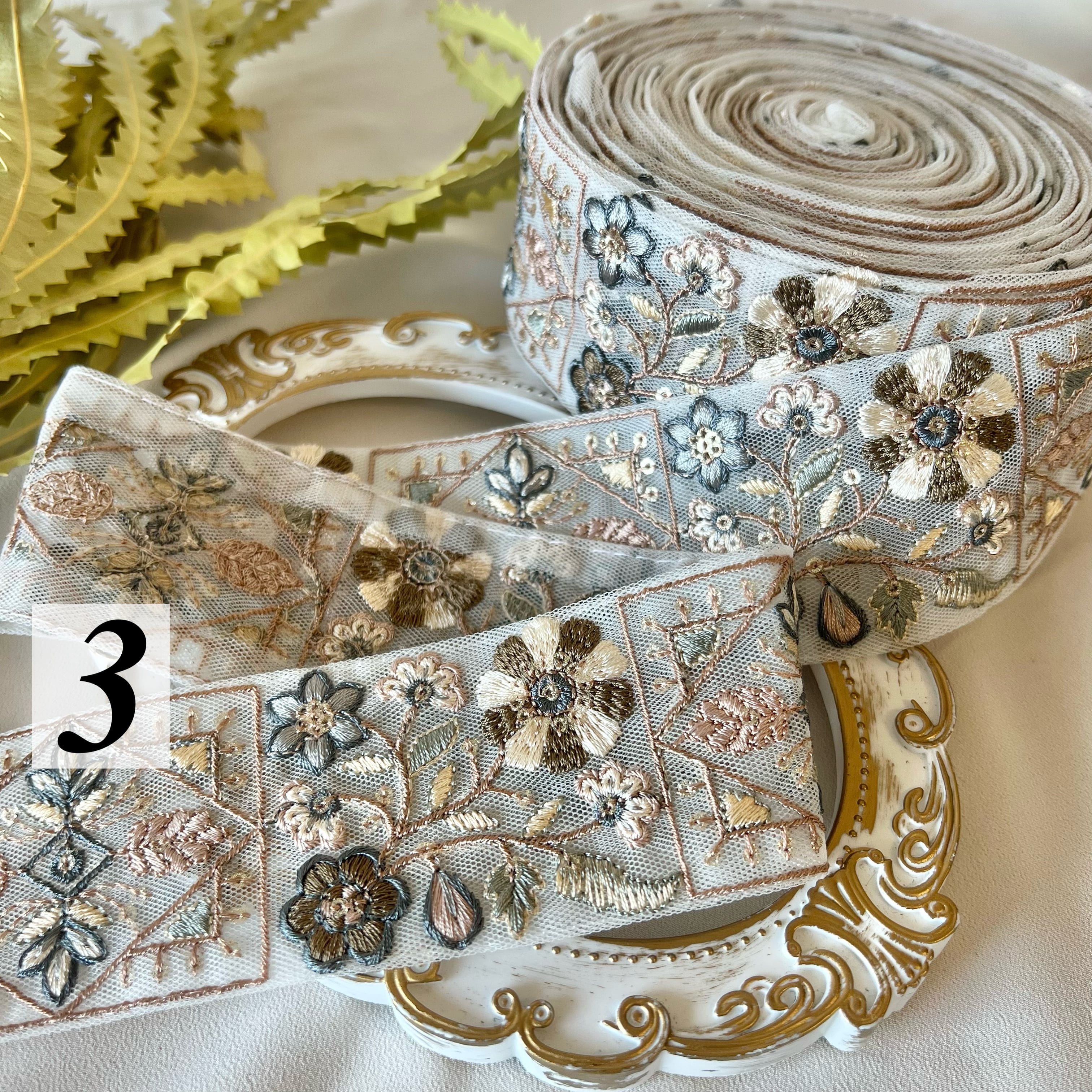 50cm インド刺繍リボン チュール 花柄 #ct29