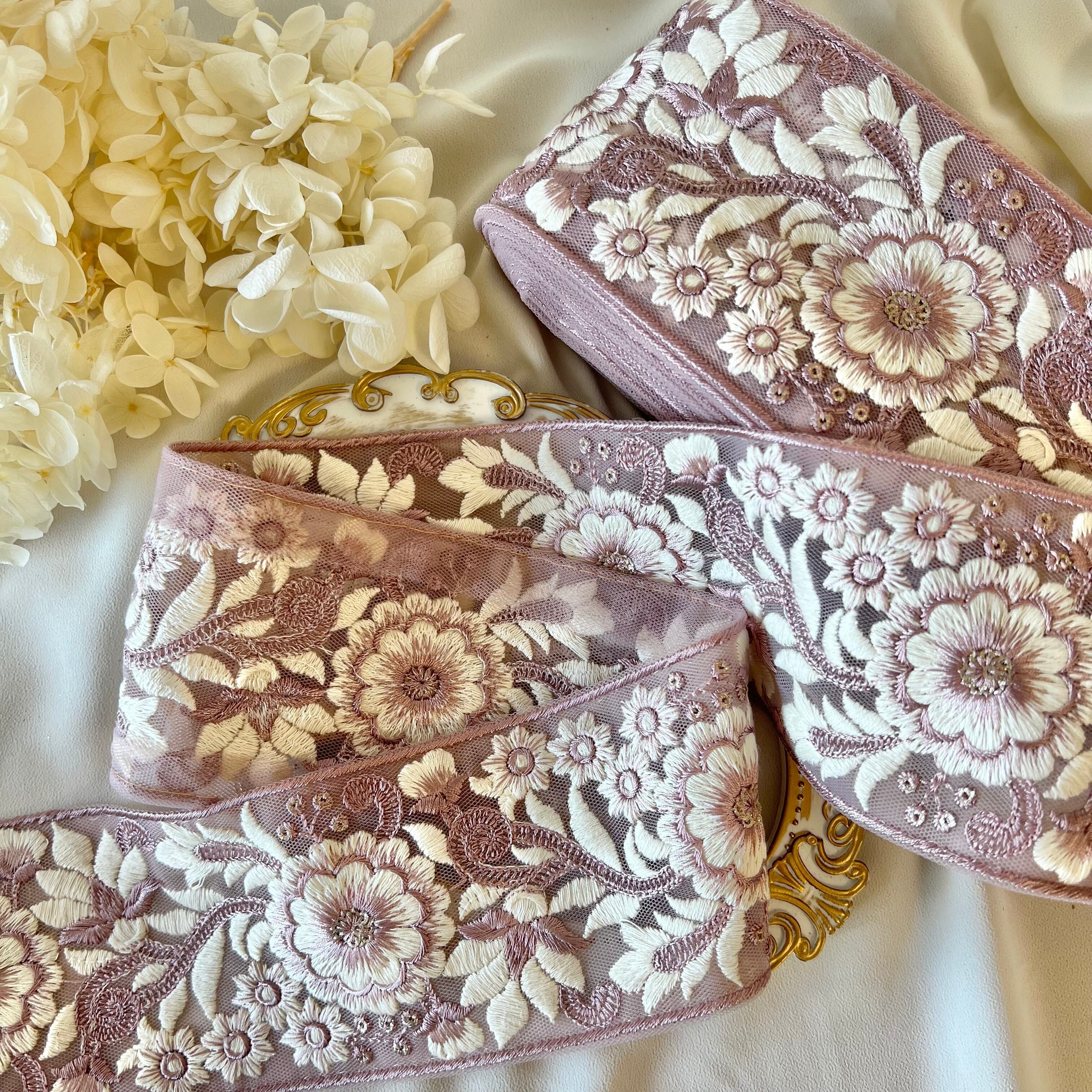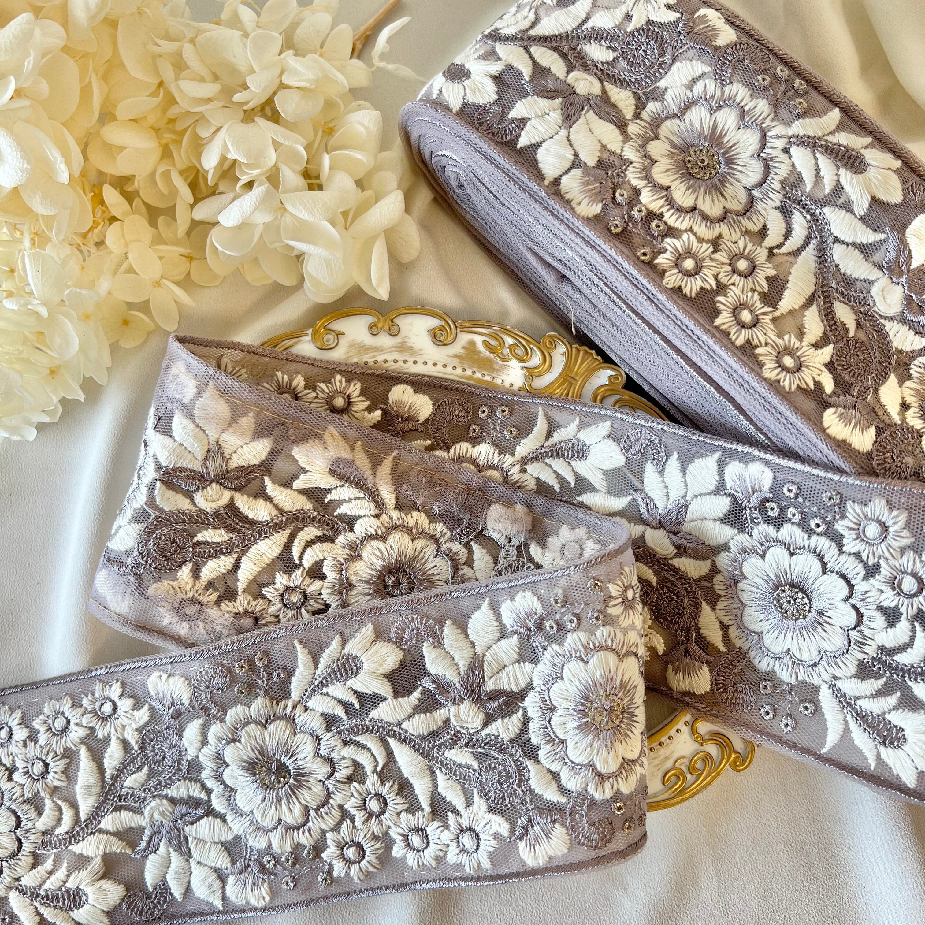 50cm インド刺繍リボン チュール 花柄 #wt19