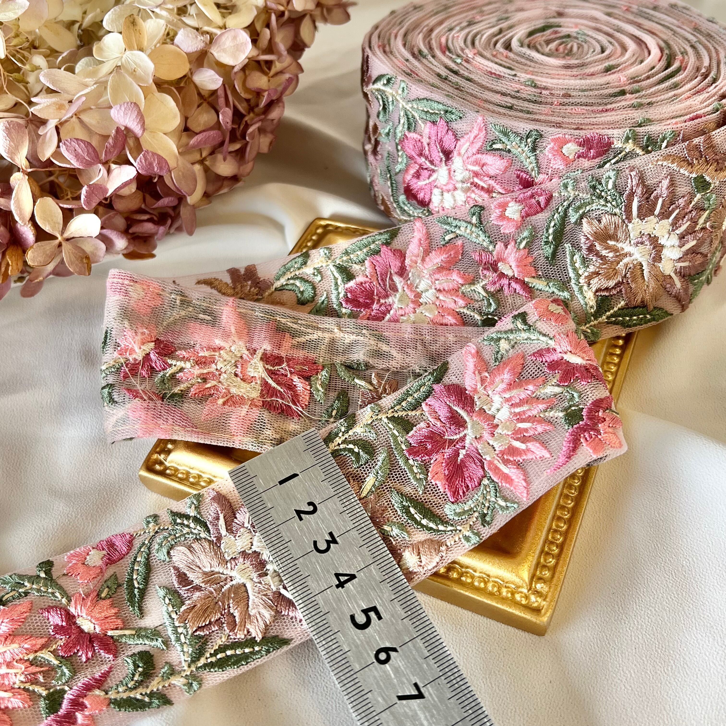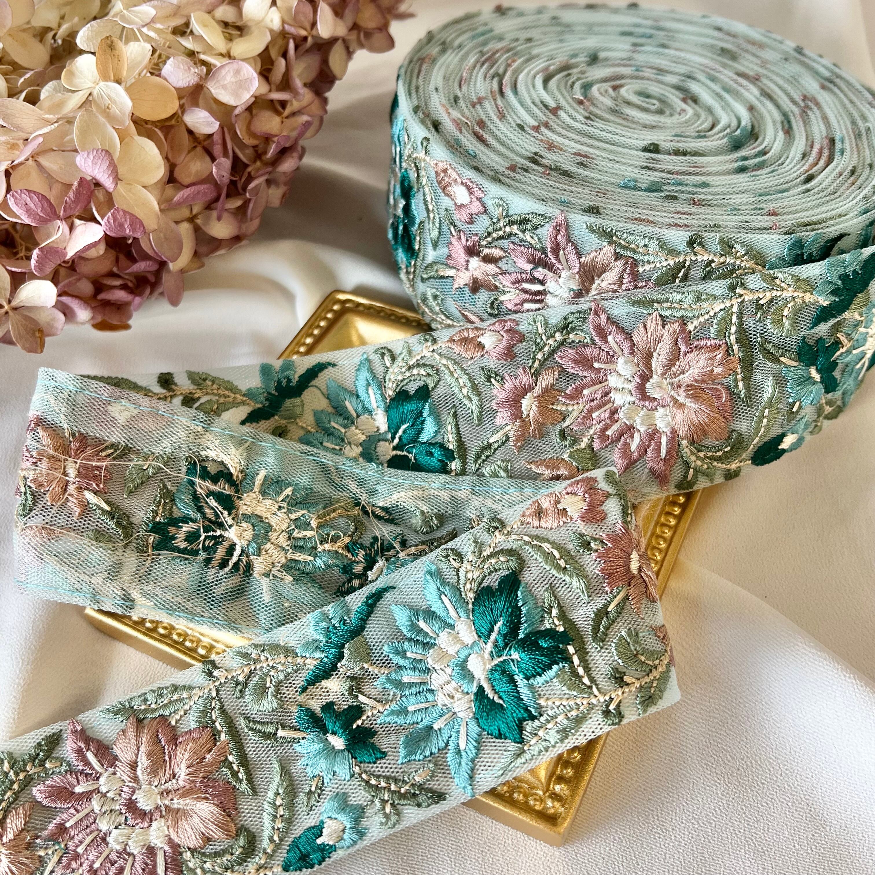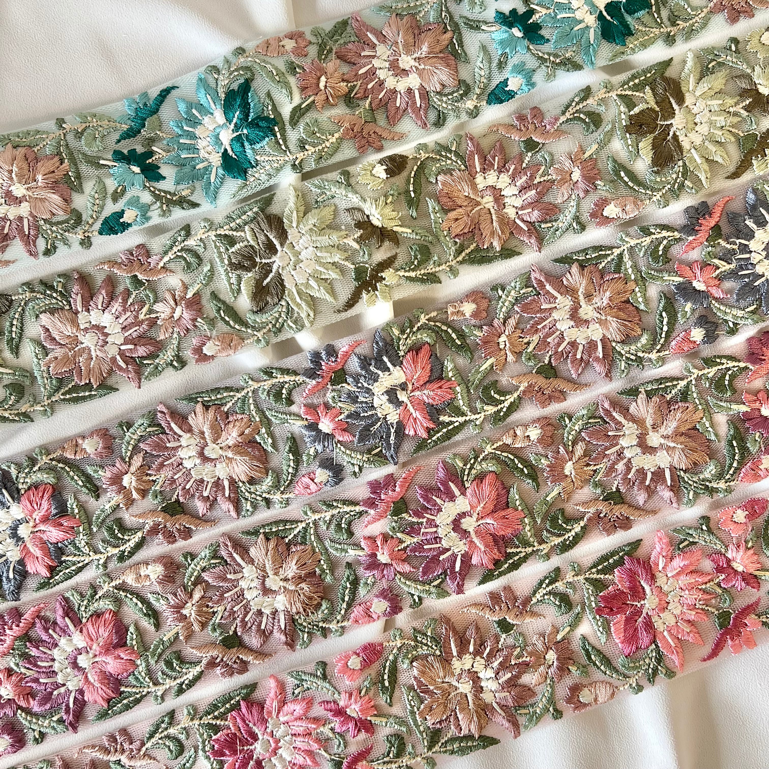 50cm インド刺繍リボン チュール 花柄 #wt20