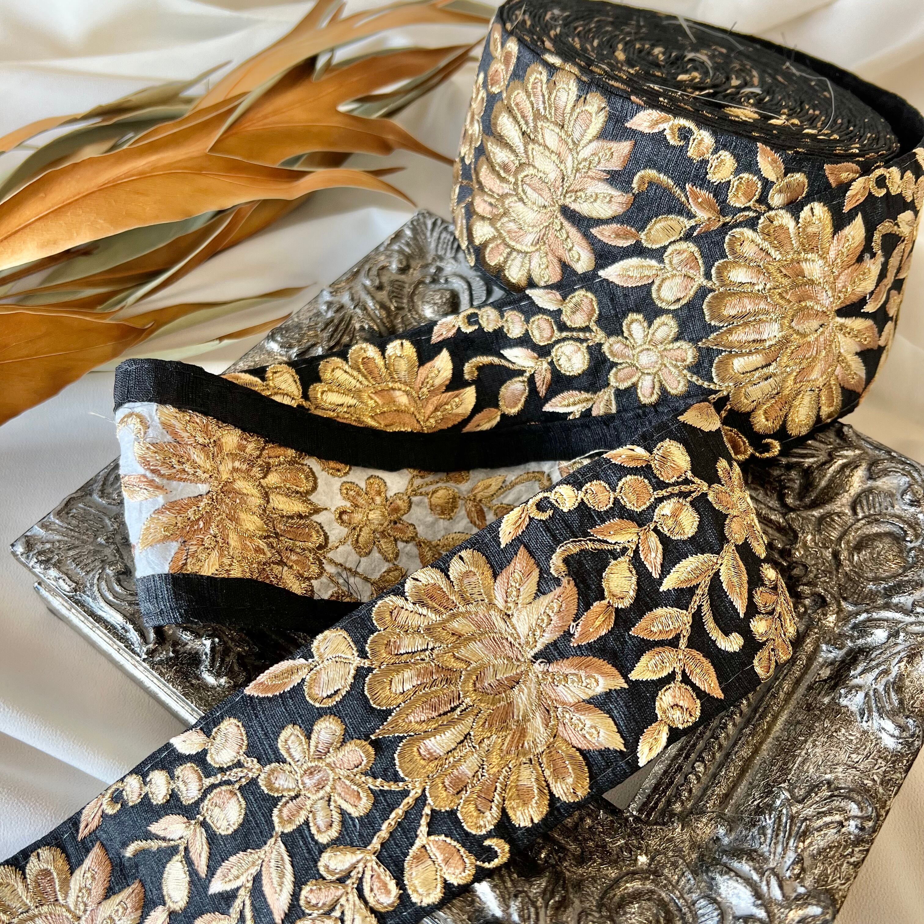 30cm インド刺繍リボン シルク 花柄 #ws23