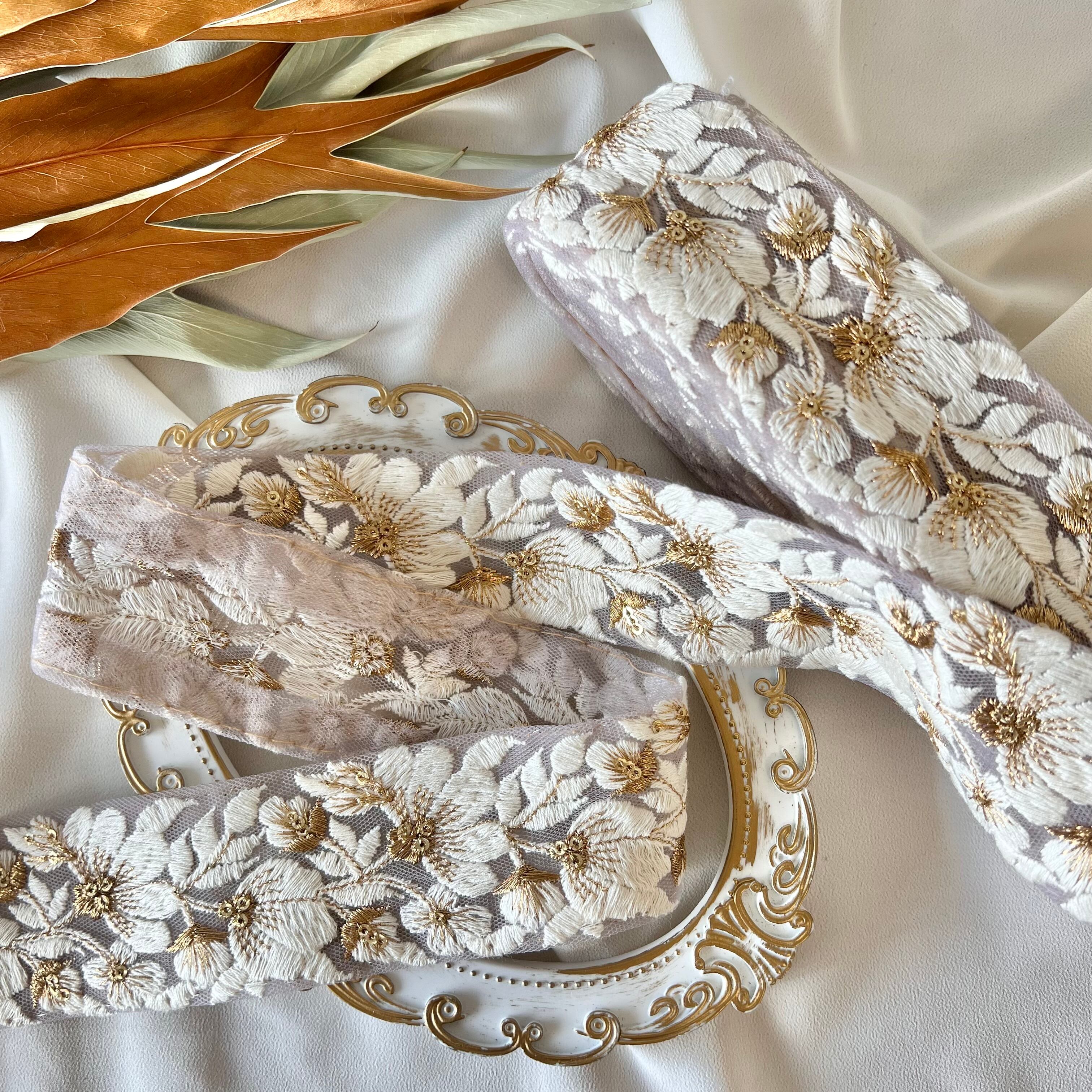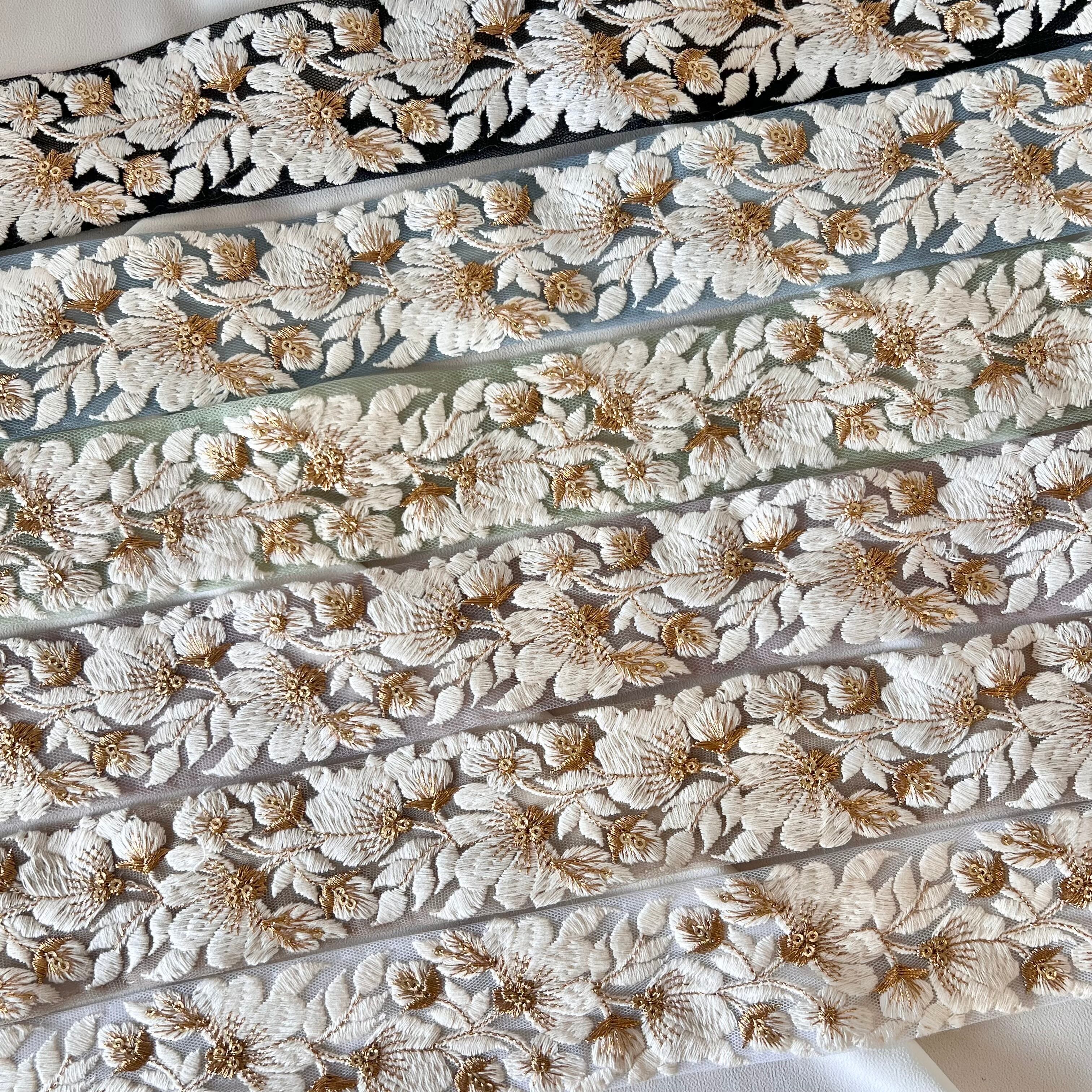30cm インド刺繍リボン チュール 花柄 #mt46