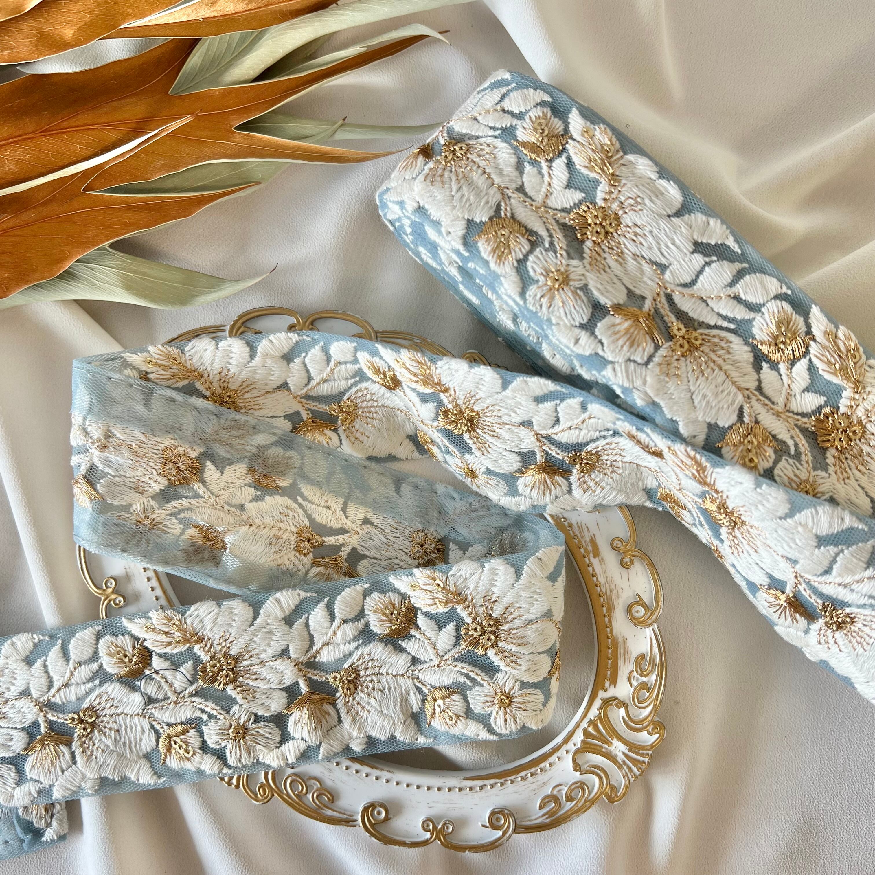 50cm インド刺繍リボン チュール 花柄 #mt46