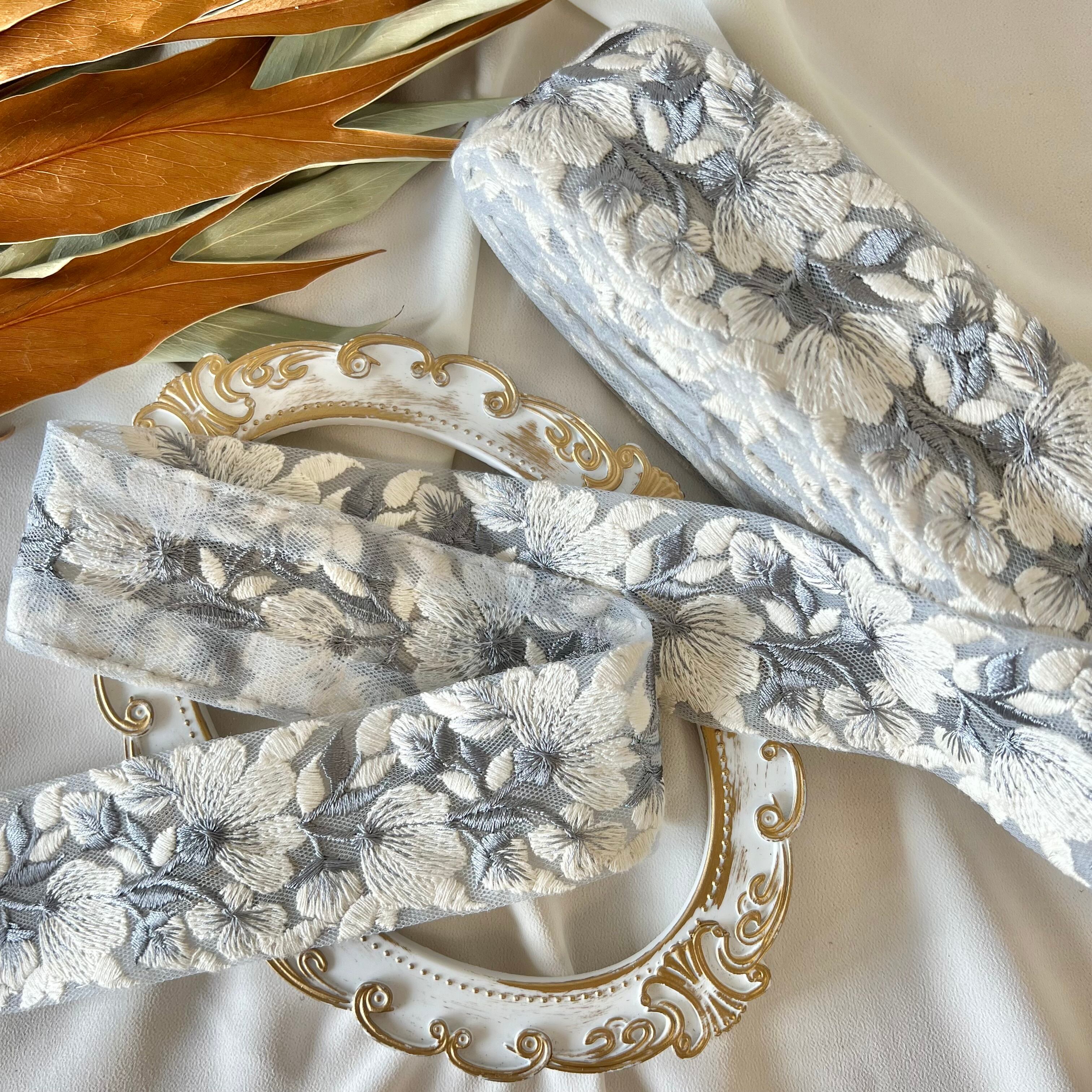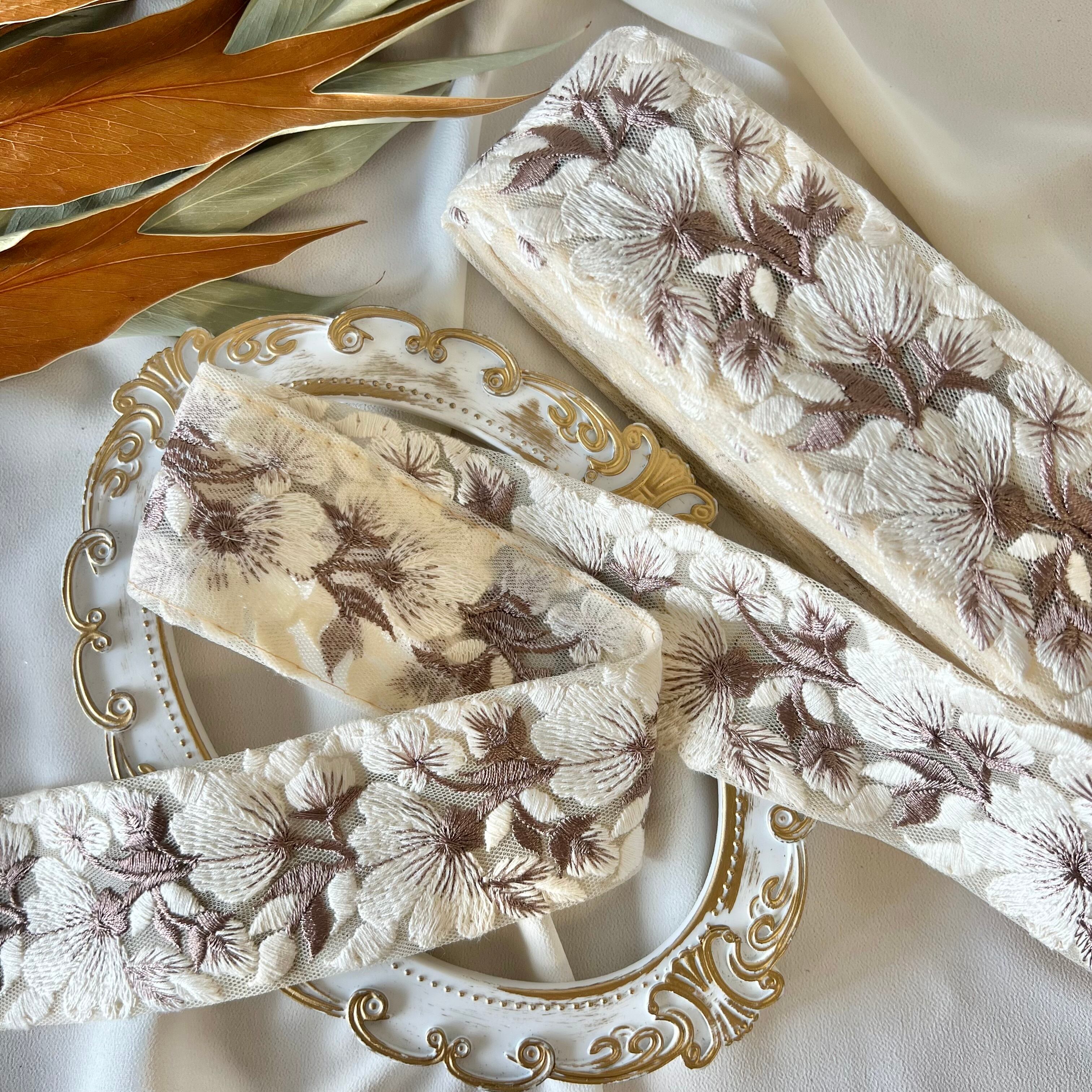 30cm インド刺繍リボン チュール 花柄 #mt47