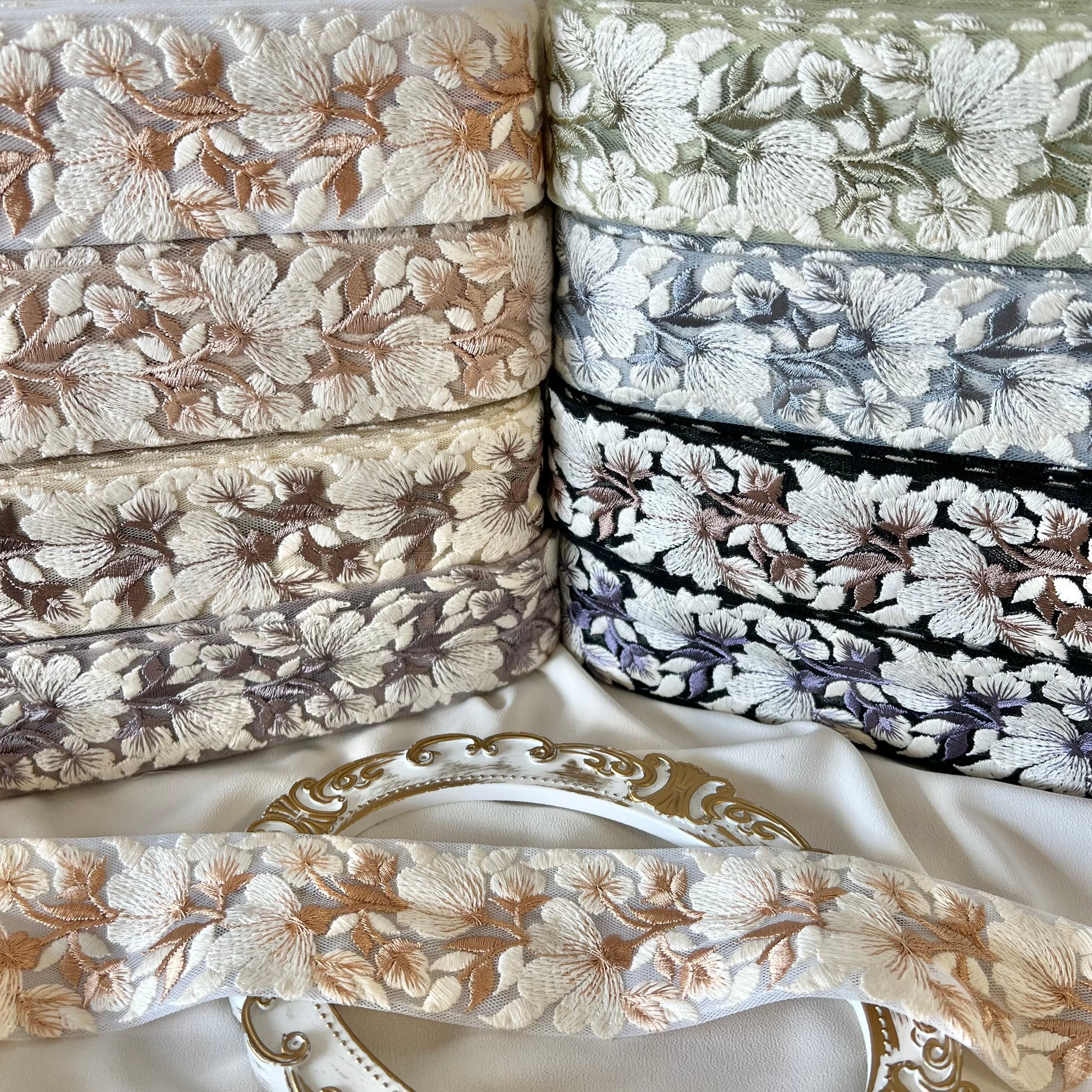 50cm インド刺繍リボン チュール 花柄 #mt47