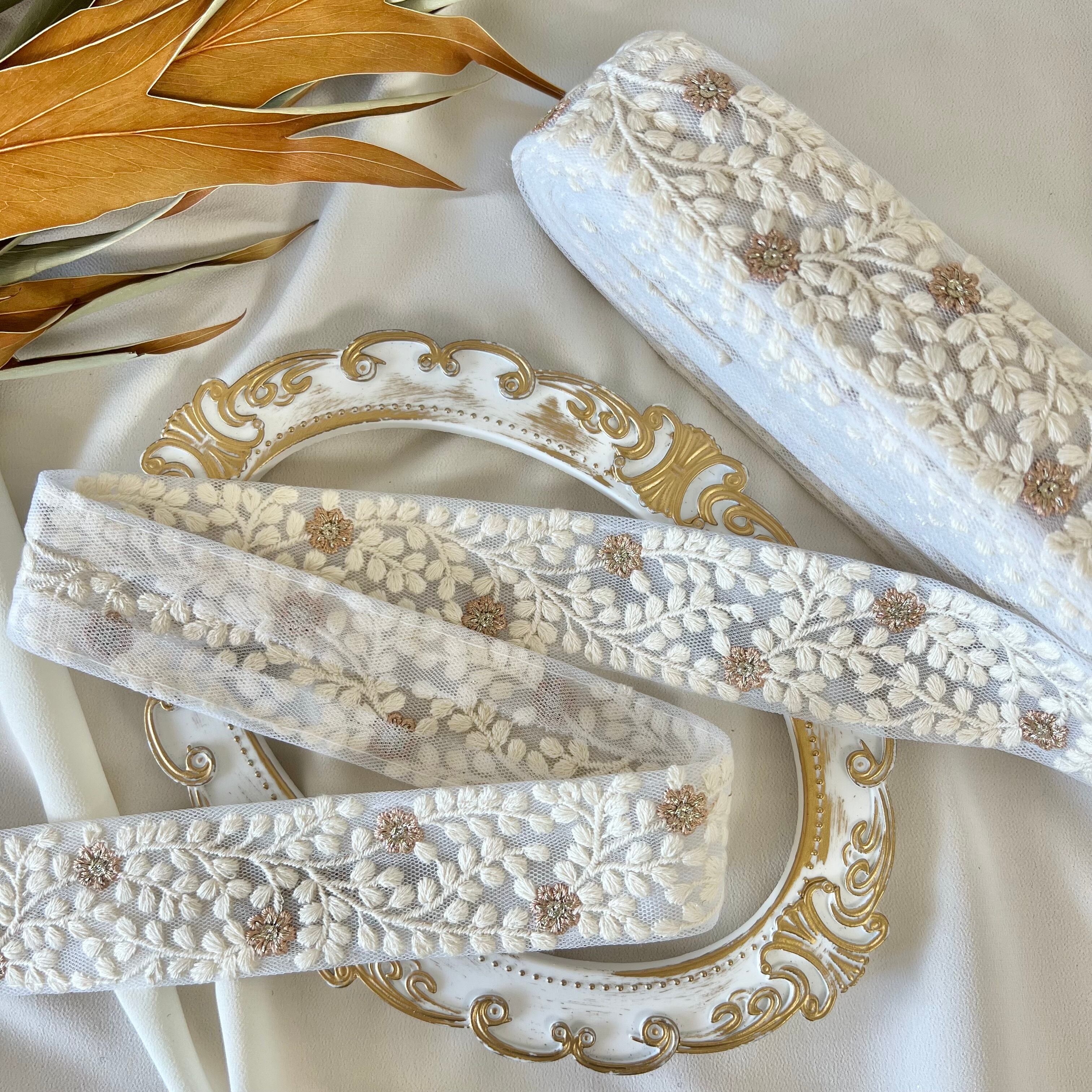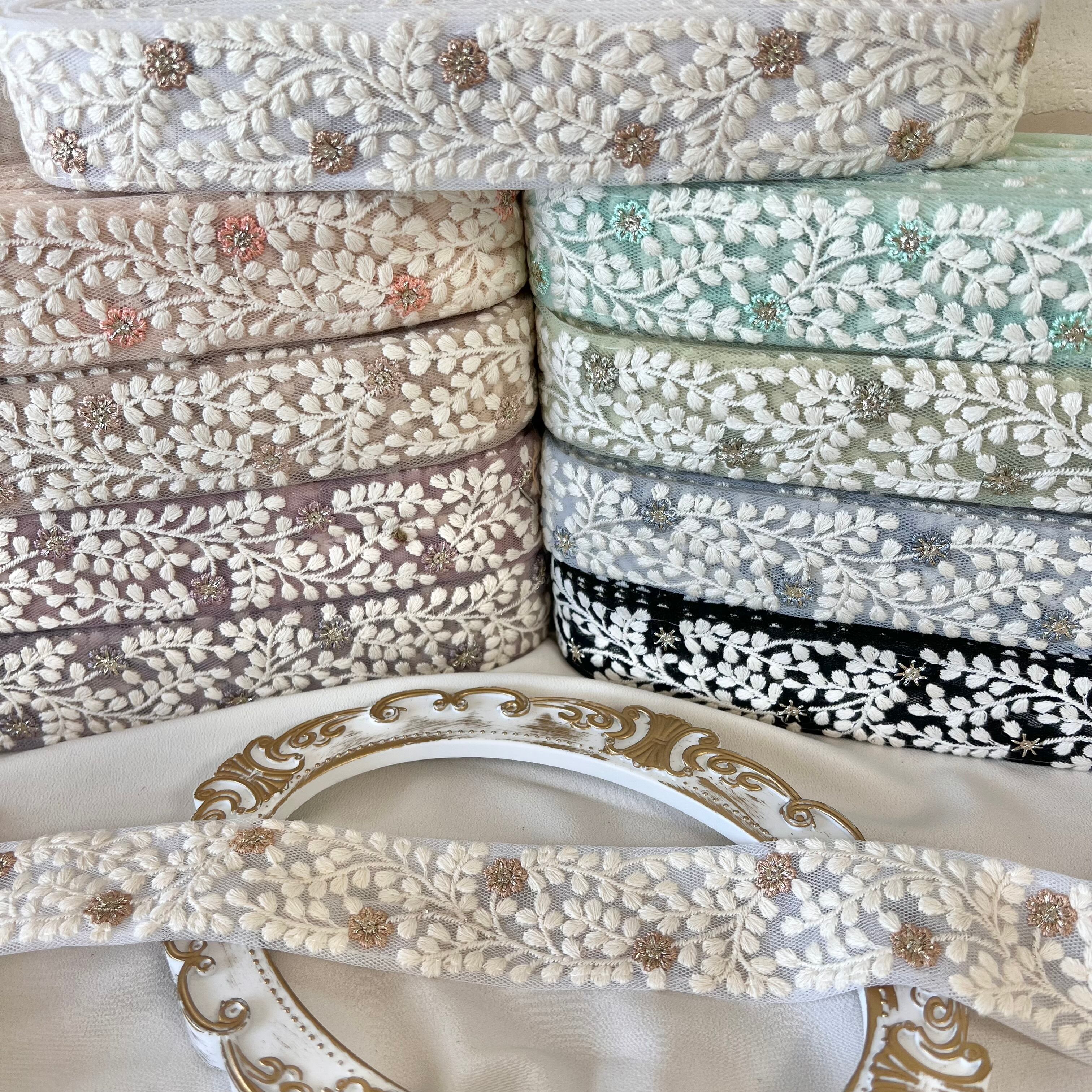 50cm インド刺繍リボン チュール 小花柄 #n2t30