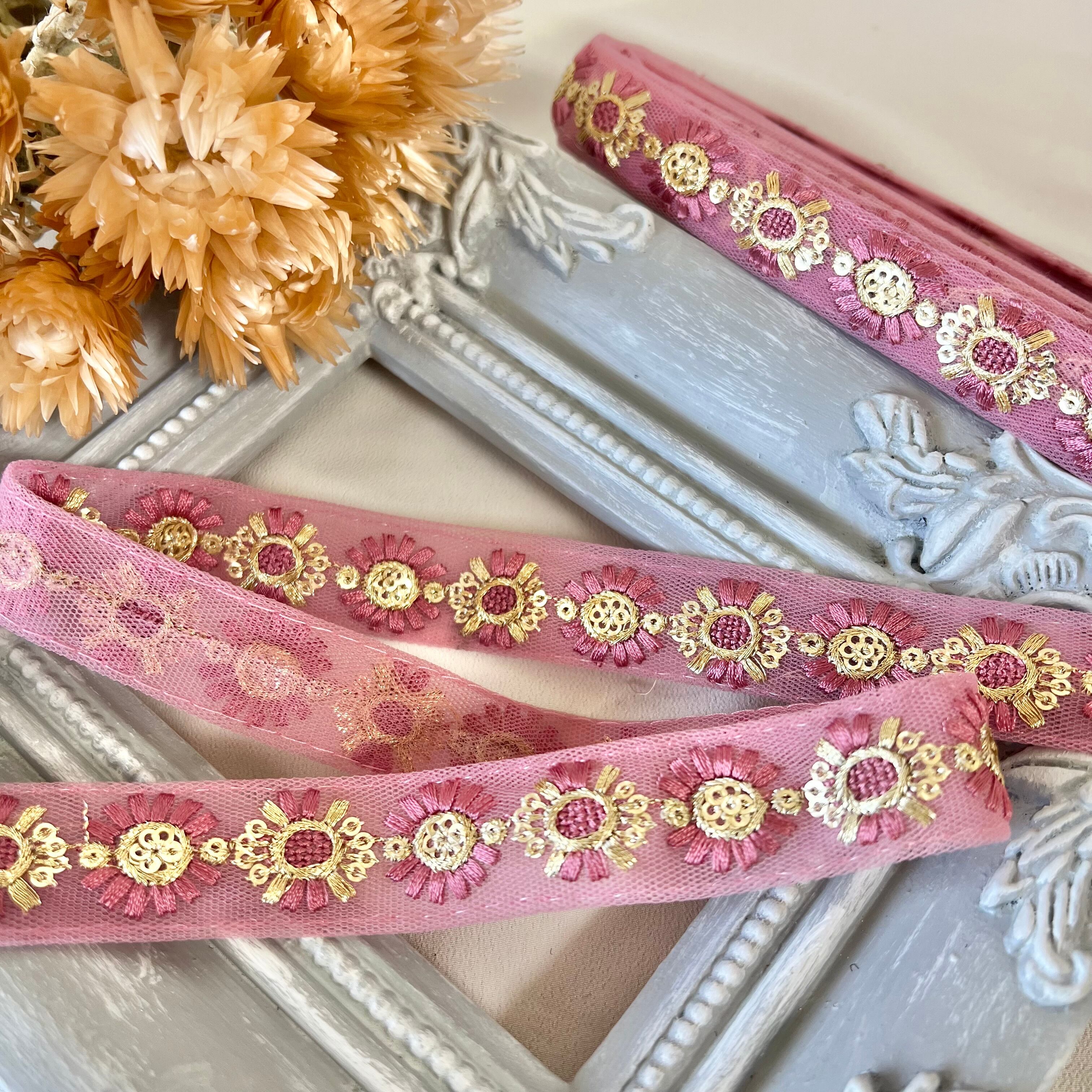 50cm インド刺繍リボン チュール 花柄 #nt33