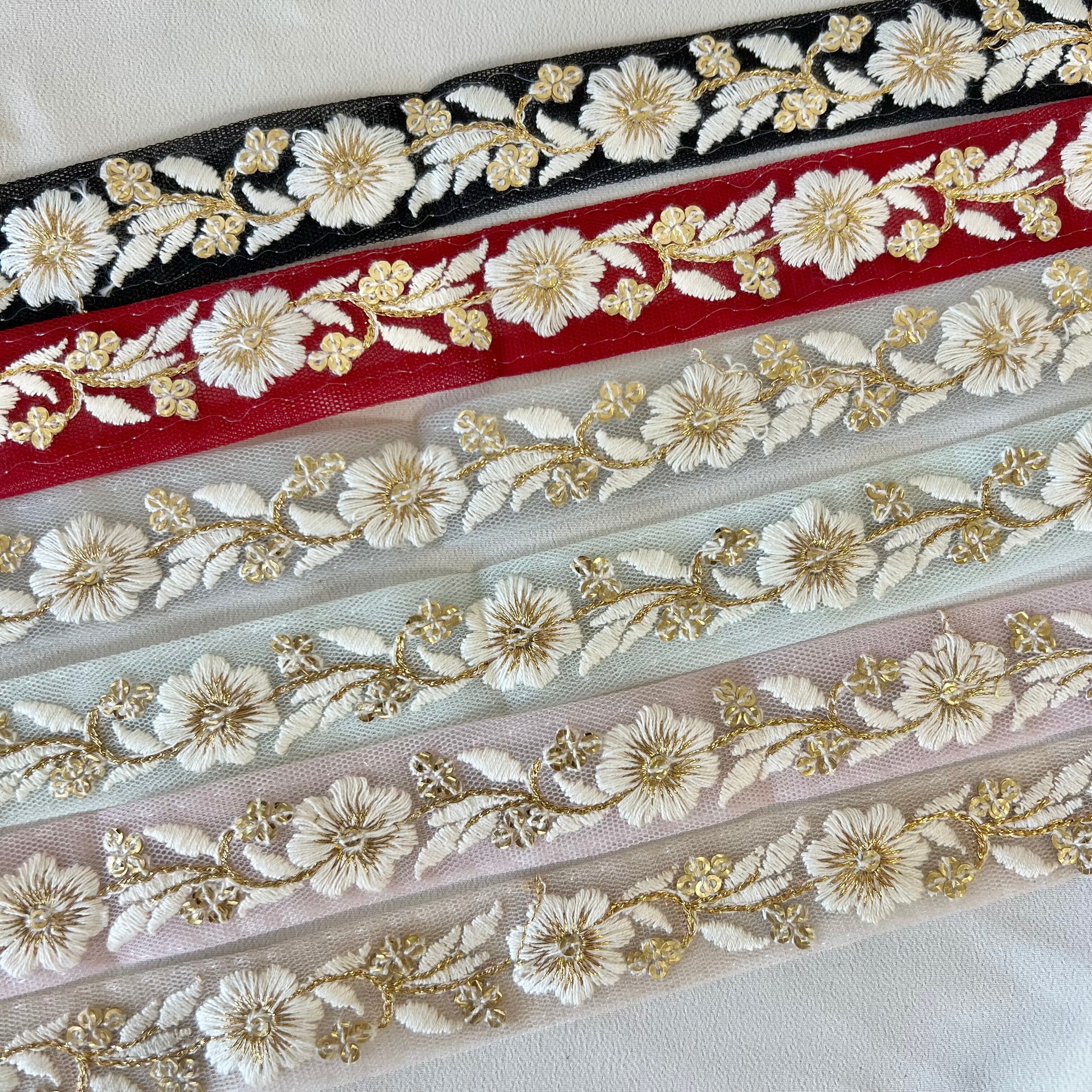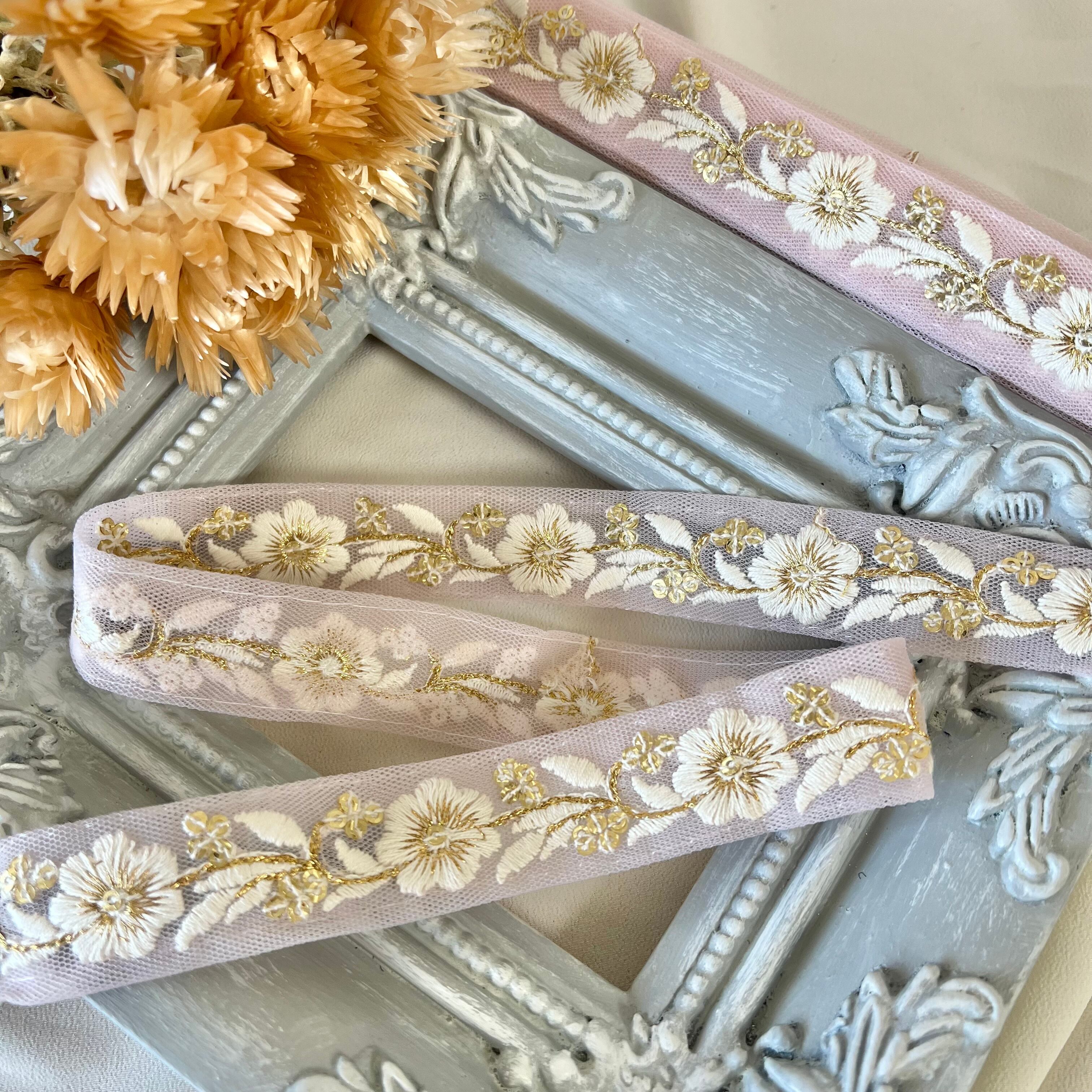 50cm インド刺繍リボン チュール 花柄 #nt34