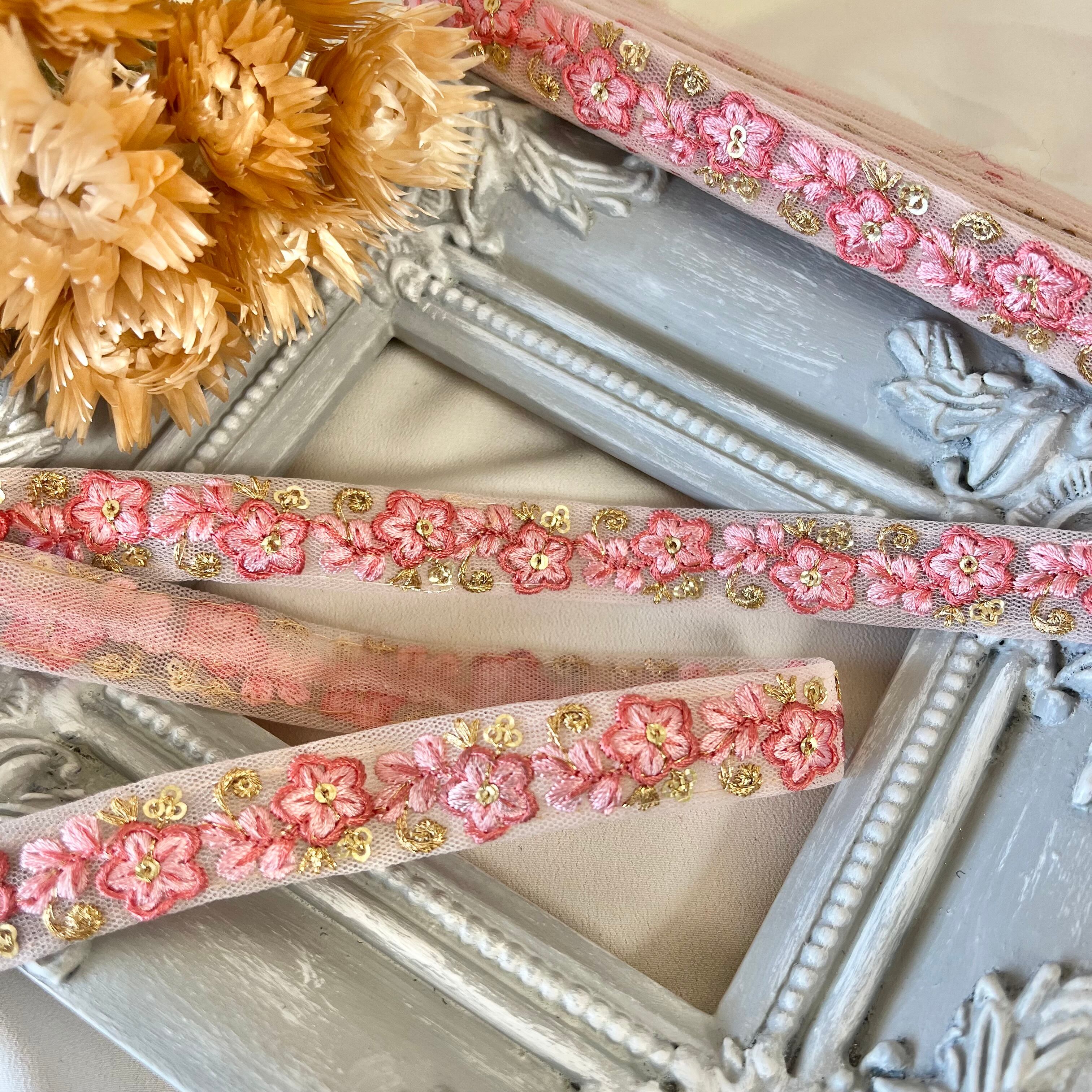 50cm インド刺繍リボン チュール 花柄 #nt35