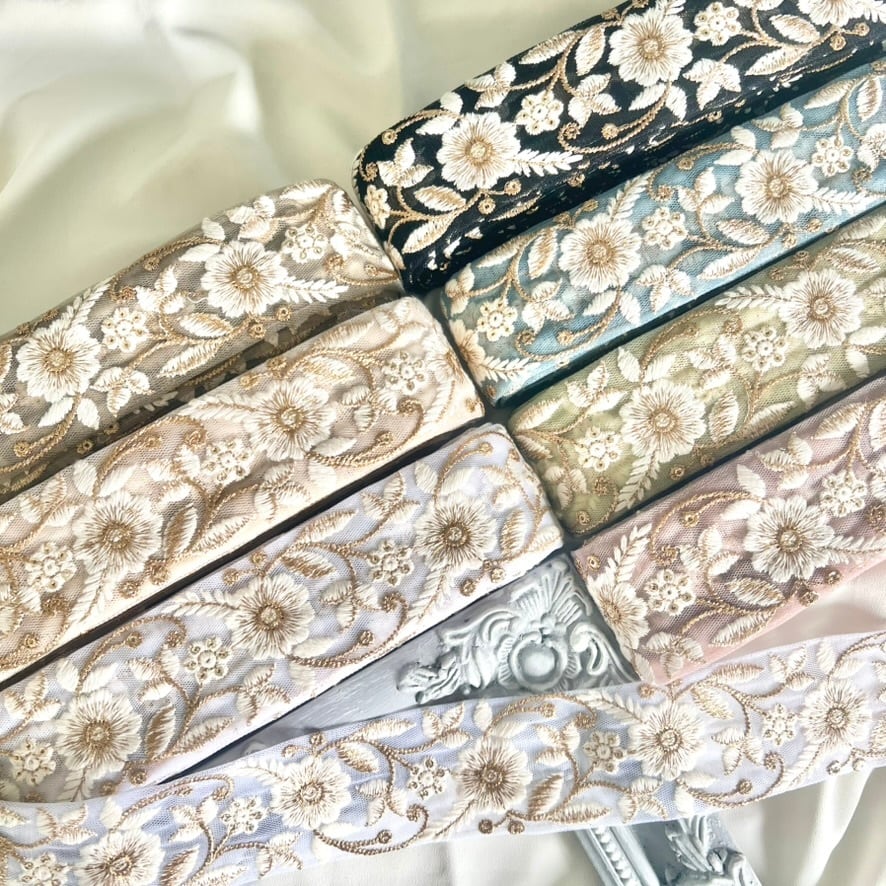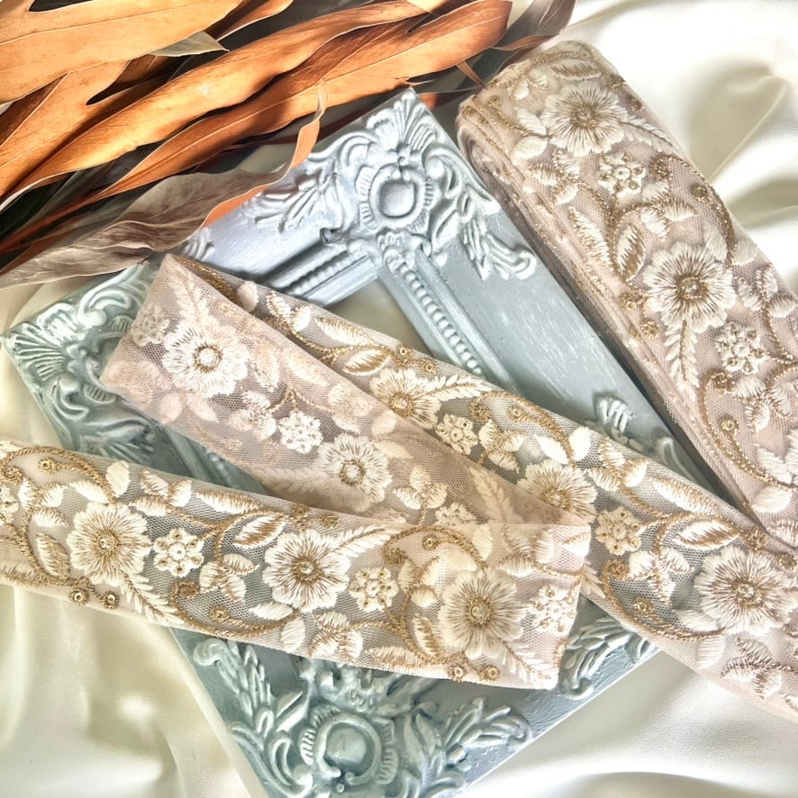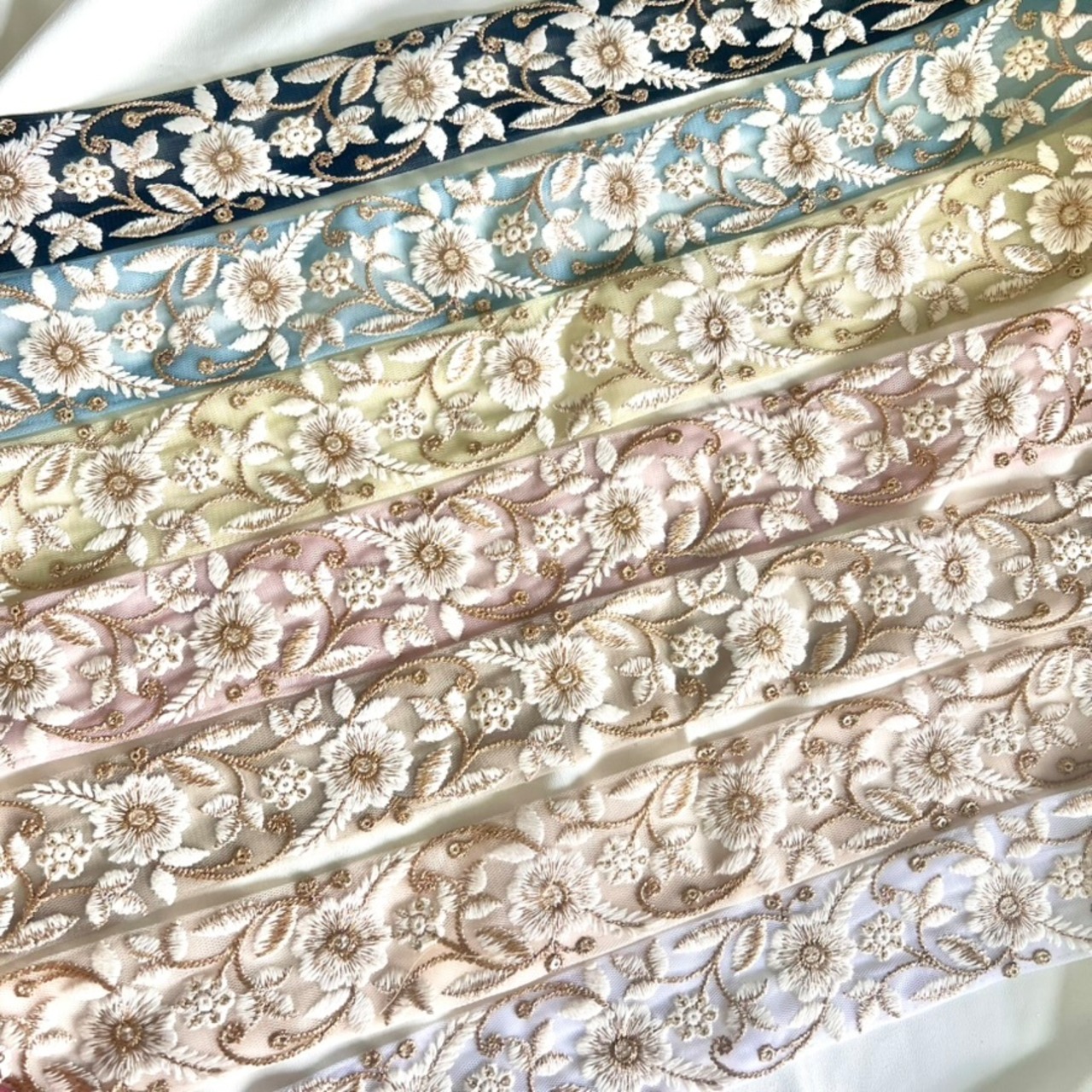 50cm インド刺繍リボン チュール 花柄 #mt50