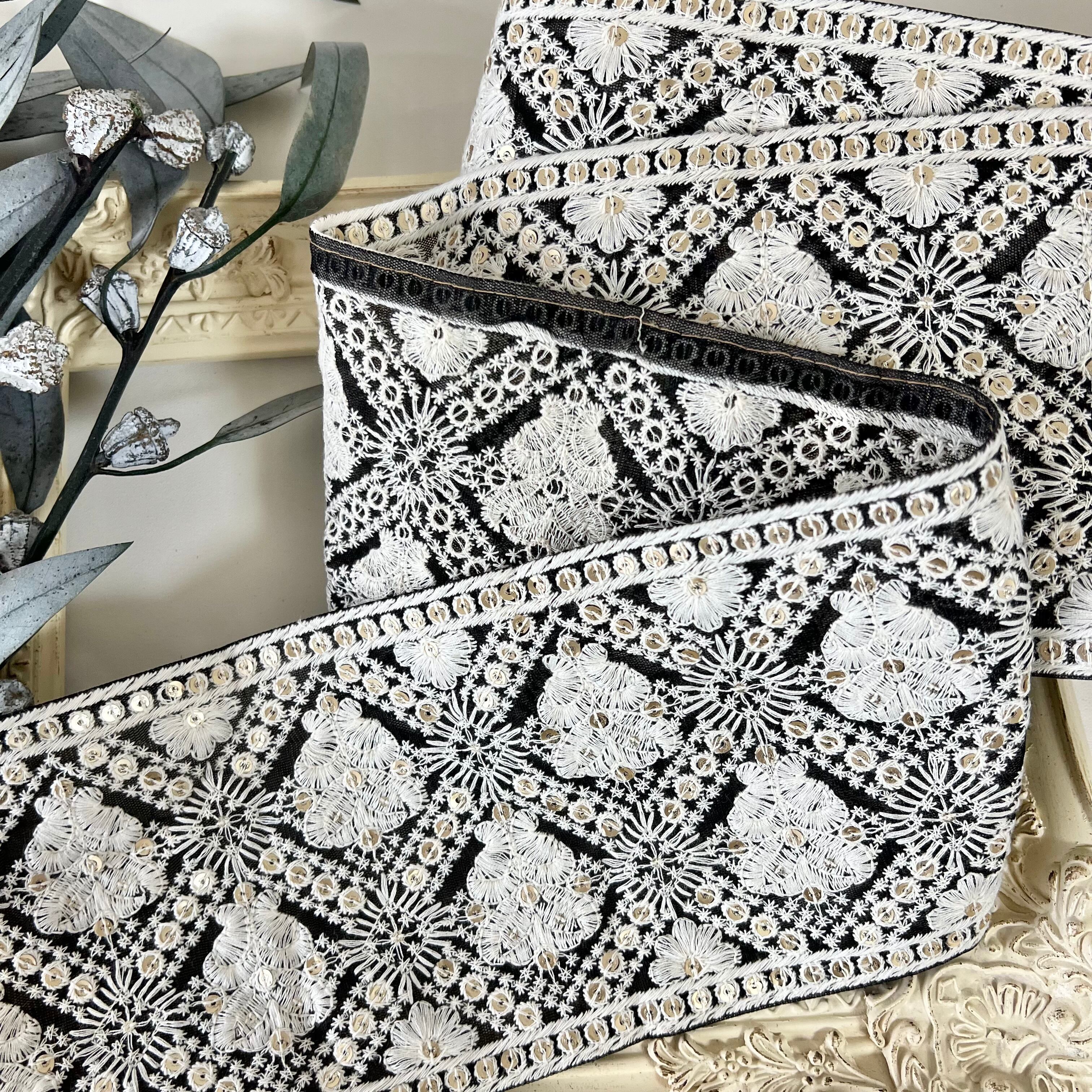 30cm インド刺繍リボン チュール 幅広花柄 #wt1