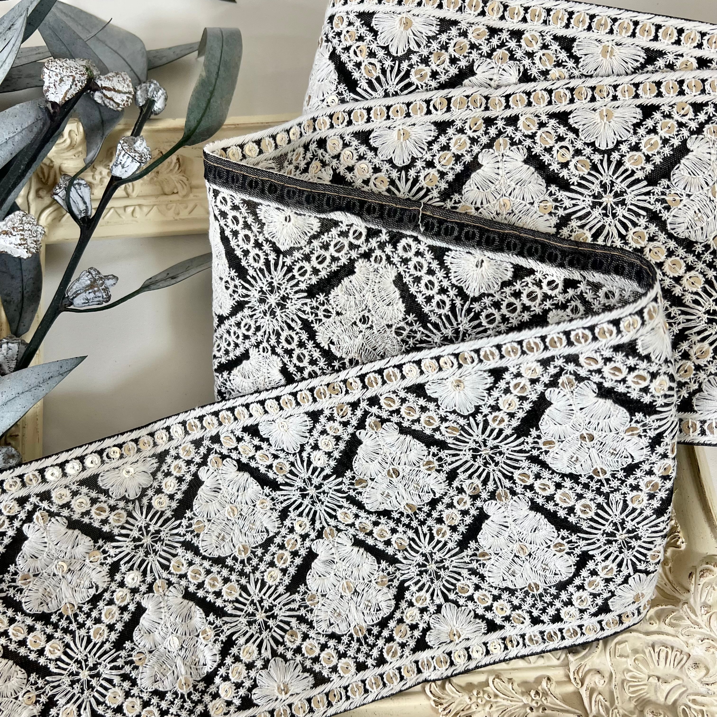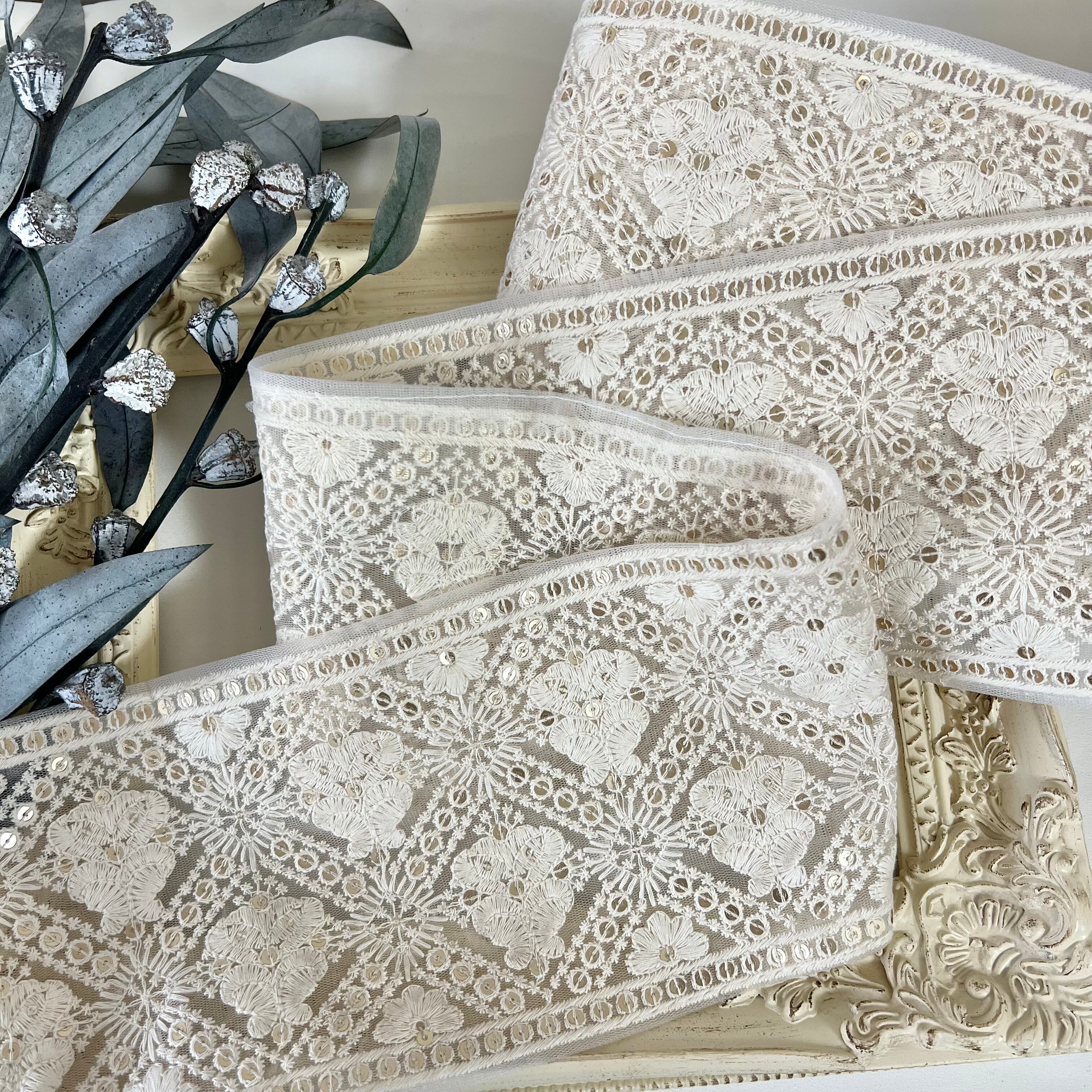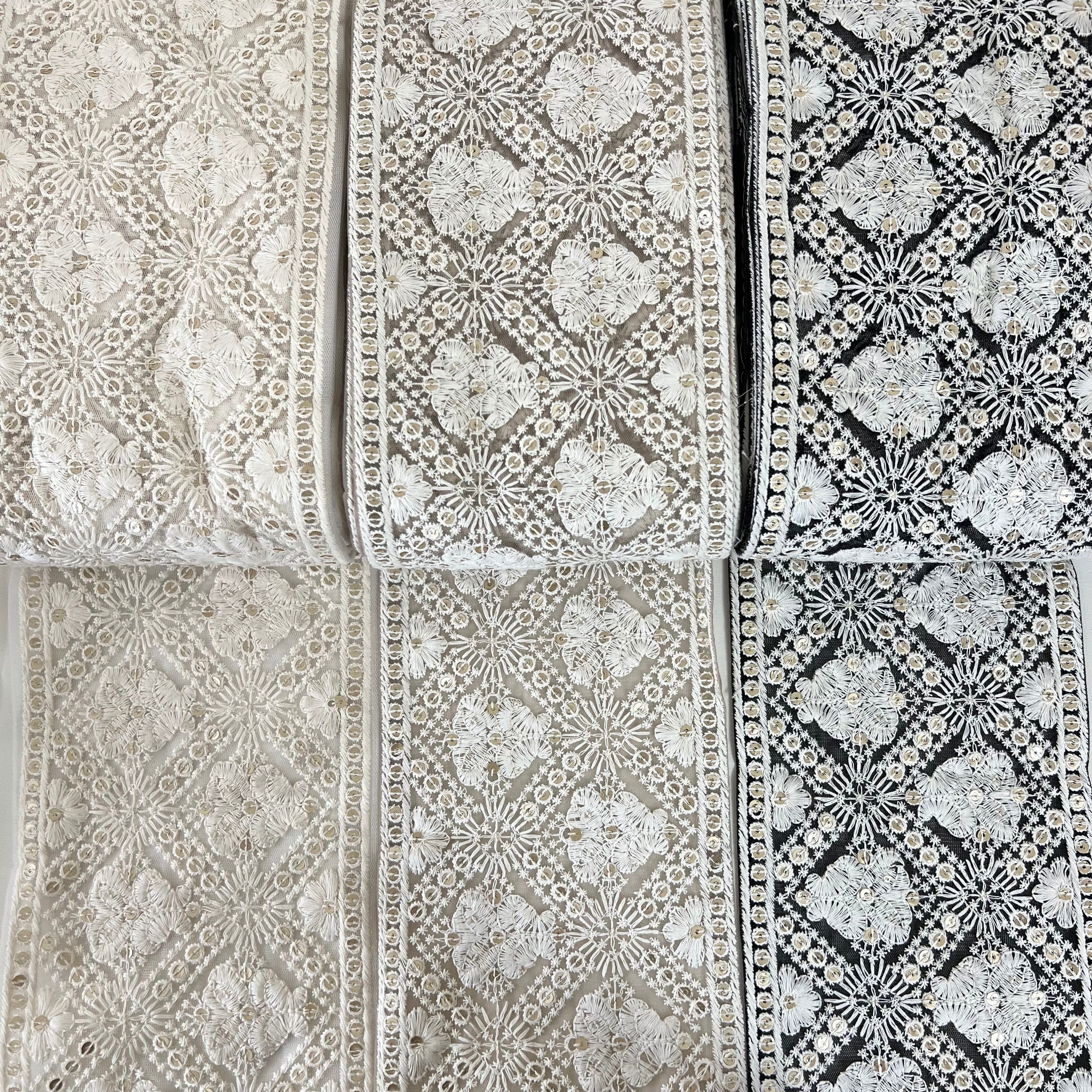 50cm インド刺繍リボン チュール 幅広花柄 #wt1