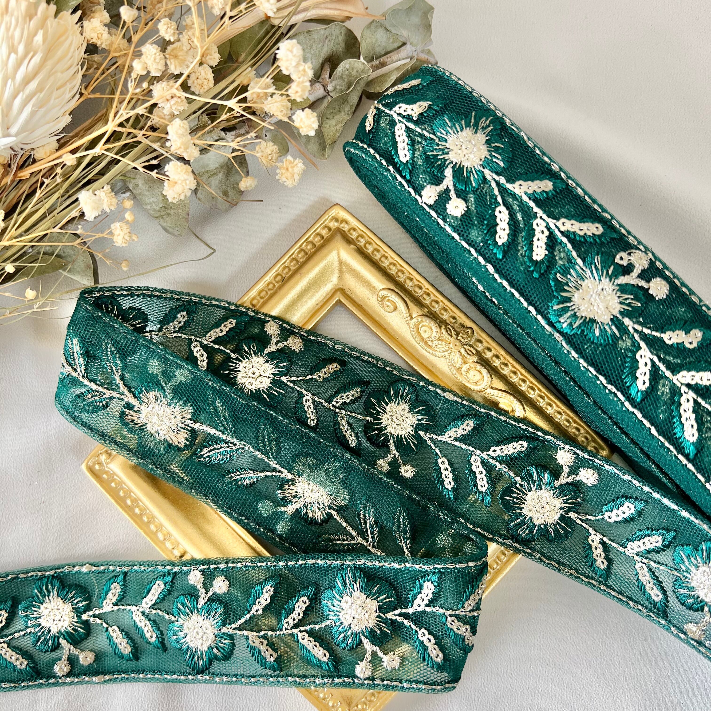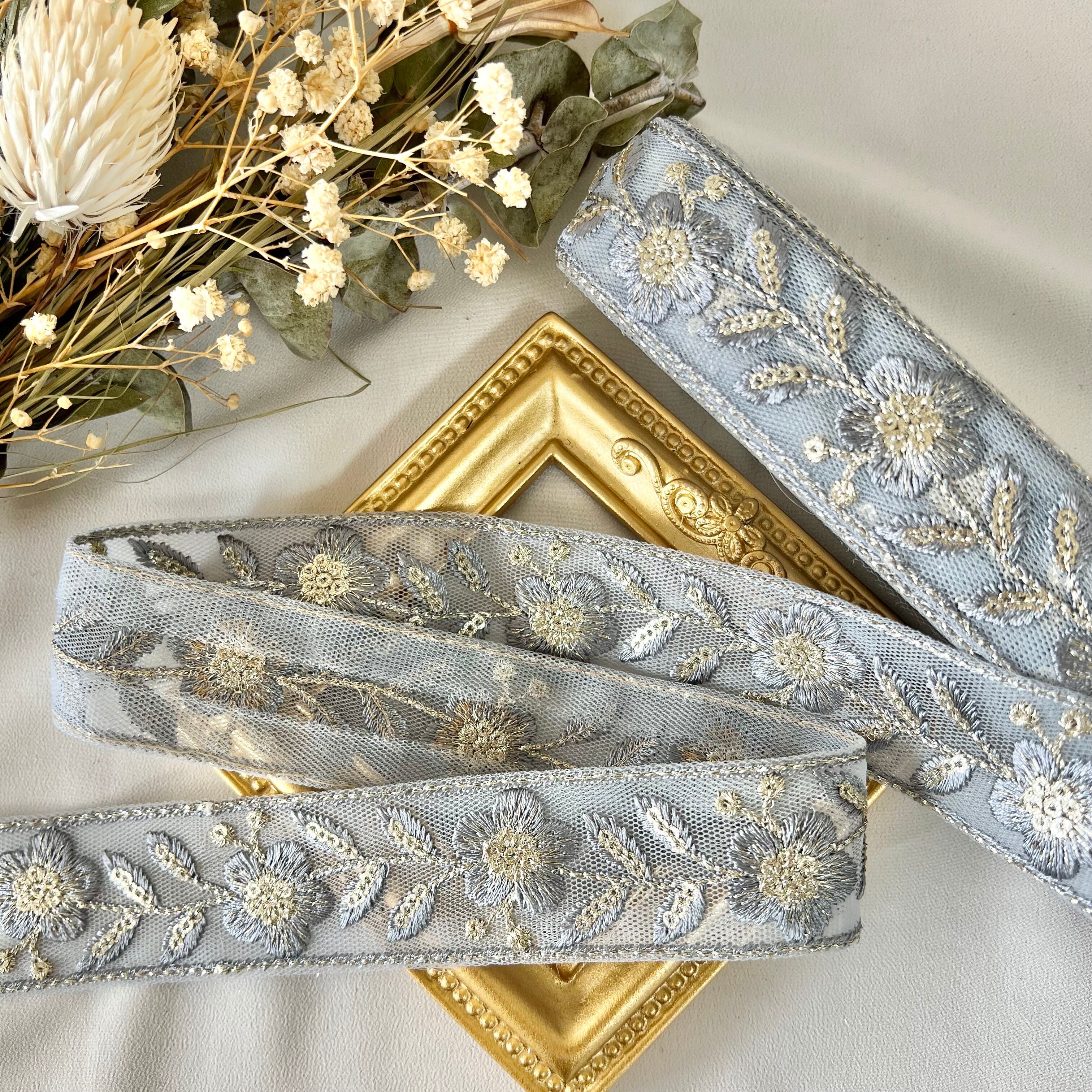 50cm インド刺繍リボン チュール 花柄 #n2t1